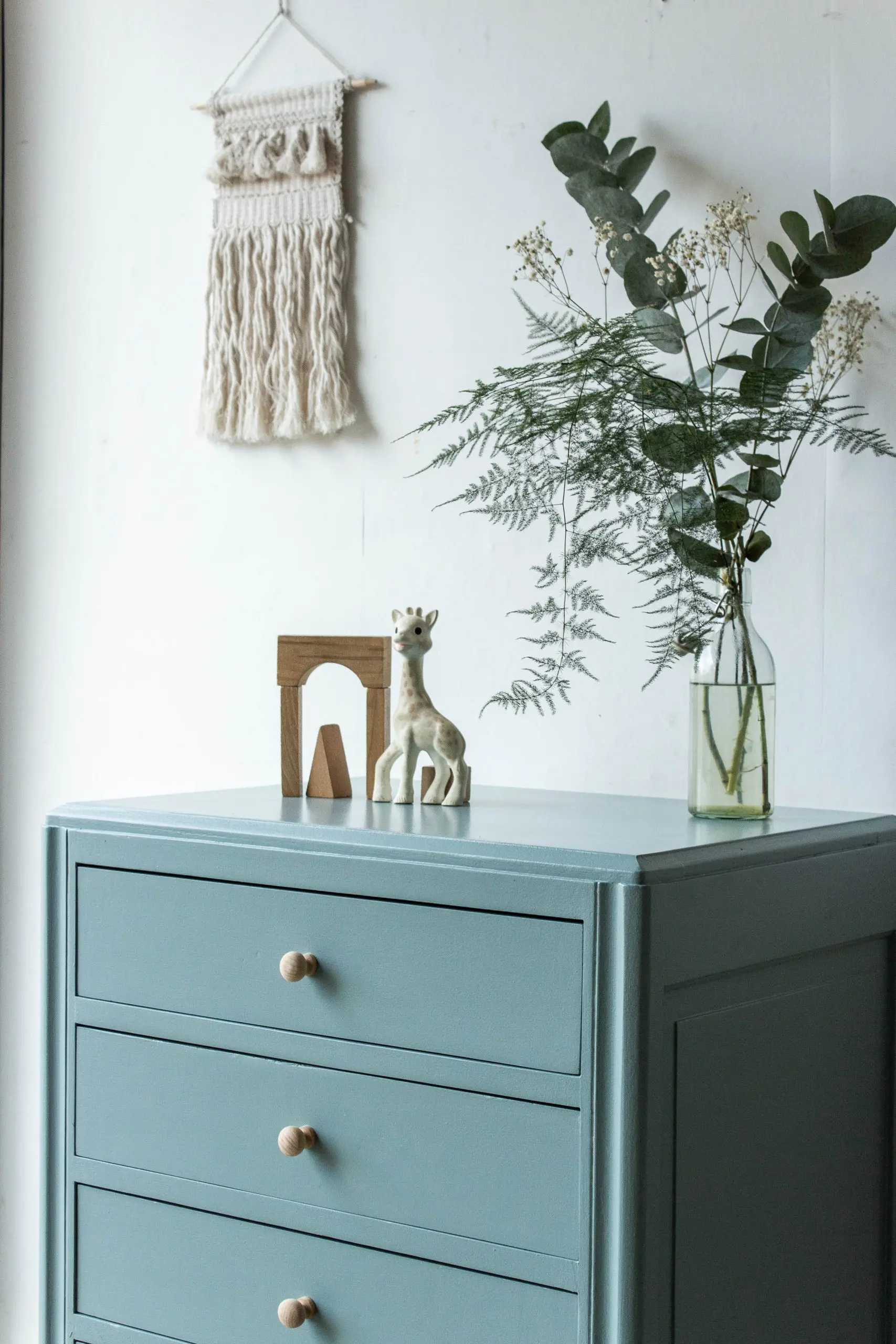 Grijsblauw vintage ladenkastje