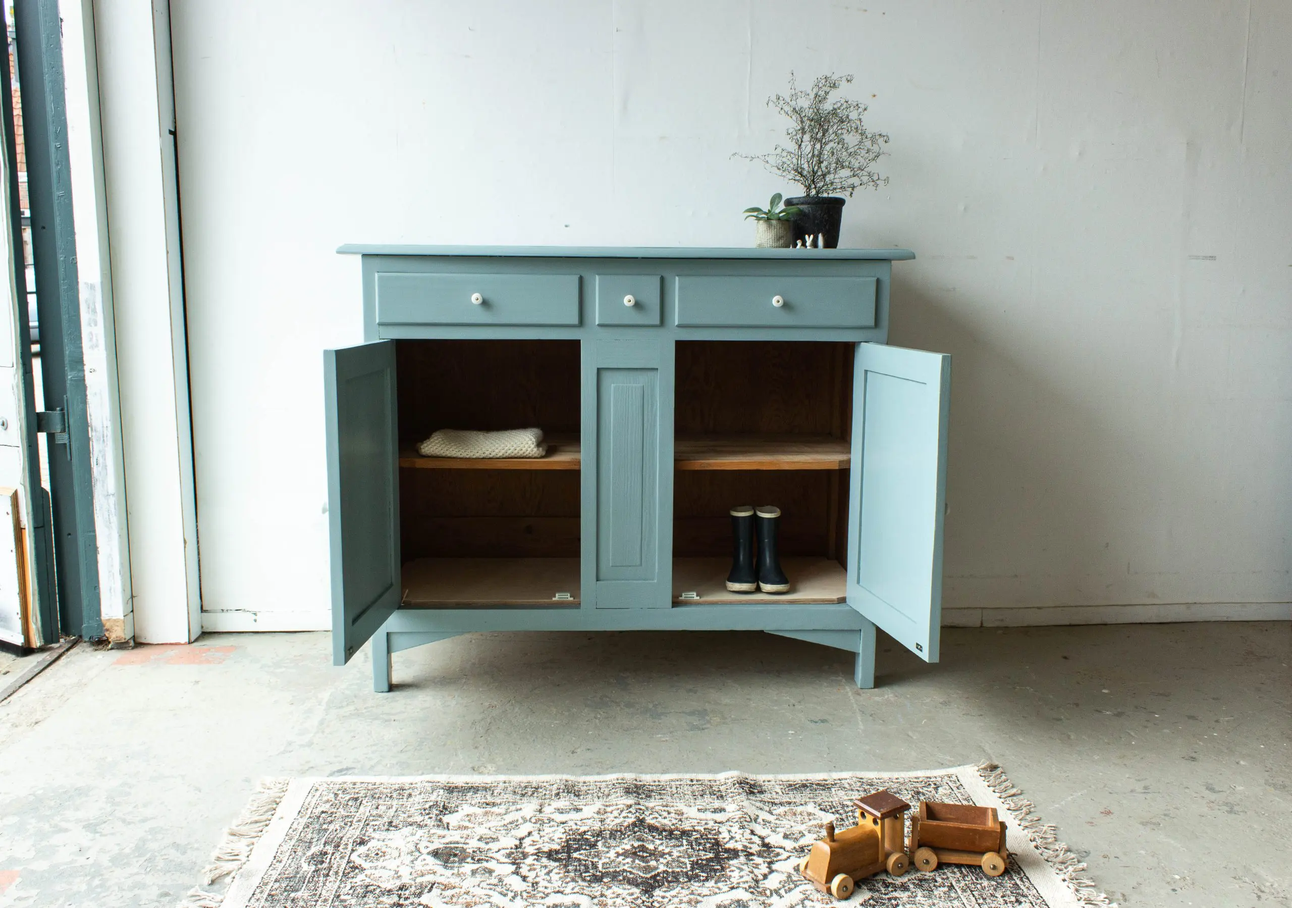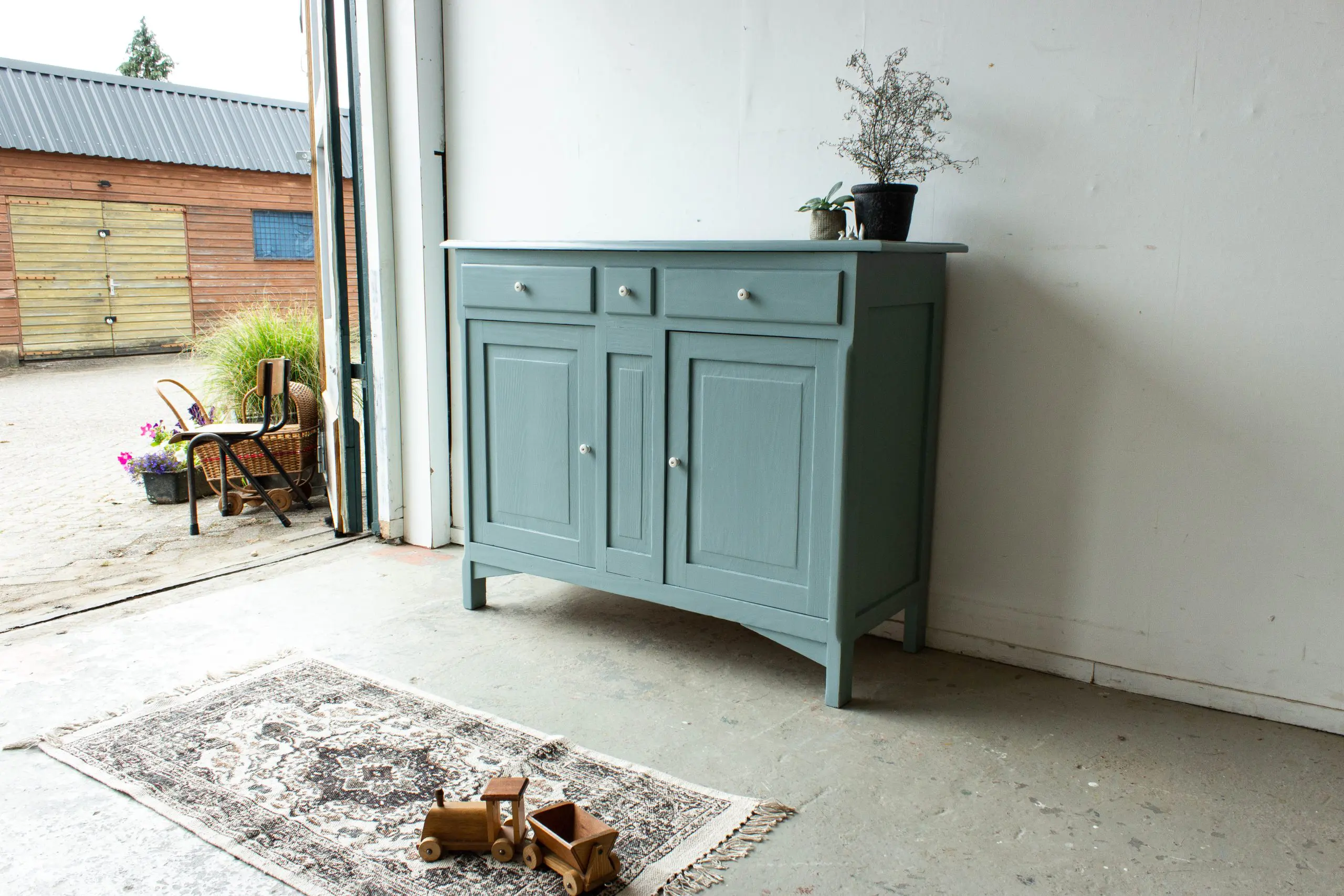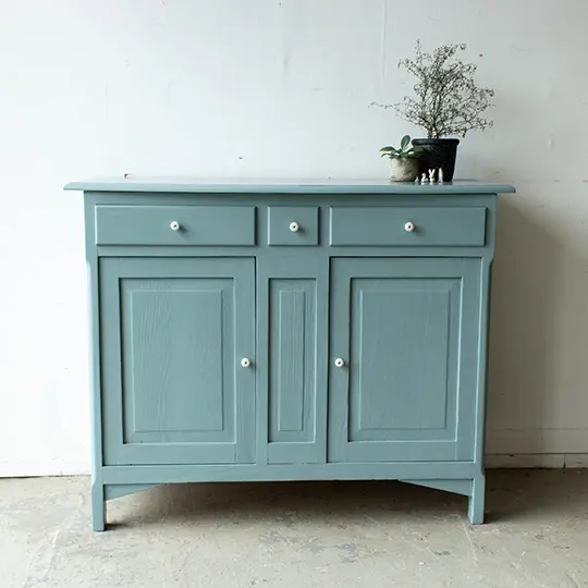 Grijsblauwe vintage commode