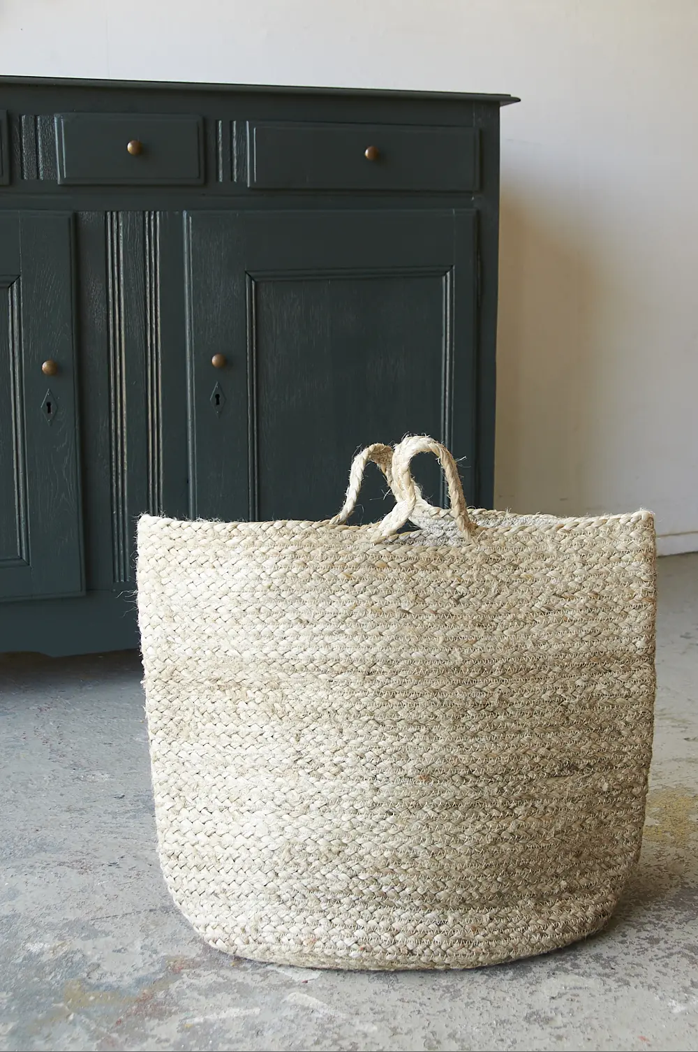 Wij waren al een tijdje op zoek naar mooie opbergmanden en hier zijn ze dan hoor! Ze zijn gemaakt van geweven gras, genaamd Baib. Een van de meest ecologische materialen die er is. Zo fijn zijn deze manden! Ze zijn handig om van alles en nog wat in op te bergen: speelgoed, dekentjes of boeken. Of een grote plant of cactus, een fijn alternatief voor een bloempot. Niet alleen in huis zijn ze mooi, stop ze vol met lekker eten en een kleedje en gebruik ze als picknickmand voor een picknick in de zon! Deze opbergmand hebben we ook in een kleinere variant.