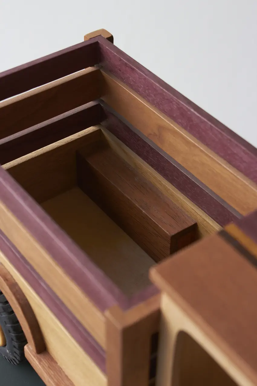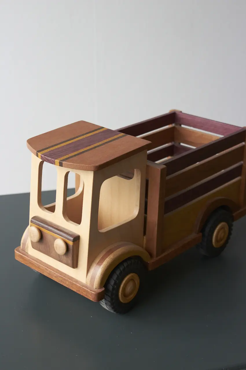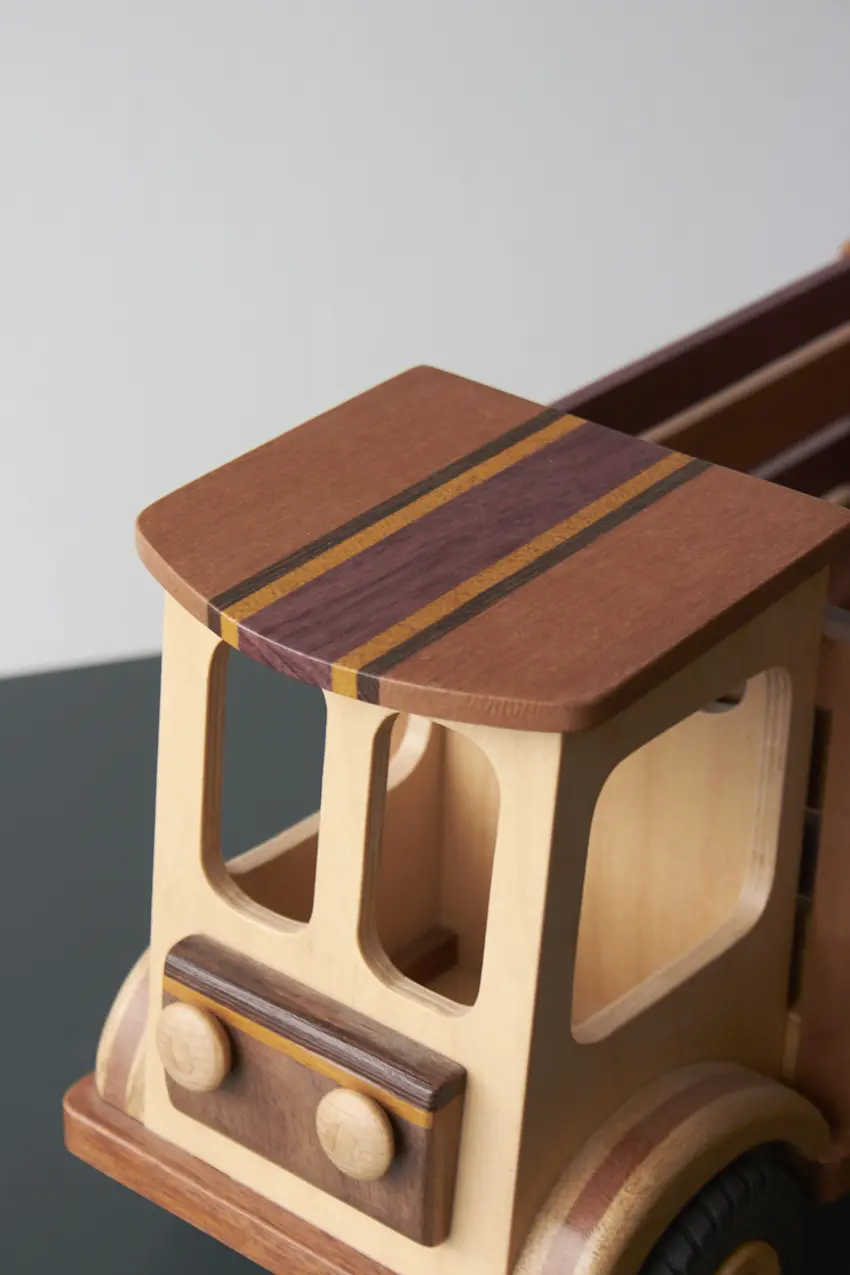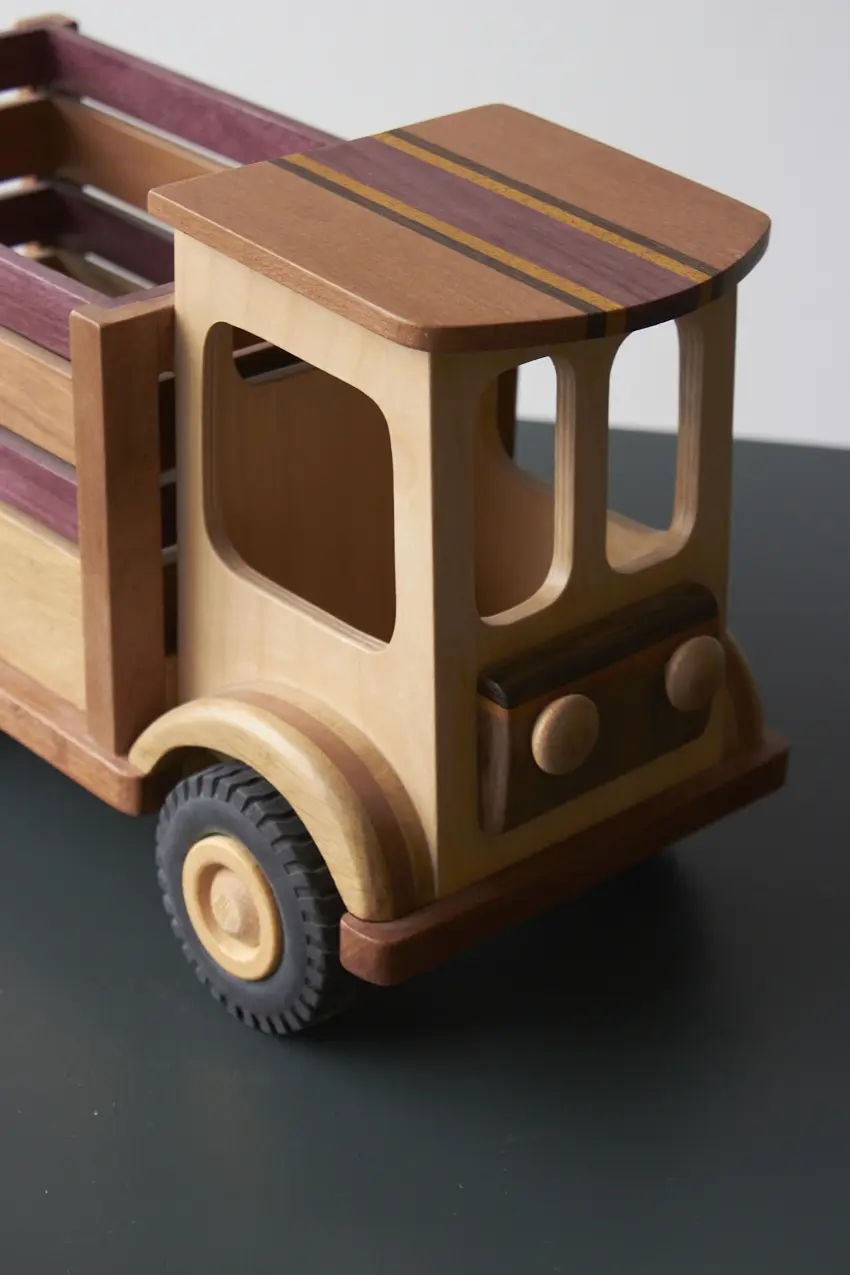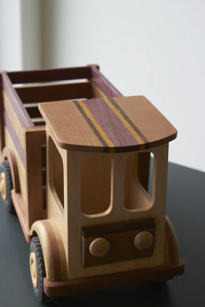 Een ideale boerderijwagen voor de echte boer of boerin! Achterin de bak is er genoeg plek voor alle boerderijdieren. Deze auto is helemaal met de hand gemaakt door Henk. De verschillende houtsoorten, mooie details en afwerking maakt het een echte unieke auto. Laat hem pronken op de kast of laat je kleintje er gewoon lekker mee spelen.