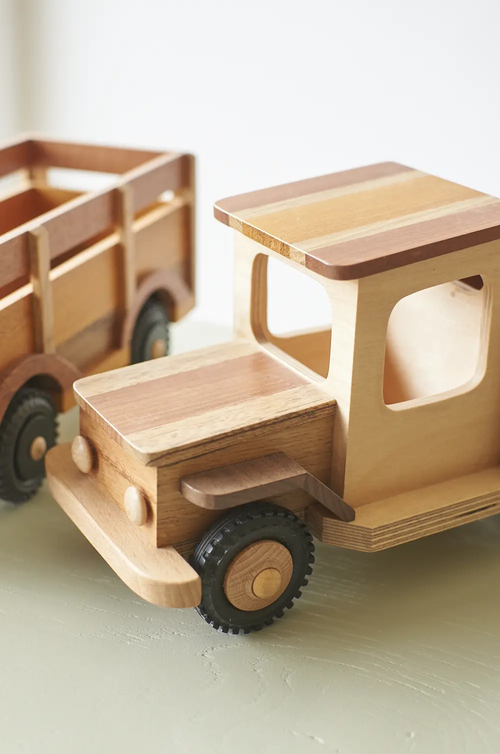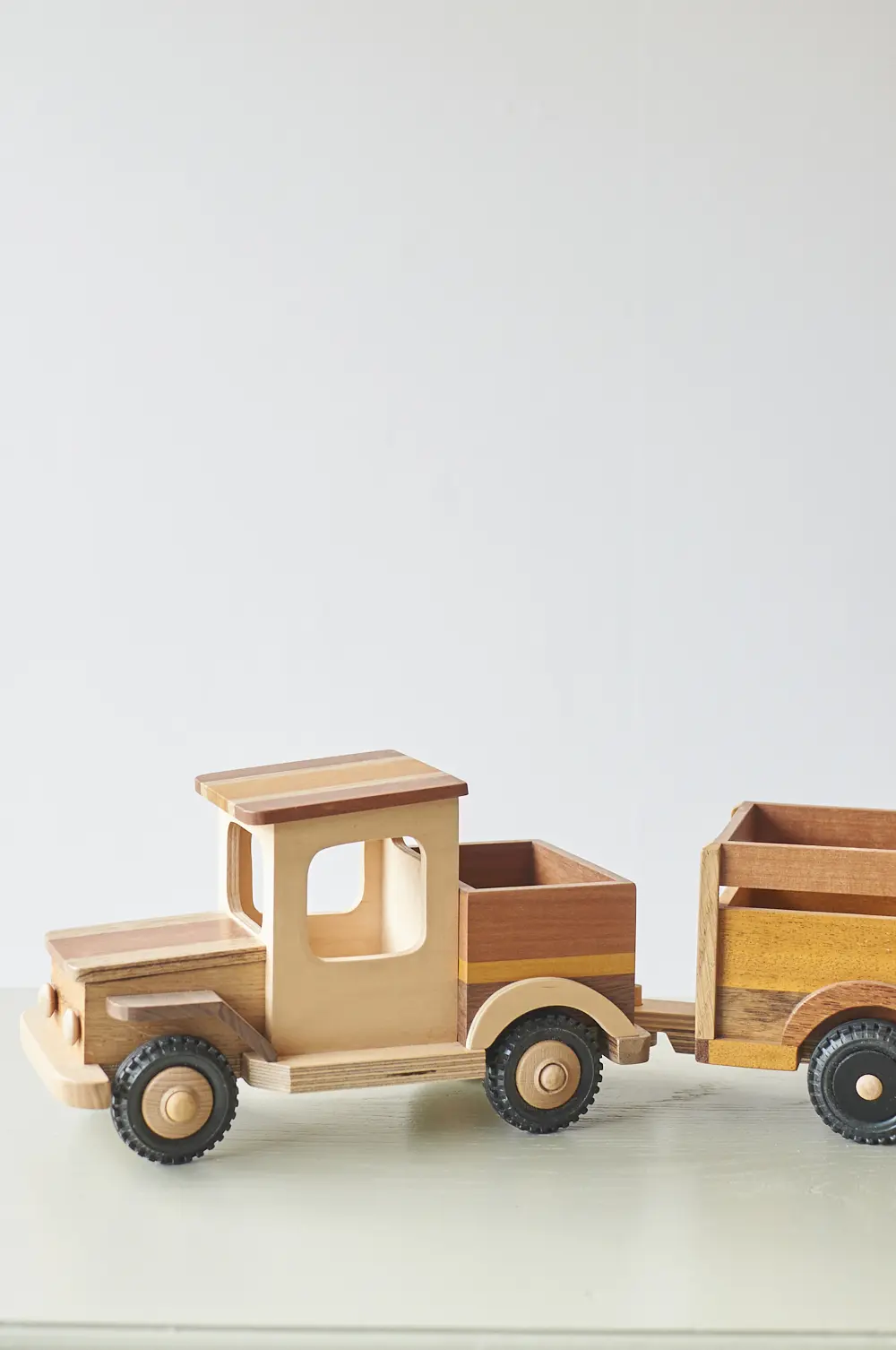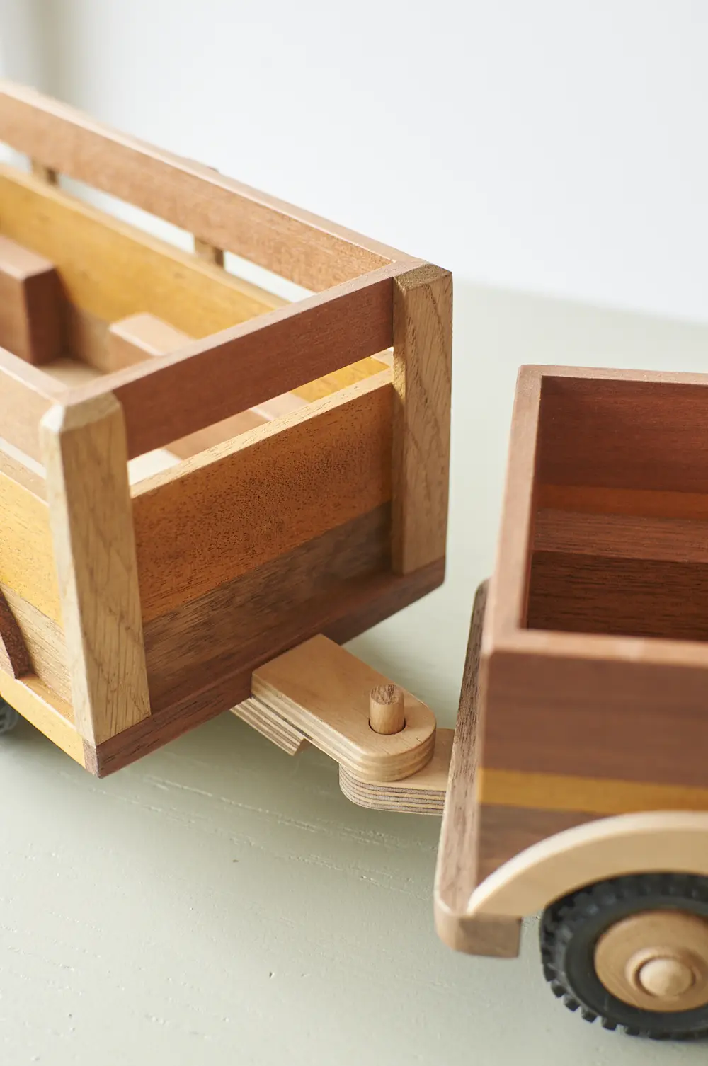 Een ideale auto voor de echte avonturier en goed voor uren speelplezier! Deze boerderijwagen is helemaal met de hand gemaakt door Henk. Hij heeft een grote aanhanger waar veel plek is voor houten boerderijdieren en poppetjes. De verschillende houtsoorten, mooie details en afwerking maakt het een echte unieke auto. Laat hem pronken op de kast of laat je kleintje er gewoon lekker mee spelen.