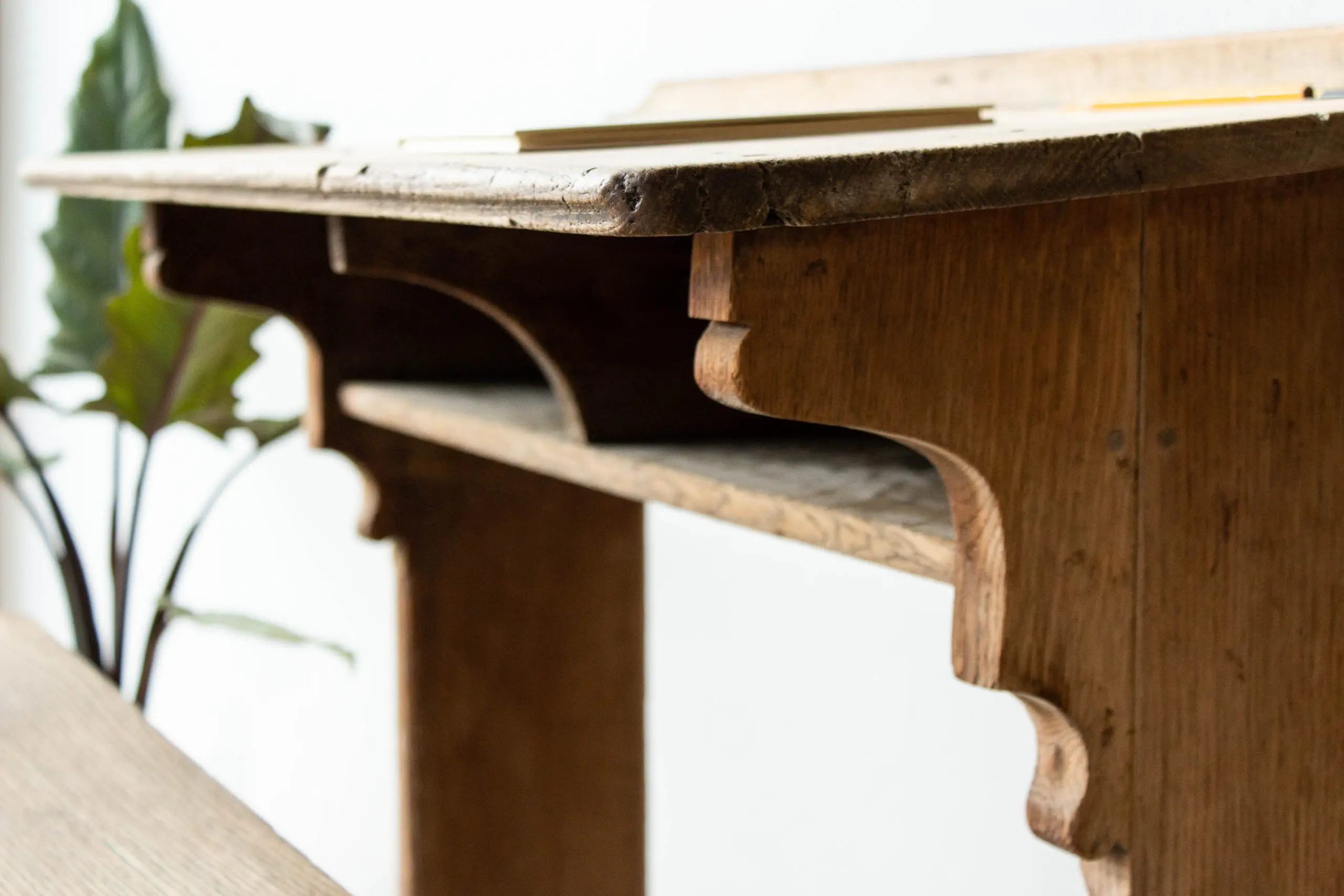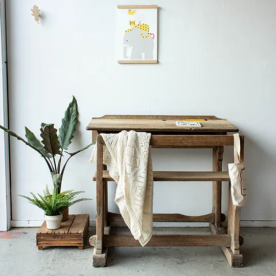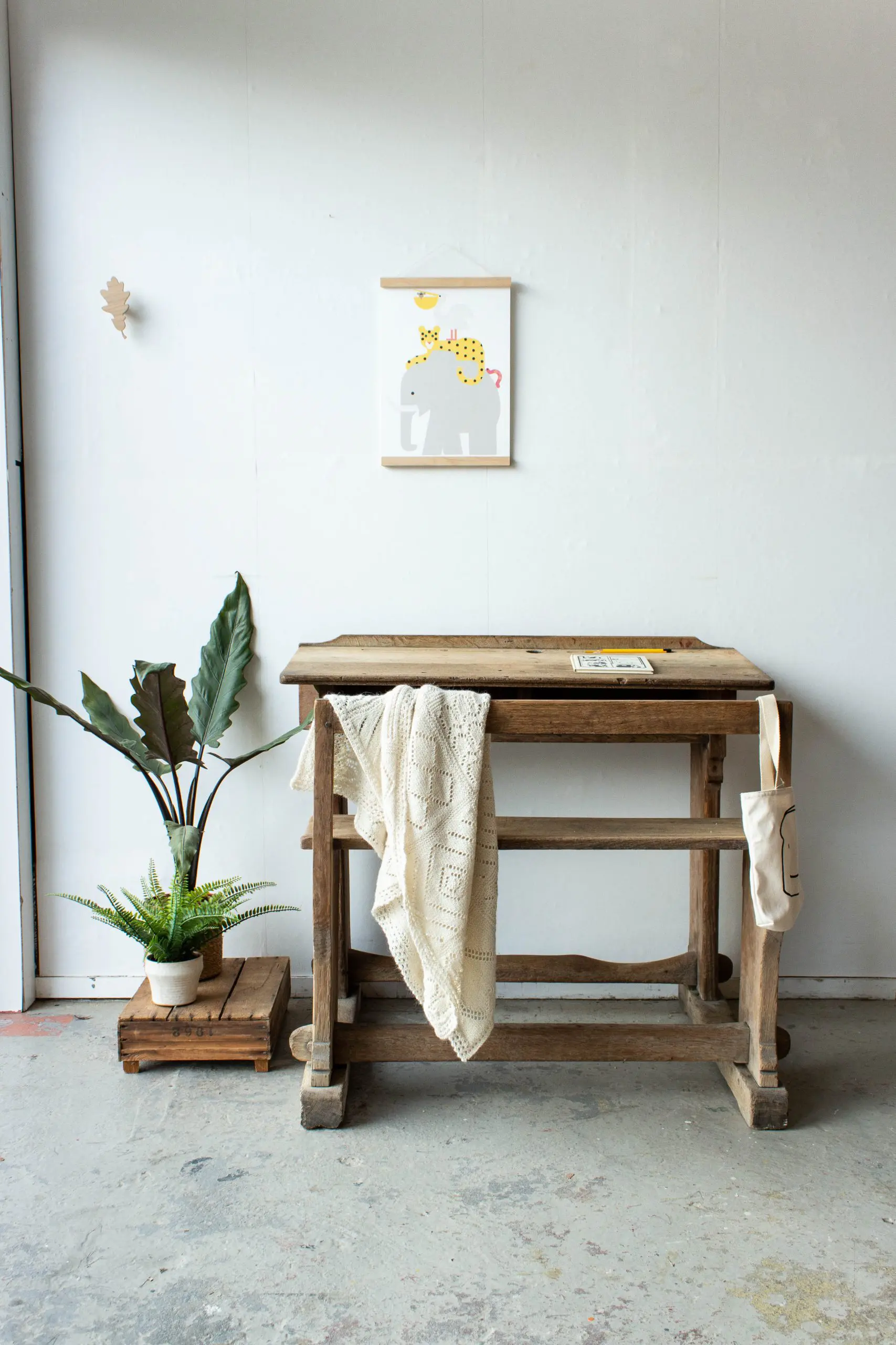 We weten niet precies hoe oud deze houten schoolbank, maar oud is ie wel! En mooi! We hebben deze Belgische schoolbank grondig schoongemaakt, want wat was hij vies! Nog steeds zijn er hier en daar nog wat stift strepen en gekras zichtbaar. Deze kregen we niet weg. Maar dat geeft de schoolbank ook juist zijn charme! Heel leuk om in de kinderkamer of kinderhoek neer te zetten. Want het is een ideale tafel om heerlijk aan te tekenen of knutselen. En de opbergruimte onder het werkblad is natuurlijk ook handig. Hier kan een boel teken- en knutselspul in opgeborgen worden. Helemaal klaar voor gebruik!