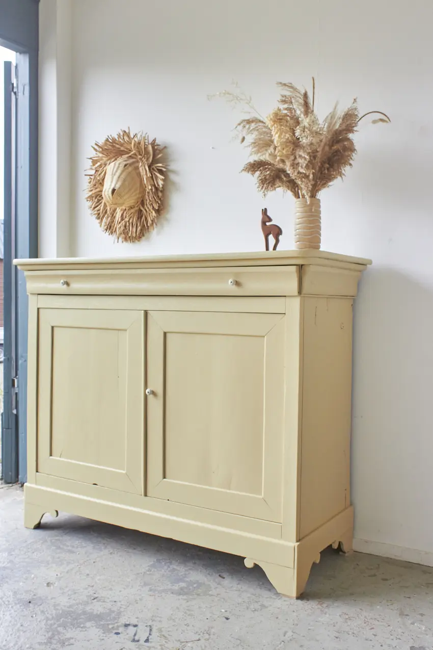 De verf is een watergedragen zijdeglans lak. We gebruiken deze verf zelf ook op onze meubels. Na veel onderzoek is dit voor ons de perfecte meubellak. Het is een fijne, dekkende en mooie uitvloeiende verf. We raden aan om het meubel 2 lagen verf te geven, dat geeft het beste resultaat. We leveren de verf met een gebruiksaanwijzing en wat schildertips, dus je kunt gemakkelijk zelf aan de slag!