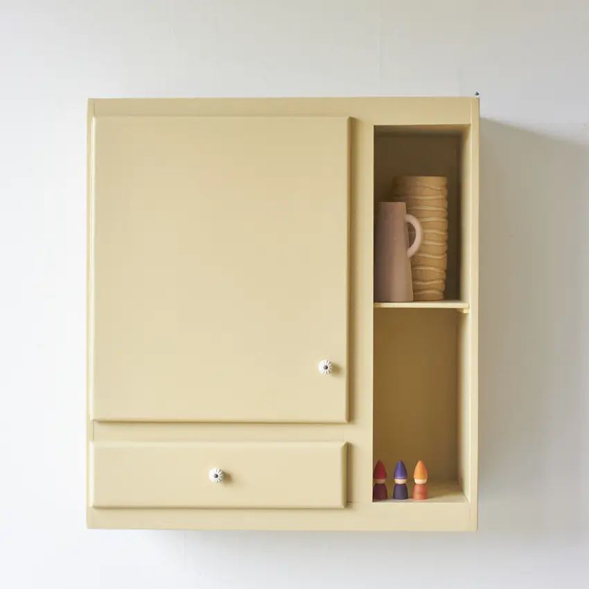 Kamille is een van onze nieuwste kleuren. Wauw, wat zijn we blij met deze kleur! Het is een zachte, lichtgele tint met een vleugje grijs en een vleugje groen. Deze geeltint is een toegankelijke, frisse kleur en is lichter dan onze kleur Saffraan. Door zijn grijs-groene ondertoon is hij goed te combineren met vergrijsde tinten en met blauw en groen, zoals onze kleur Amandel, Woud en Rozemarijn. Kamille geeft elke kast een fijn en zacht uiterlijk, zelfs grote woonkamer kasten worden heel verfijnd en toegankelijk door deze kleur. Sinds deze kleur in ons Firma Zoethout kleurenassortiment zit gebruiken we hem vaak, we kunnen er niet genoeg van krijgen. En samen met porseleinen knoppen komt hij nog beter tot zijn recht. Stiekem is dit de nieuwe favoriete kleur van ons allemaal. Op elke kast staat hij prachtig!