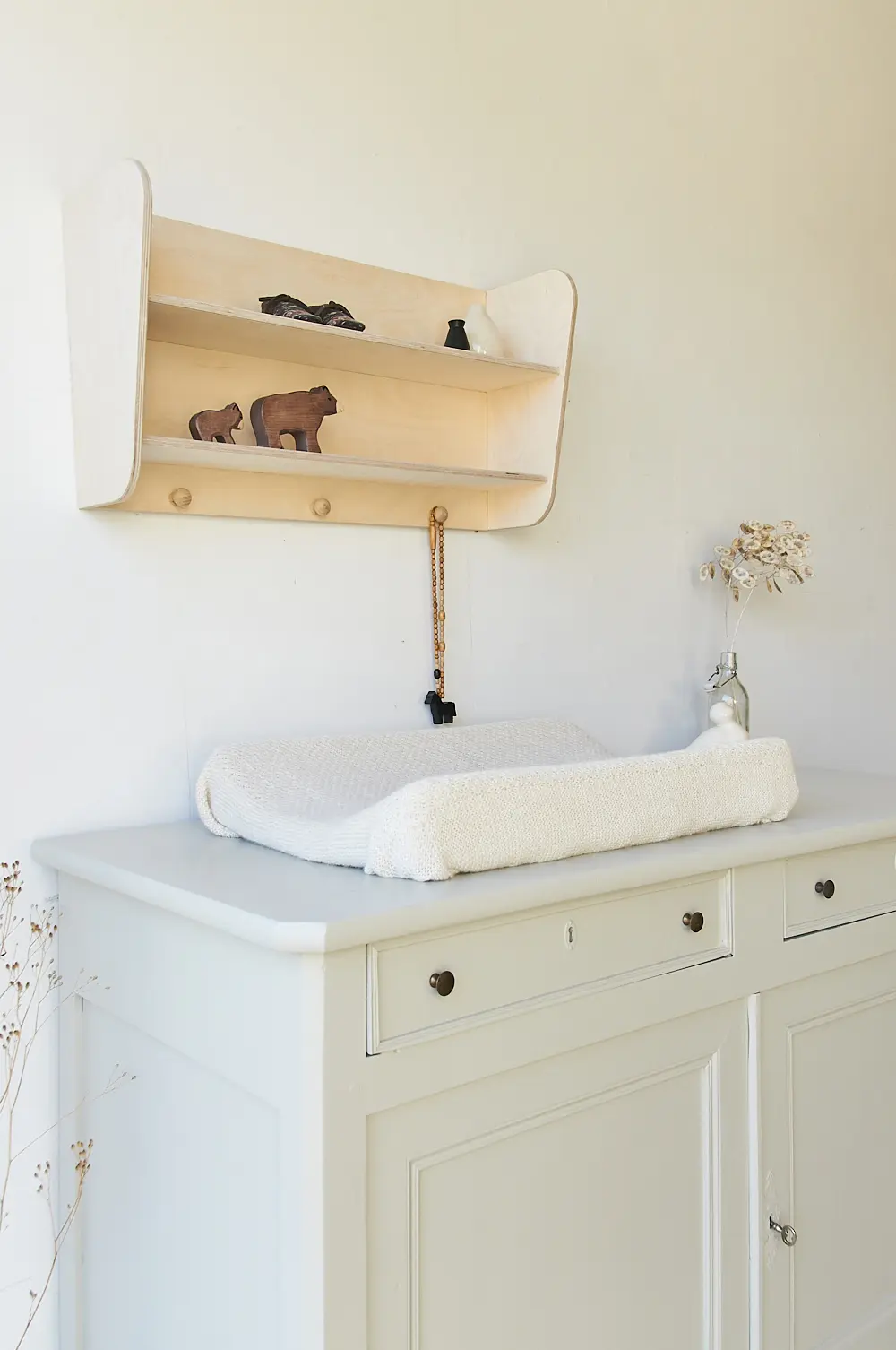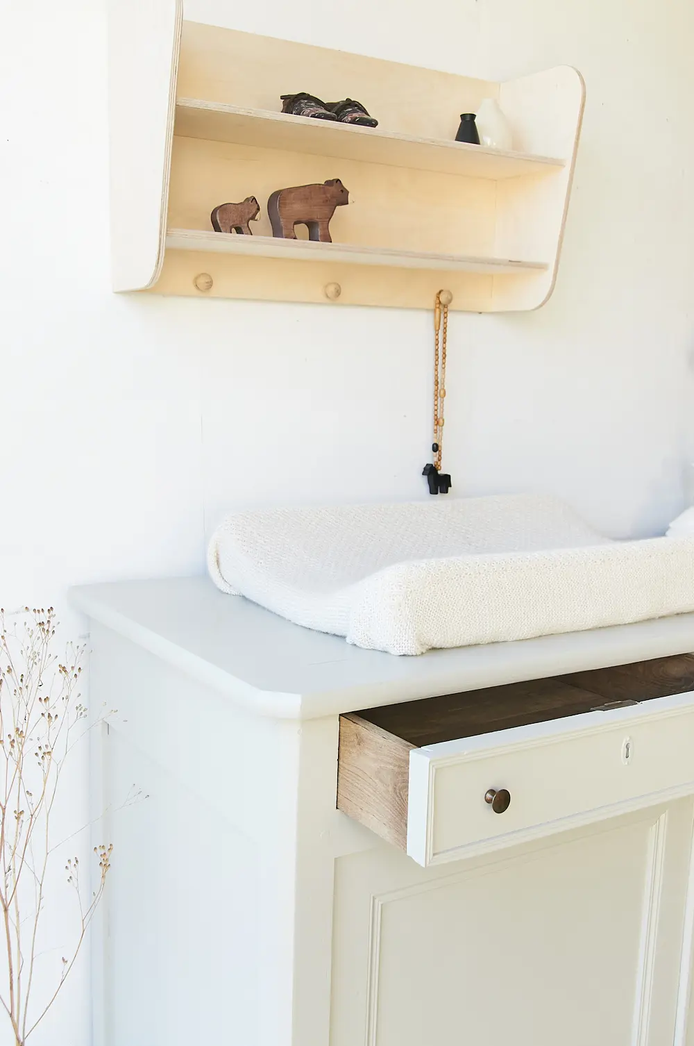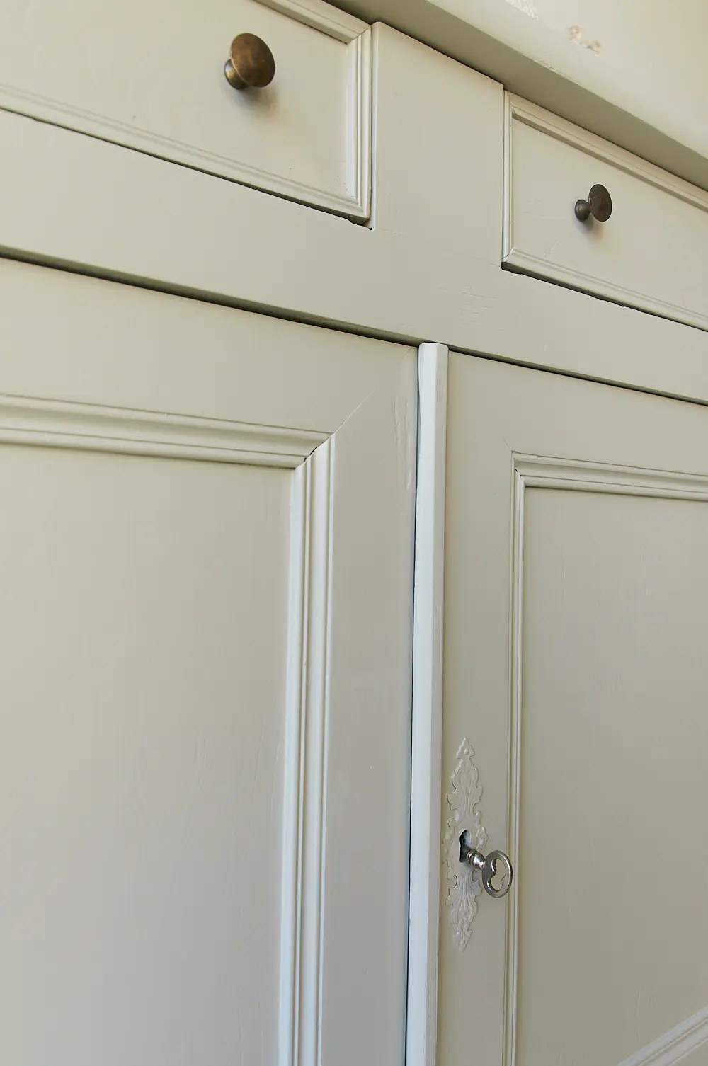 Wat een mooie, robuuste commode is dit. Zo fijn, er kan heel veel in! Deze commode komt uit midden Frankrijk. Het meubel is van prachtig, massief hout gemaakt. Van binnen heeft hij een brede plank, waar je heel veel bakken met kleertjes, luiers en andere spulletjes in kwijt kan. Dit meubel zou ook fantastisch staan in de woonkamer, ideaal om al het speelgoed in op te bergen! De commode is na het zandstralen grondig schoongemaakt en behandeld tegen houtworm. Vervolgens hebben we er voor gezorgd dat de lades niet meer klemmen en de deurtjes soepel open en dicht gaan. De plank die er in licht is licht opgeschuurd, zodat deze weer glad en splintervrij is. De commode hebben we in onze kleur linnen geschilderd en we hebben hem afgewerkt met bronzen knopjes. Een hele mooie combinatie vinden wij! De linker deur sluit door middel van een haakje en de rechterdeur sluit met de sleutel. Kortom, de commode is weer klaar voor een nieuwe plek! Het fijne wandplankje is ook bij ons te koop, klik HIER!
