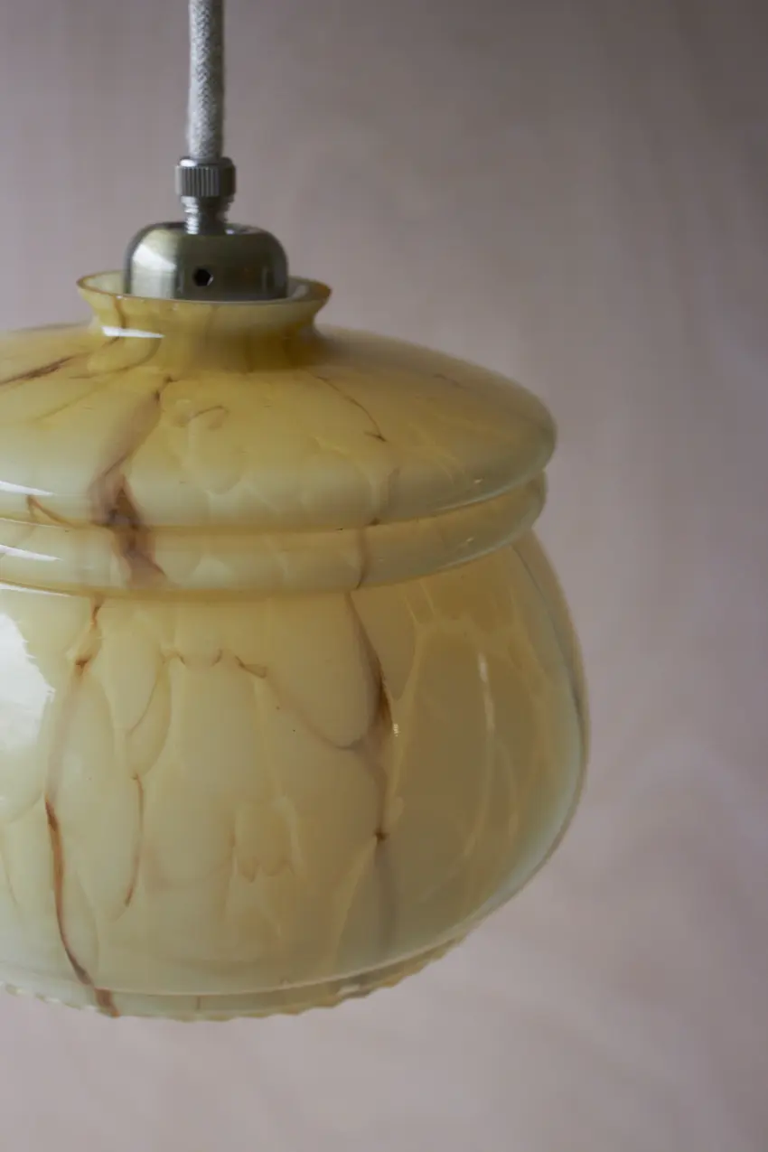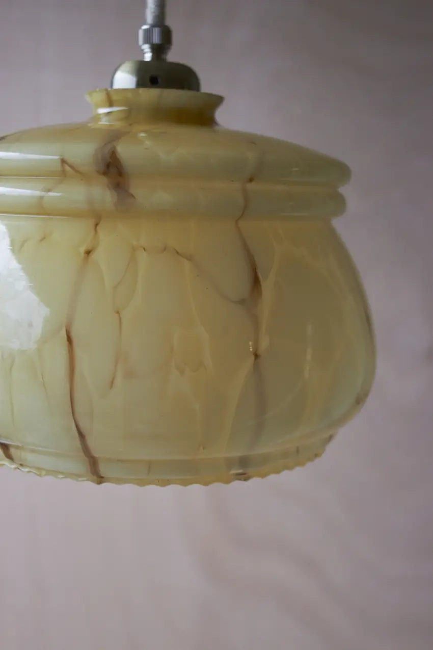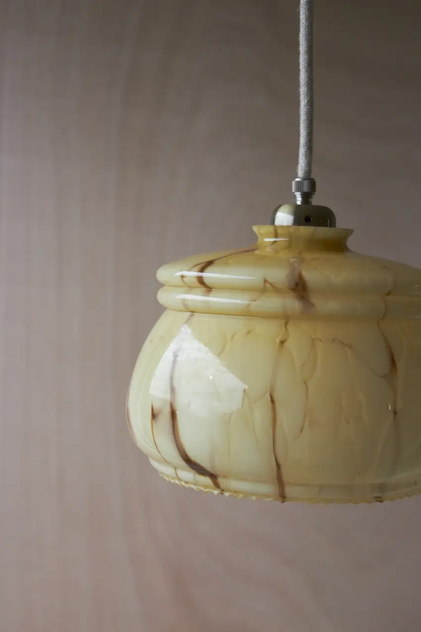 klassieke glazen hanglamp met zacht gemarmerd patroon