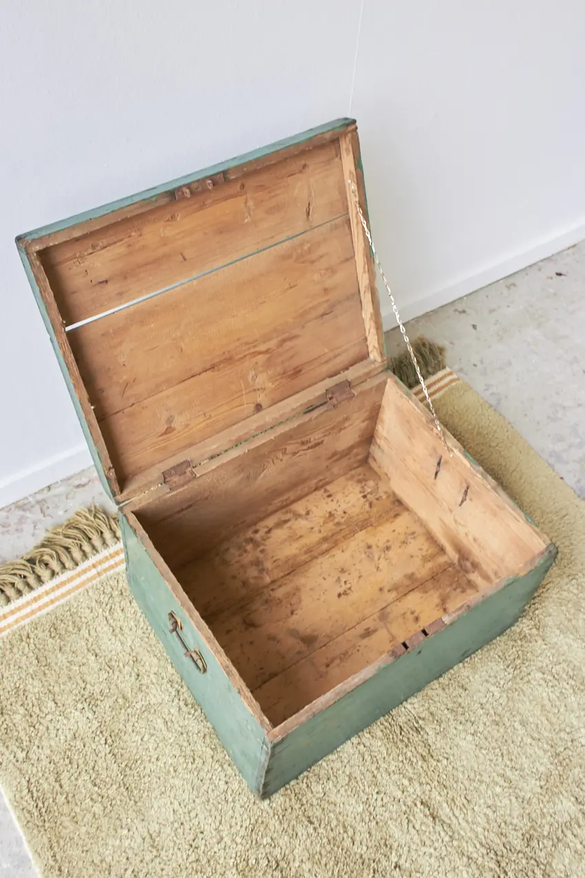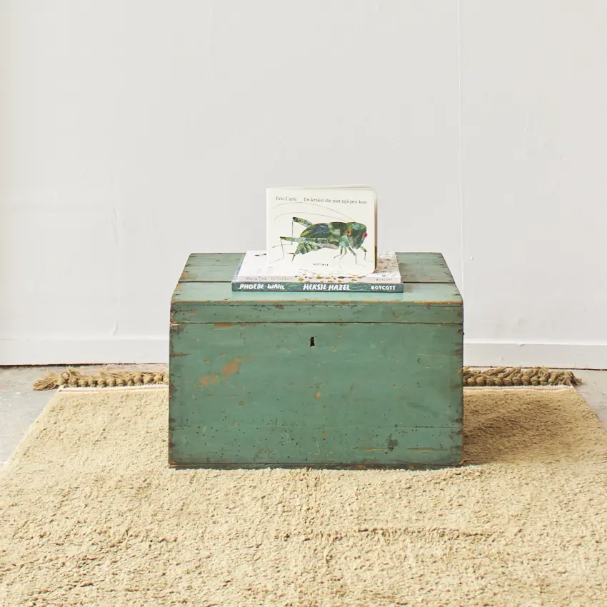 Wat een lief klein vintage kistje! Dit kistje is wat kleiner van formaat dan de meeste kisten die we opknappen. Het is een fijn formaat om wat kleinere spullen in op te bergen. Kleine boekjes, edelstenen of andere schatten kun je hier in kwijt. Een fijne kist die je overal wel voor kunt gebruiken! We hebben deze kist goed schoongemaakt en behandeld met een anti-houtworm spray. Deze kist is ooit helemaal groen geschilderd, maar deze verf is er gedeeltelijk vanaf, wat hem een extra mooi oud uiterlijk geeft. Een mooi, oud kistje voor in huis!