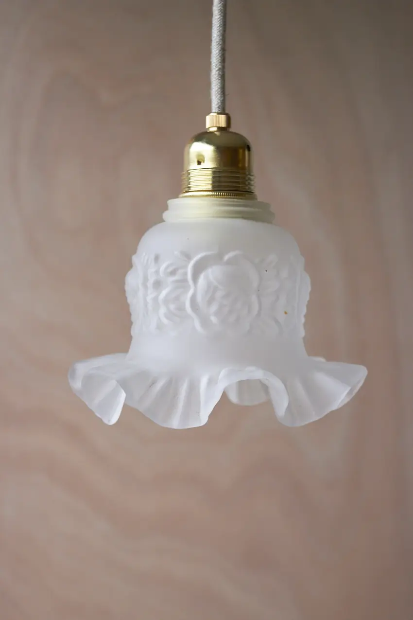 Al onze glazen lampenkapjes hebben we gevonden op diverse Franse en Belgische rommelmarkten en brocantes. Ze zijn allemaal uniek en geven zoveel sfeer! Een vintage hanglampje is een mooie toevoeging aan een ruimte en geeft meteen zoveel warmte, zelfs wanneer het lampje niet aan staat. We hebben ze allemaal een bijpassend snoer en fitting gegeven en nu zijn ze weer helemaal klaar voor een nieuwe plek in huis.