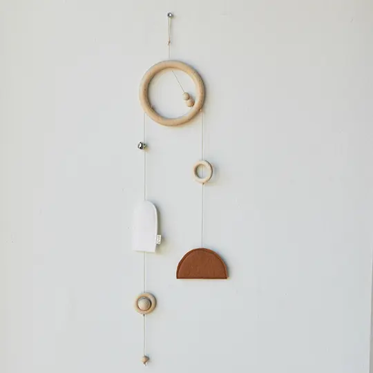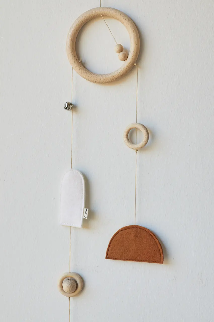 Deze decoratieve mobiel is handgemaakt in Woerden. Wat een mooie combinatie, de speelse vormen in combinatie met de rustgevende kleuren! De houten ring is gemaakt van onbehandeld beukenhout uit duurzaam geplante bossen in Europa. Het vilt is van puur scheerwol, gekleurd is met natuurlijke materialen. Mooi voor aan de muur in de kinderkamer of boven het dressoir in de woonkamer. Door het lusje hang je hem gemakkelijk aan de muur.