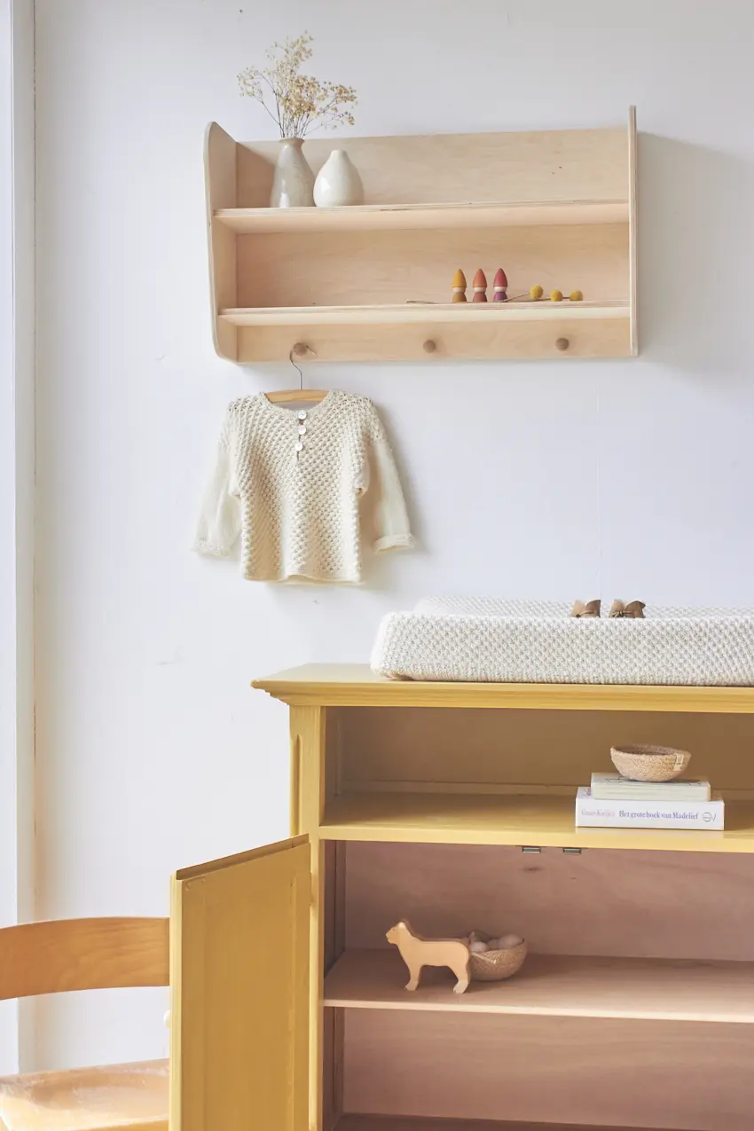 Ons wandplankje met de hand gemaakt is ook bij ons te koop. Klik hier voor al onze kinderkamer decoratie.