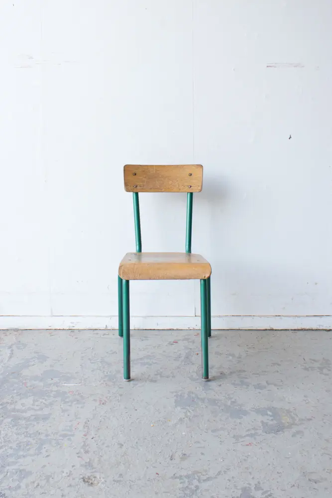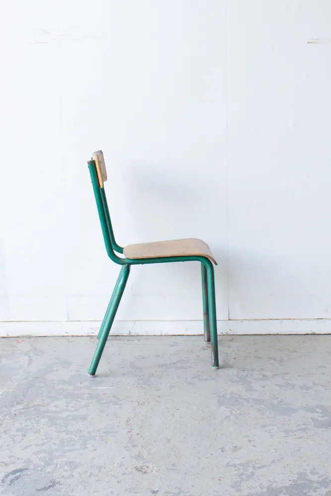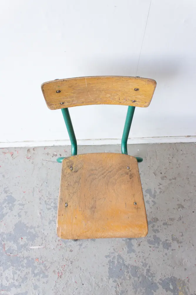Een leuk stoeltje met groen frame. Geschikt voor een peuter!