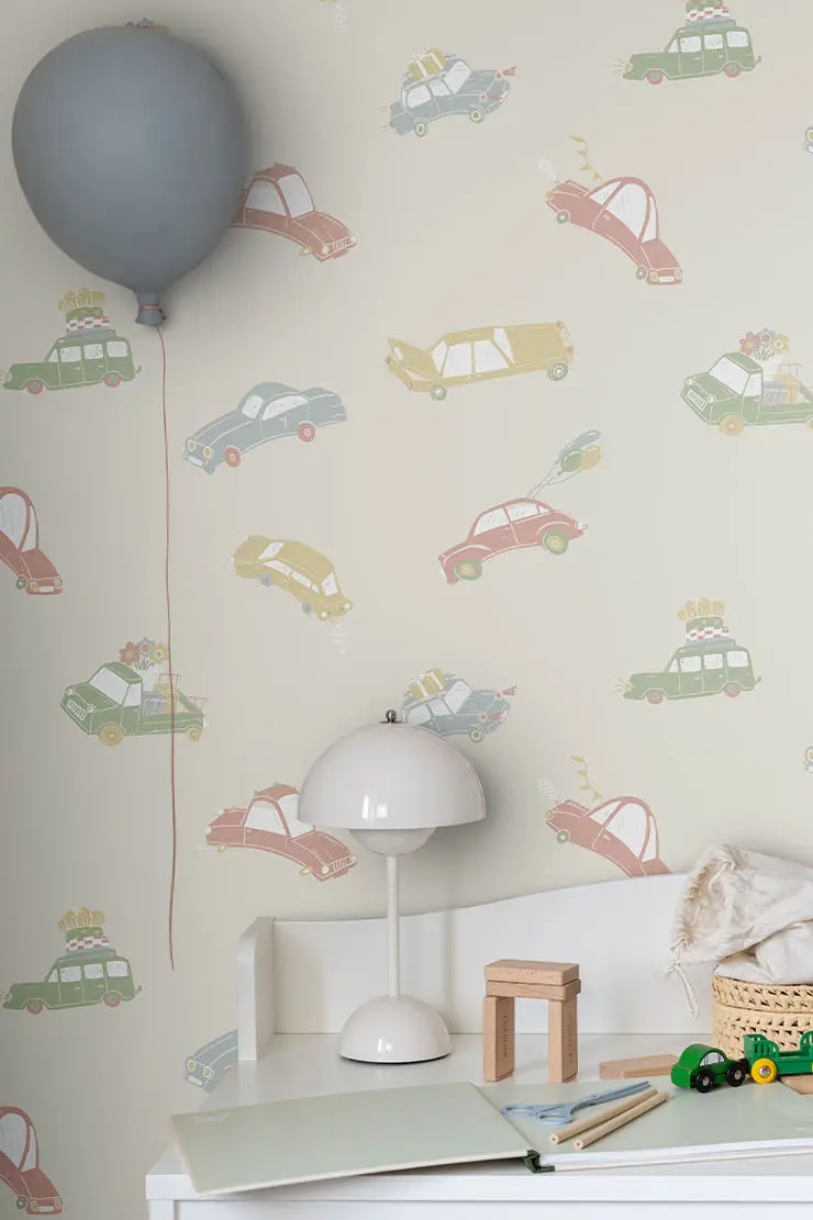 Jongens en autos, een gouden combi! Met dit behang maak je elk jongetje blij! De gedempte kleuren in dit behang passen perfect bij een vintage meubel in een tint uit ons eigen kleurenpalet. Zoals de all-time favorite: Rozemarijn, maar ook de natureltint Roest matcht erg goed! De blauwe kleur Bron of het zonnige Saffraan combineren ook prachtig en zorgen voor een warme sfeer.