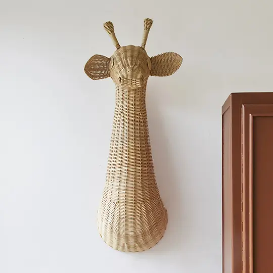 Deze vriendelijke giraf met zijn mooi lange nek is helemaal gemaakt van rotan. Hij tovert de kamer van je kleintje in één keer om naar een echt dierenparadijs. Een echte eye-catcher! Hoewel hij zo groot is, is hij niet zwaar. Je hangt hem zo aan een spijkertje aan de muur.