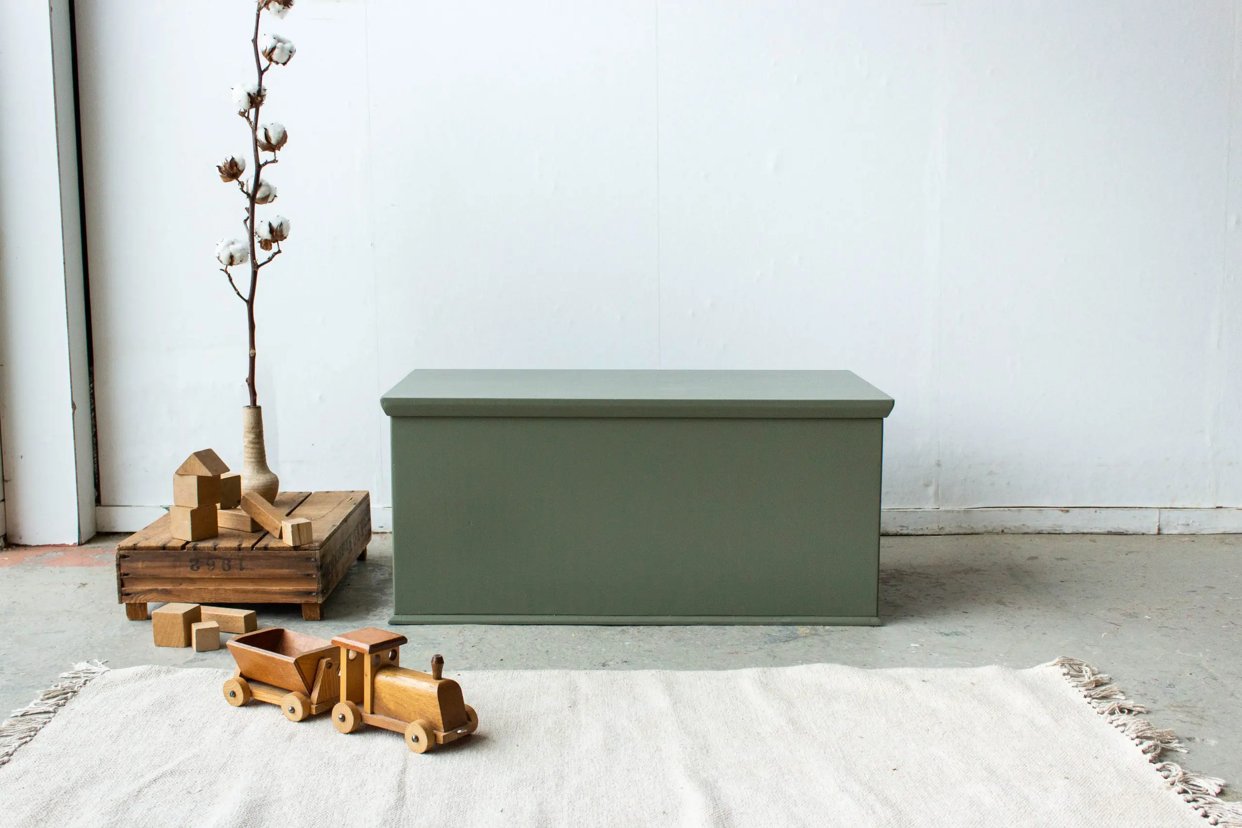 Een prachtige vintage dekenkist. Deze oude Franse kist hebben we grondig schoongemaakt, goed nagelopen en daarna in deze mooie rozemarijngroene kleur geschilderd. Wat is ie mooi geworden! Een geweldige kist voor verkleedkleren, spelletjes of speelgoed bijvoorbeeld. Klaar voor gebruik.