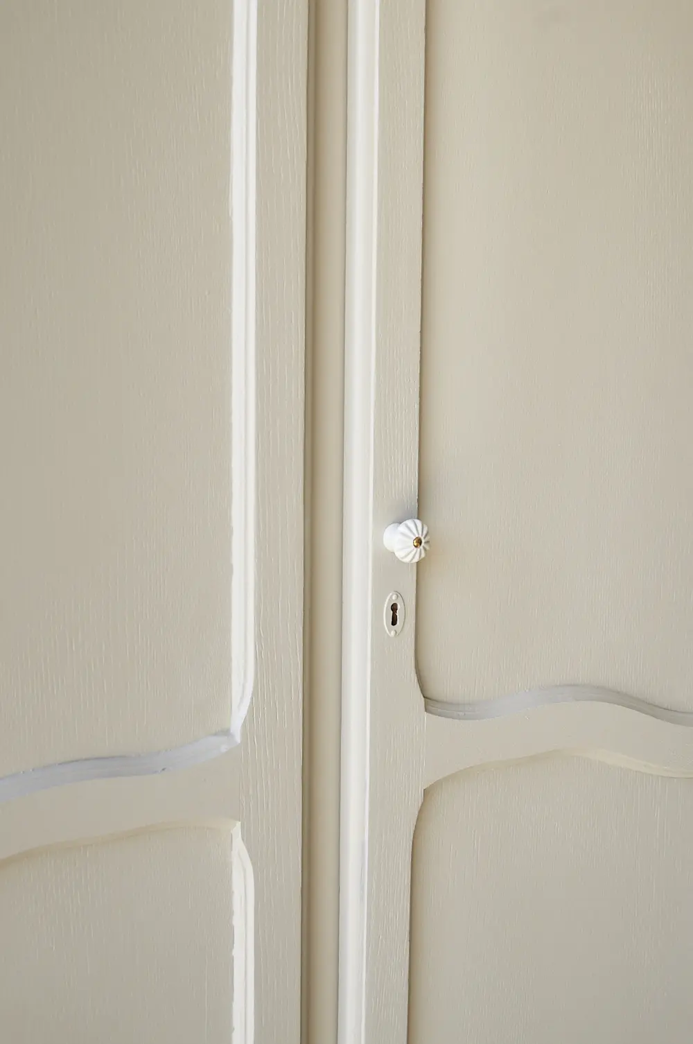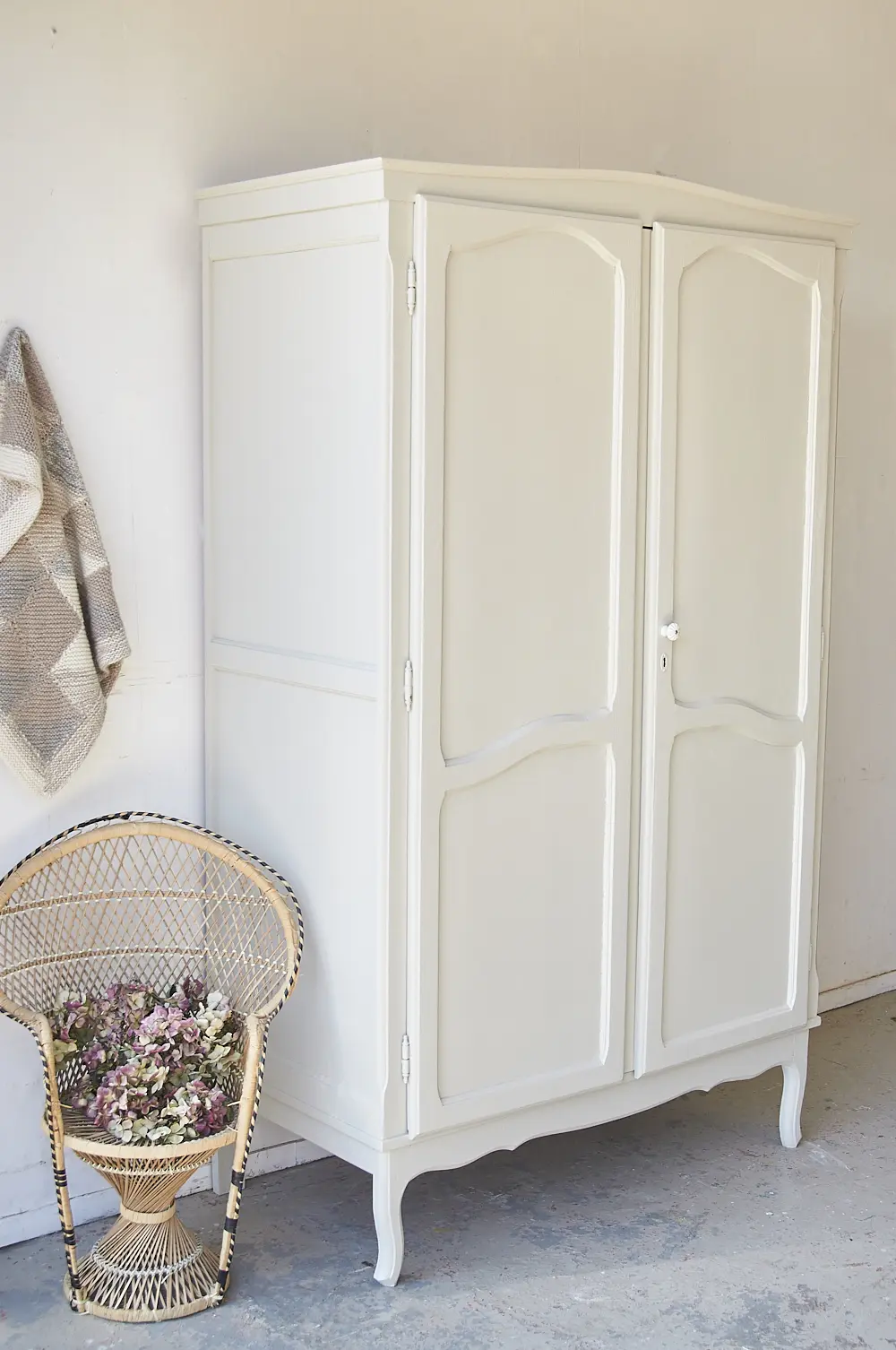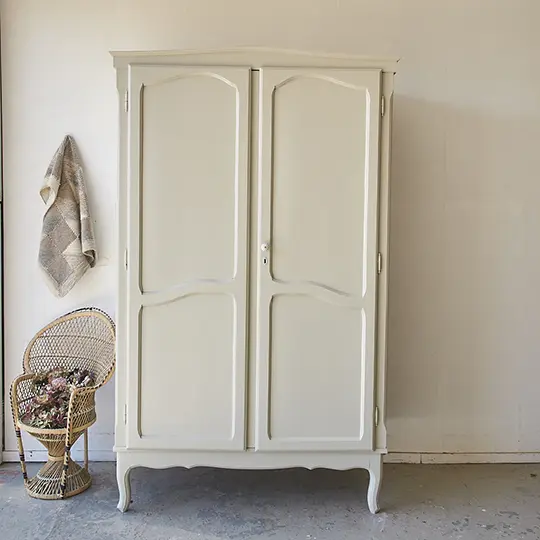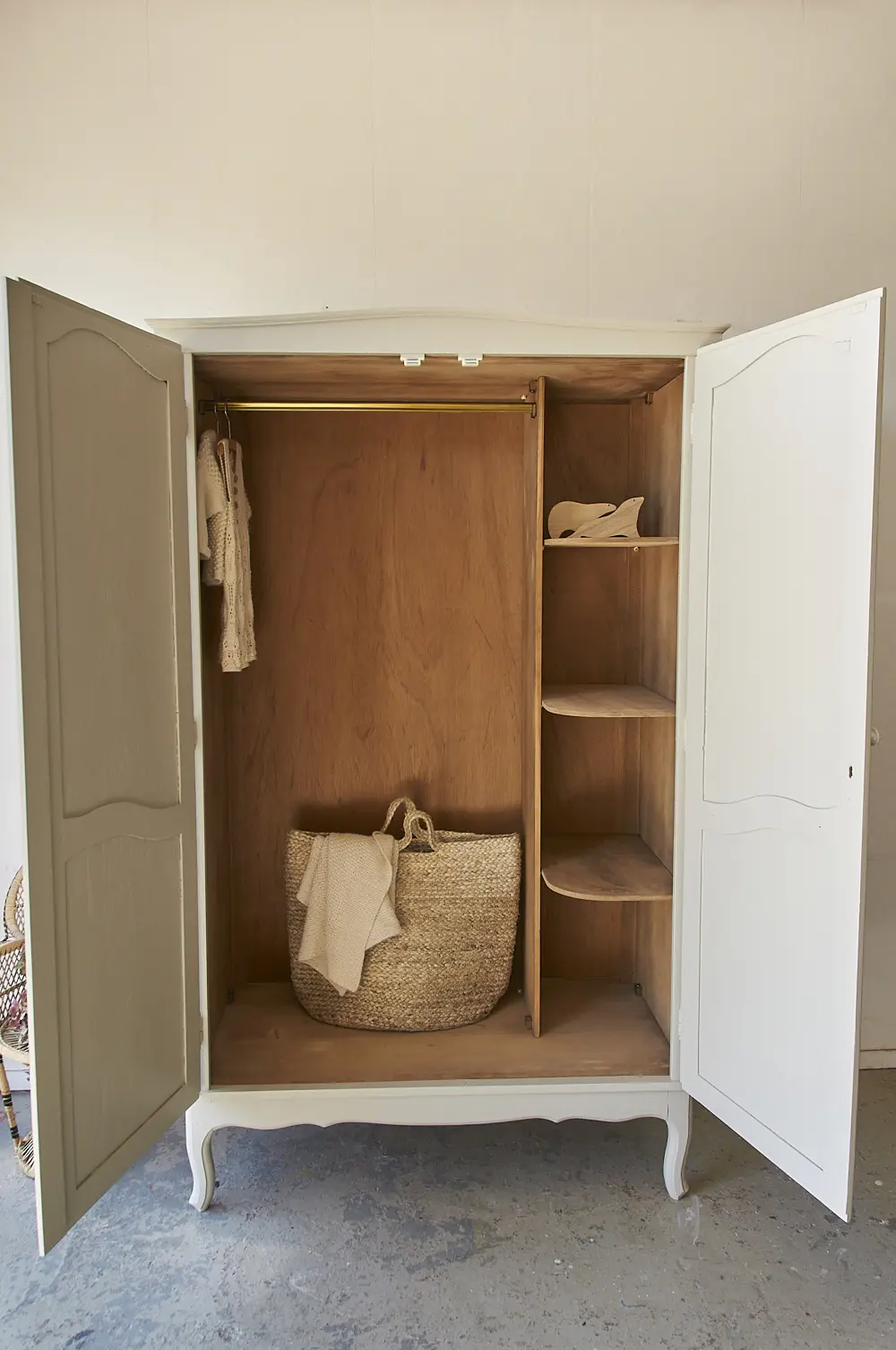 Wij worden altijd erg blij van dit model. Wij hebben dit soort kasten vaker in huis, allemaal net een beetje anders. Zo fijn dat deze kast ook demontabel is dan kan hij gemakkelijk naar boven toe. De kast is goed schoongemaakt en behandeld tegen houtworm. Wij hebben alles nagelopen. De indeling is orgineel en ziet er zo gezellig uit met de afgeronden plankjes. Wij hebben deze leukerd in onze fijn kleur linnen geschilderd. Beide deuren sluiten door middel van een magneetje. Een ideale kast voor op de kinderkamer! Die fijne opbergmand is ook te koop bij ons. Klik HIER.