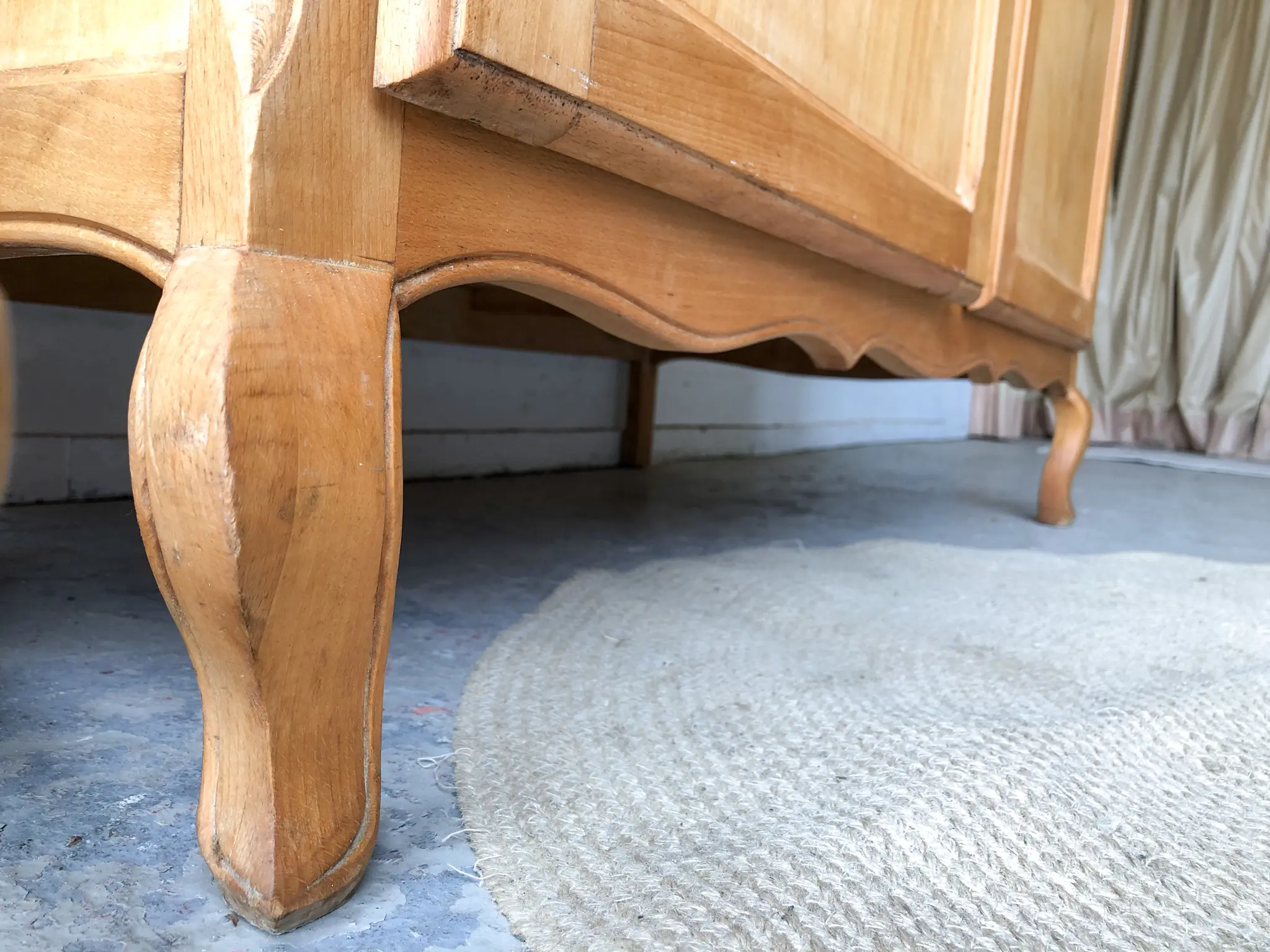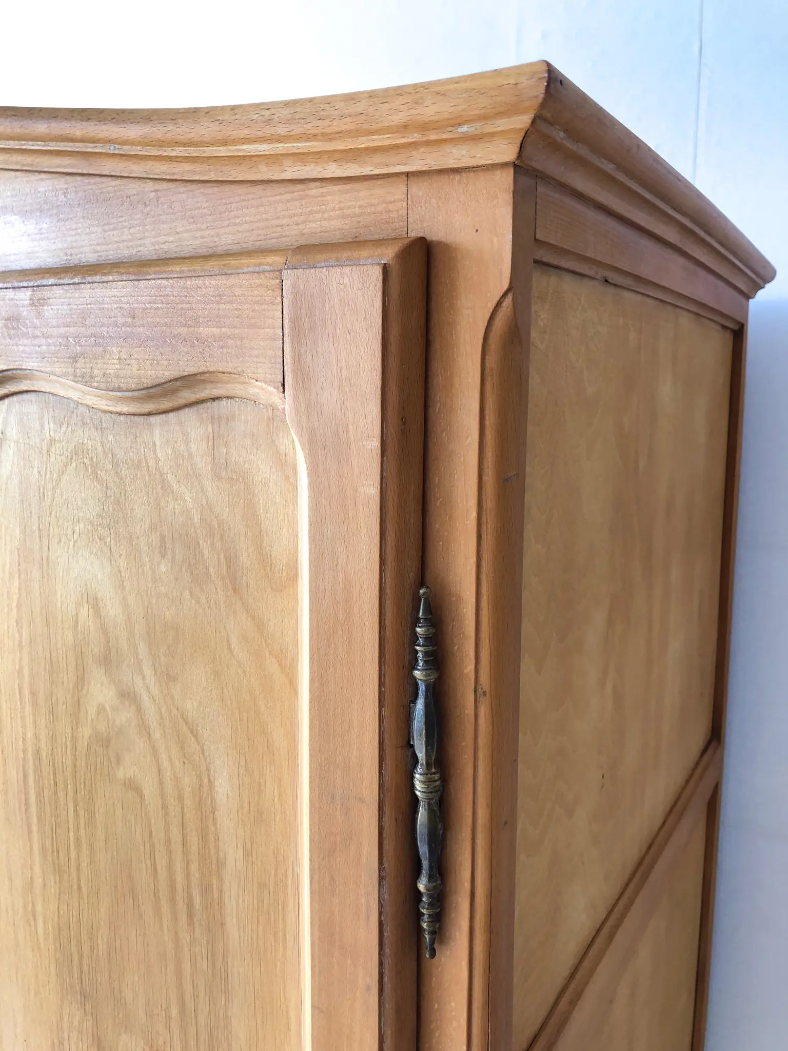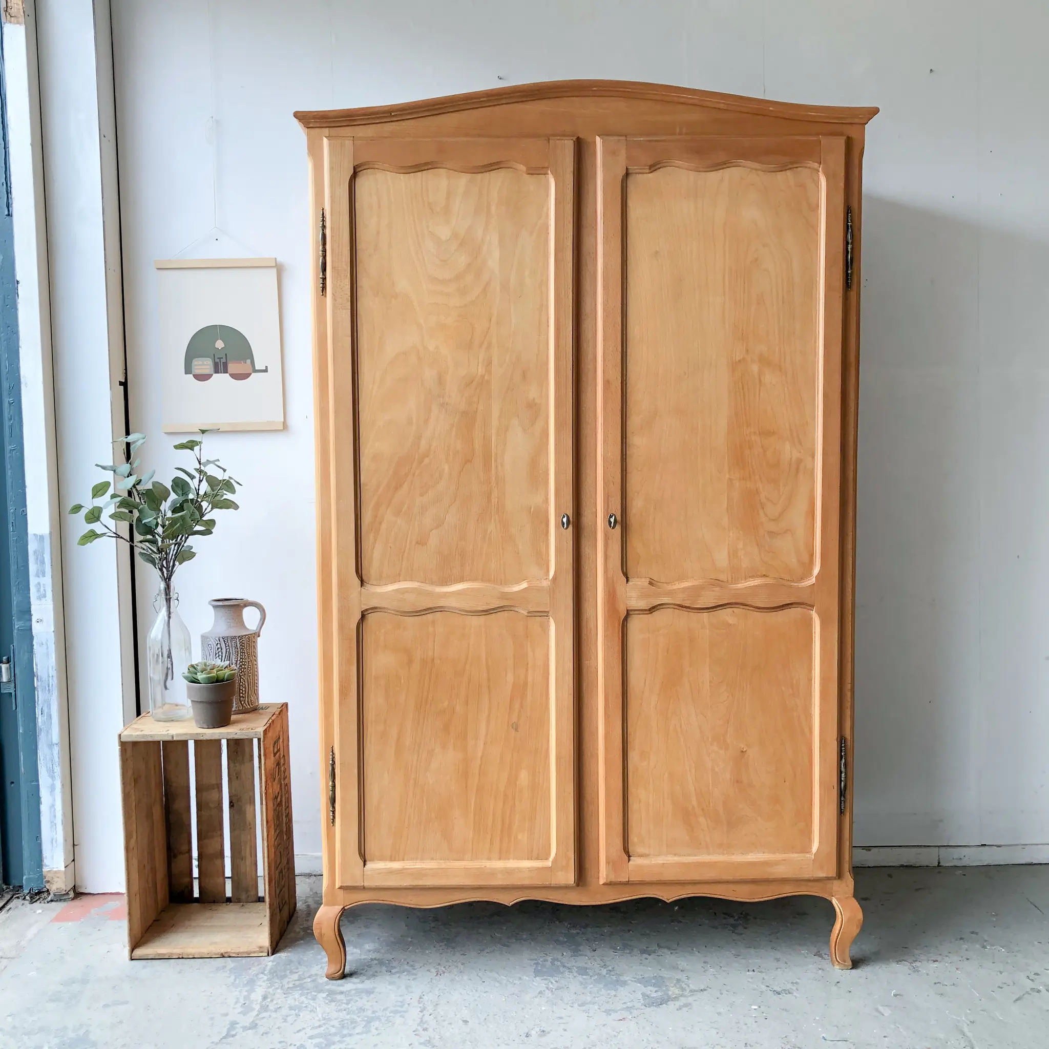 Dit soort kasten komen we in verschillende vormen en maten tegen. Het zijn ideale kasten voor op de kinderkamer. Deze had zo’n mooie houtkleur, dat we het eigenlijk zonde vonden hem te schilderen. Dus besloten we hem zo te laten! Na de grondige schoonmaakbeurt heeft hij een behandeling gehad tegen houtworm. Vervolgens hebben we hem een nieuwe indeling gegeven. Een tussenschot in het midden, drie planken achter de linker deur (berken multiplex) en een roede rechts. De kast is diep genoeg voor ook de wat grotere hangers. We hebben hem behandeld met een voedende olie en hij heeft twee nieuwe sleutelplaatjes. De sleutels werken niet optimaal, vandaar dat beide deurtjes sluiten met een magneetje. Et voilà, klaar is kees!