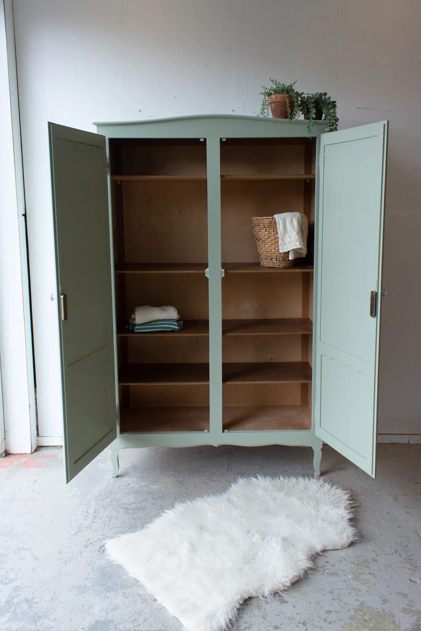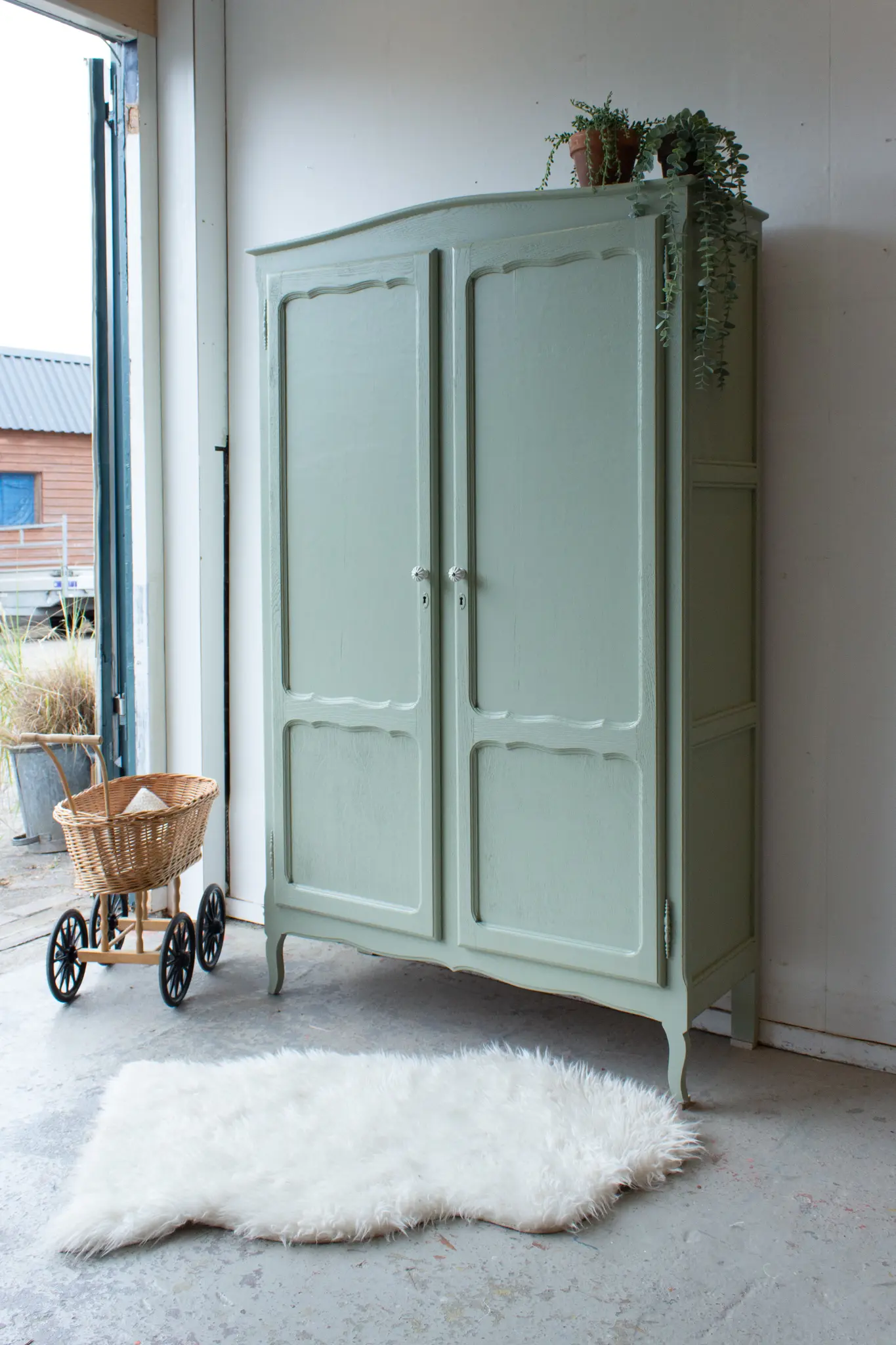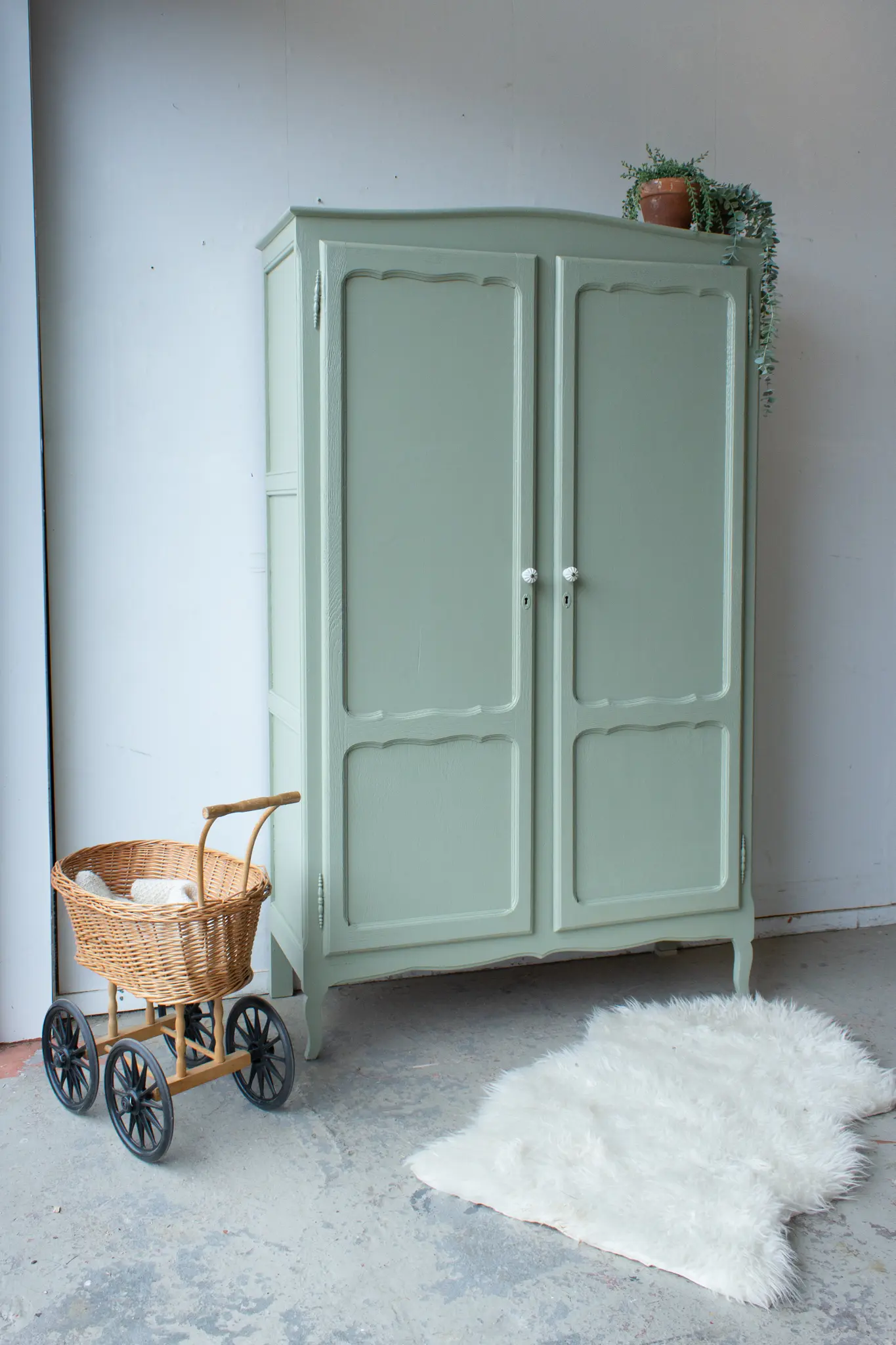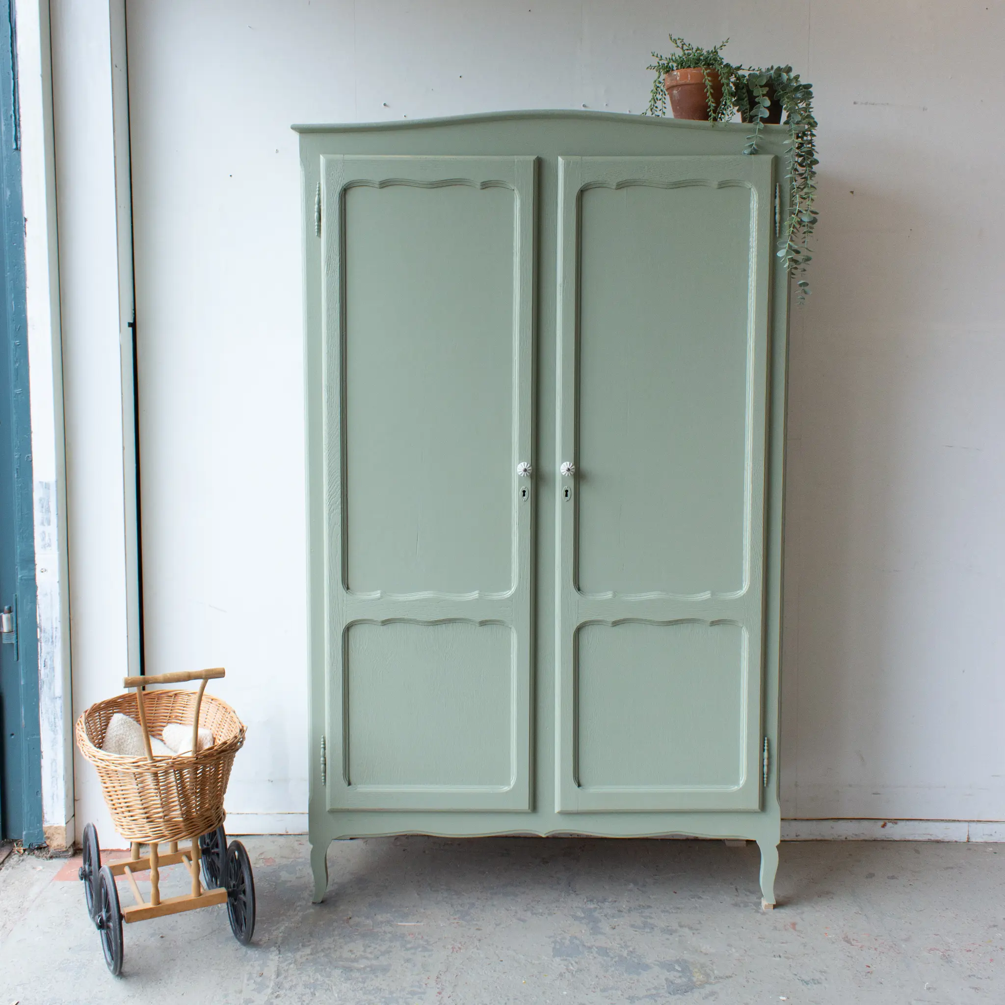 Sierlijke vintage kast in zachte groen