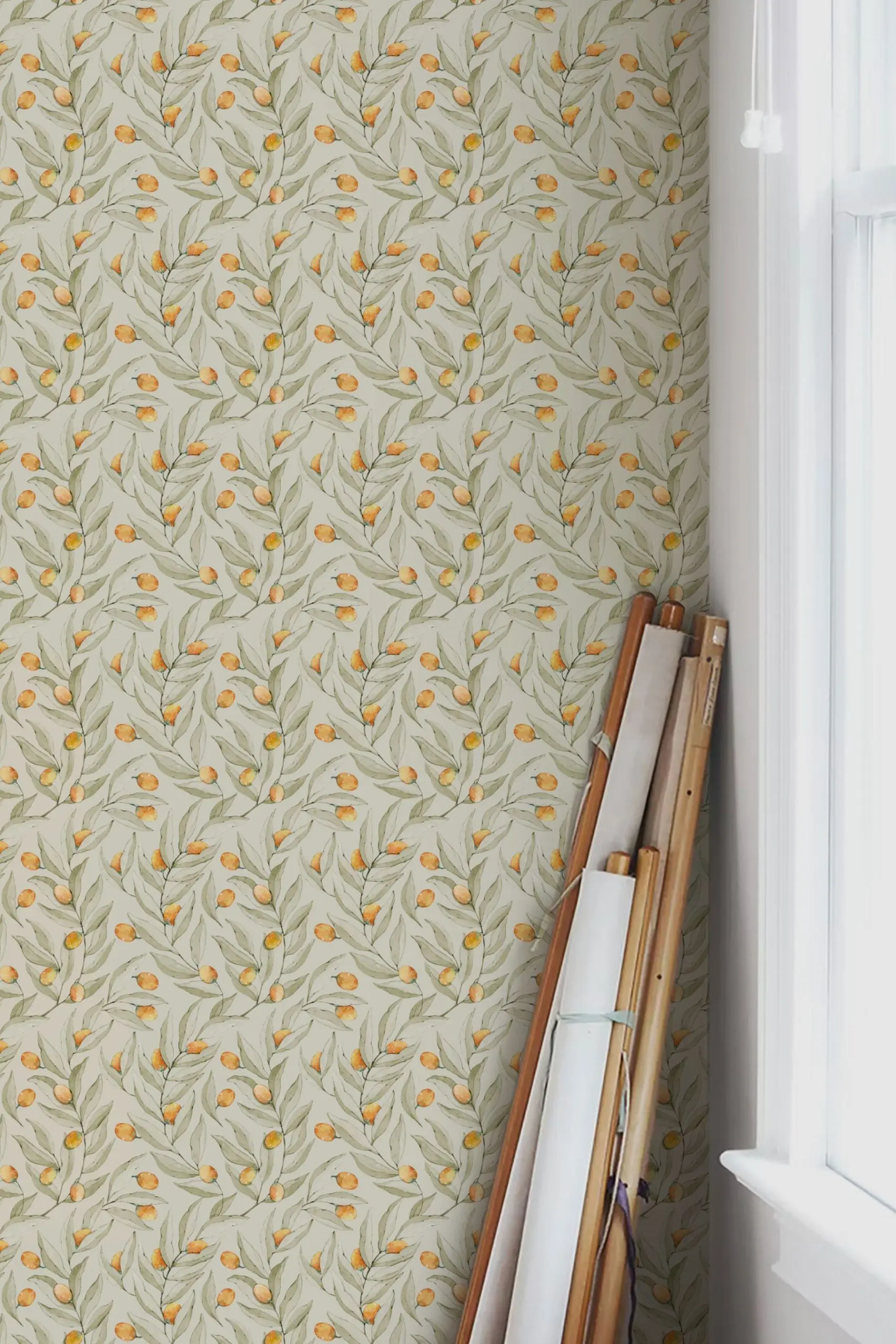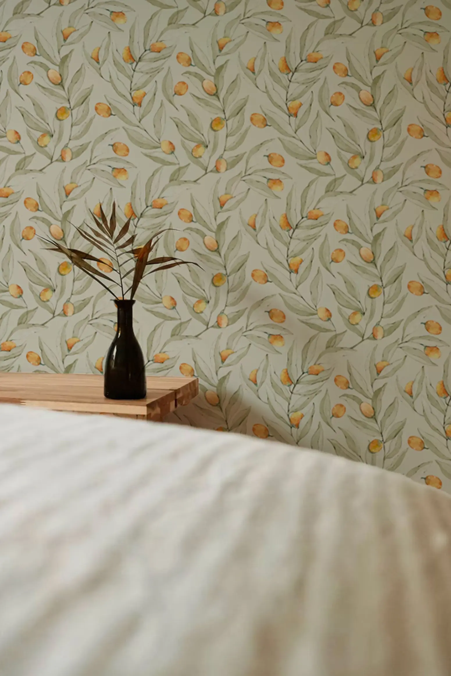 Dit mooie behang heeft een print van subtiele citrusvruchten met kleuren die geïnspireerd zijn op warme, zachte zomerdagen. Het behang heeft een warme uitstraling door de zachte, groene en gele kleuren, maar is tegelijkertijd ook een frisse toevoeging aan de kinderkamer. Dit behang is geschikt voor verschillende leeftijden en kan meegroeien met jouw kindje.