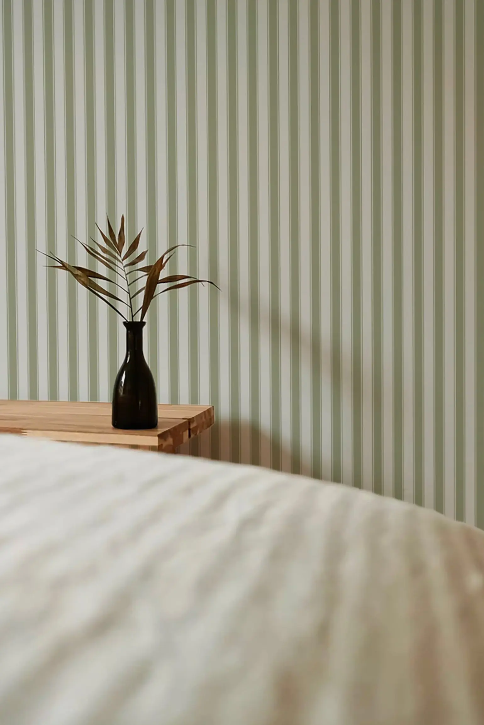 Dit streepjes behang vraagt om een Firma Zoethoutmeubel in een van onze prachtige kleuren. Denk aan de mooie groentinten Rozemarijn, Voorjaar of Artisjok. Of om een lekker statement te maken kan je ook voor een contrasterende kleur kiezen zoals het warme Roest.
