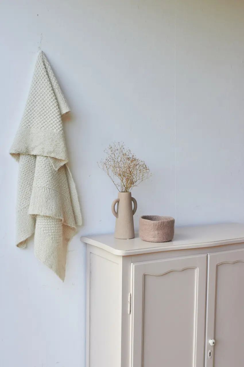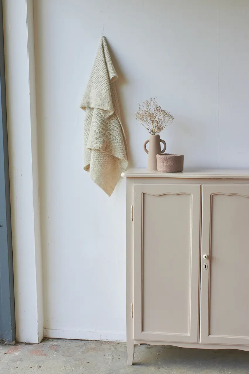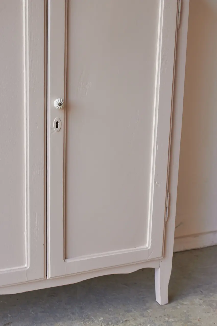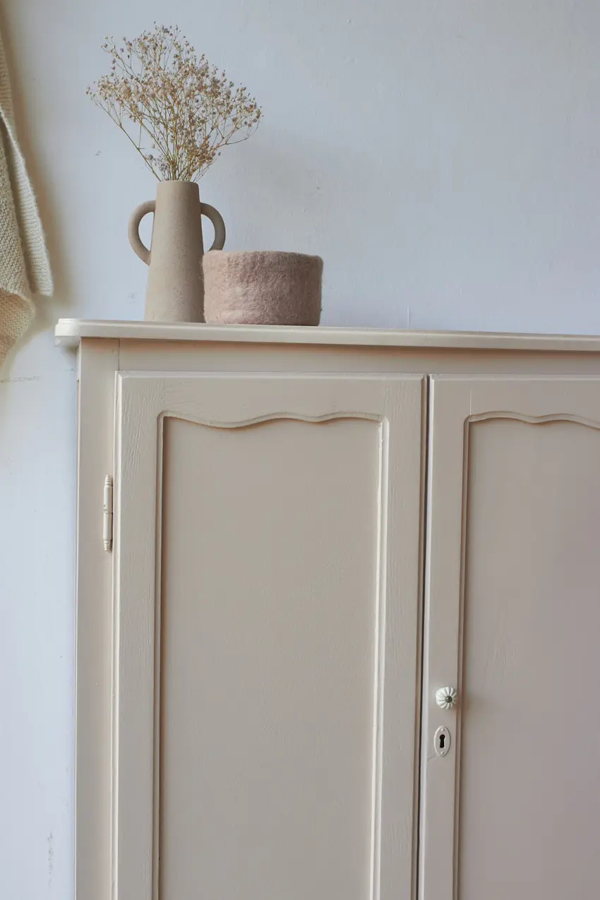 De achterkant is helemaal vervangen en de plank in de kast in nieuw. We kozen uiteindelijk voor deze heerlijke fijne zachte kleur Bloesem. Helemaal klaar voor een nieuwe plek.