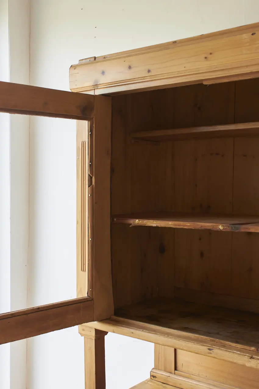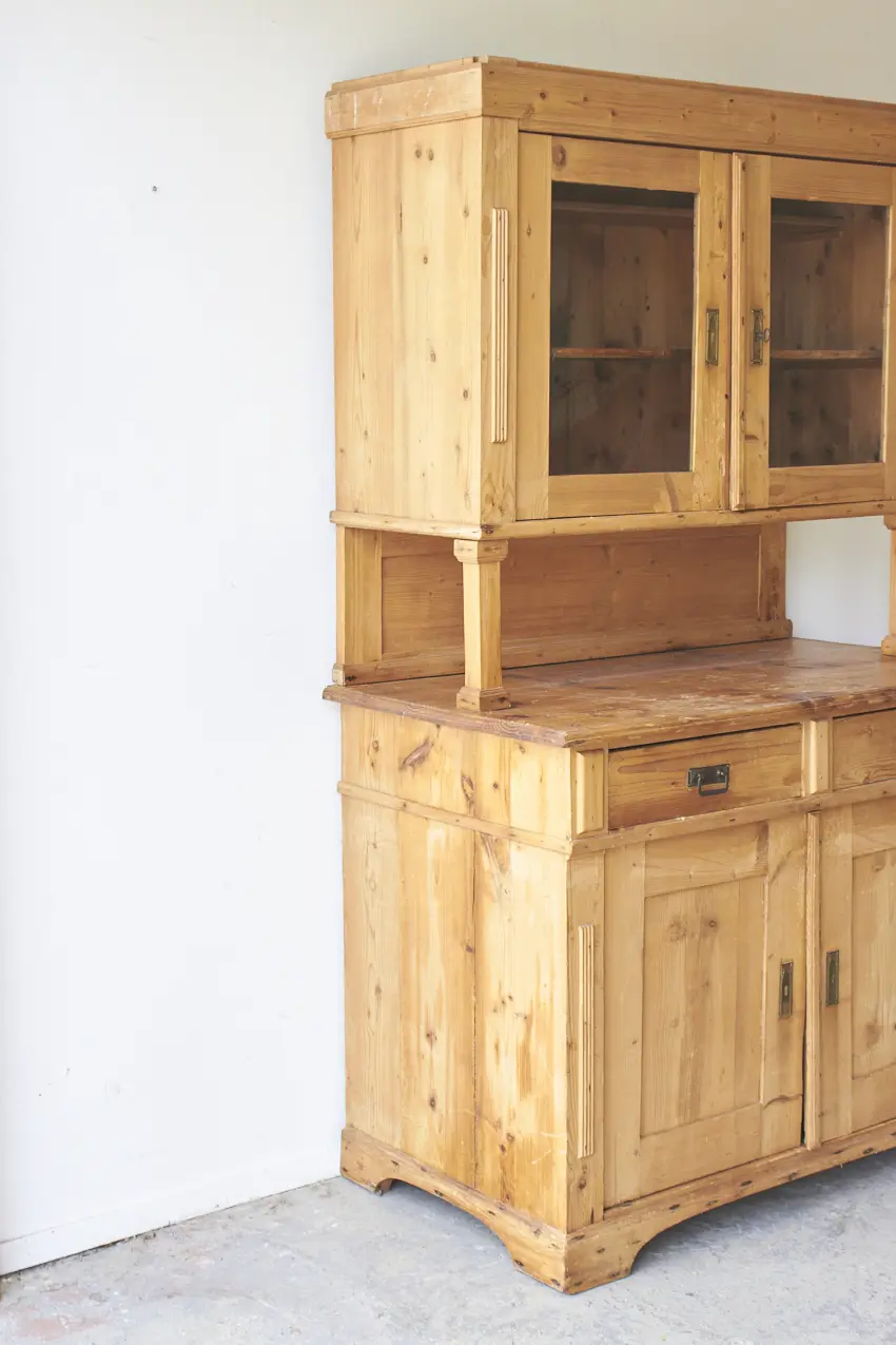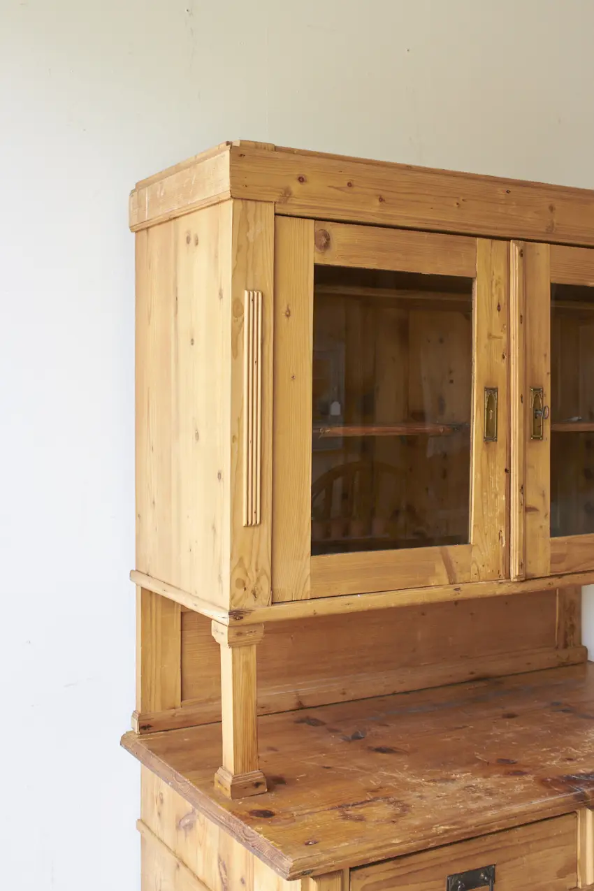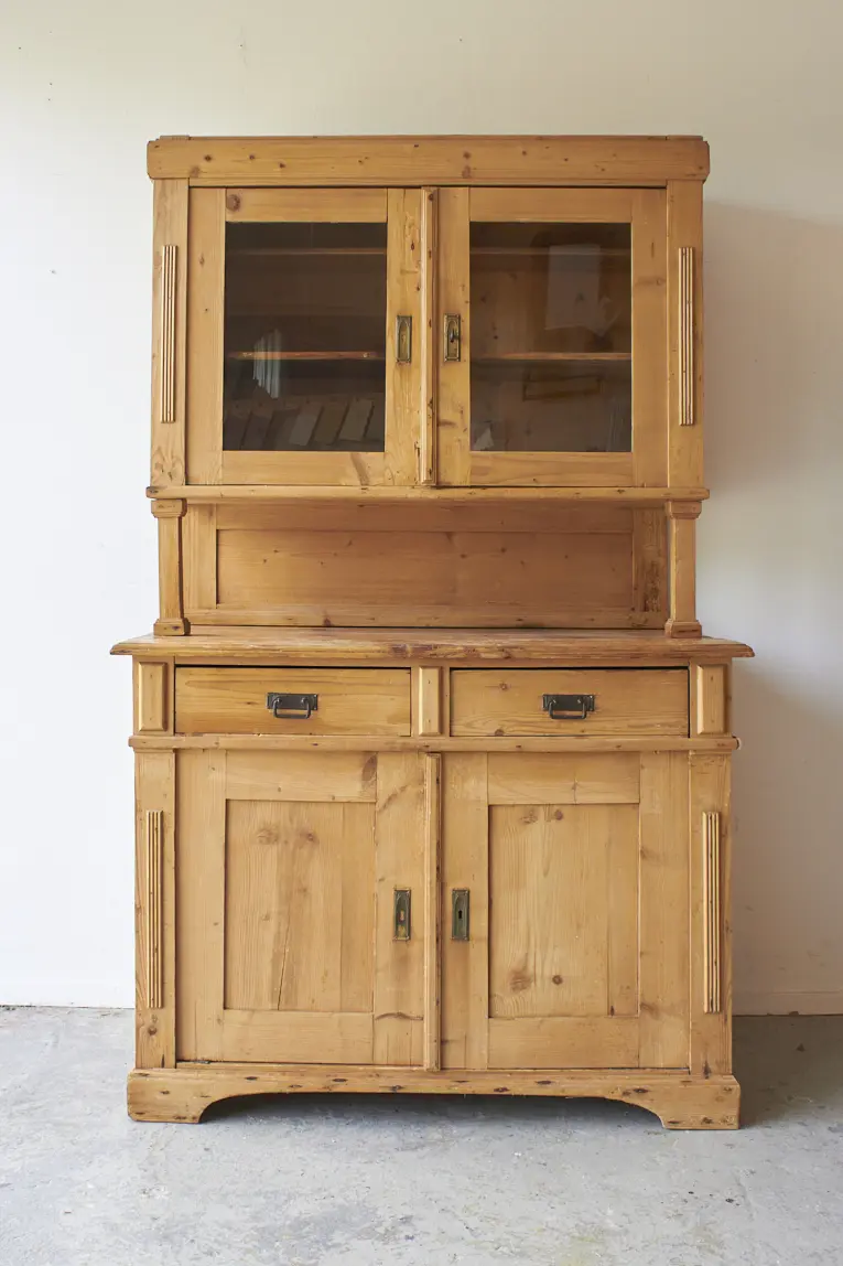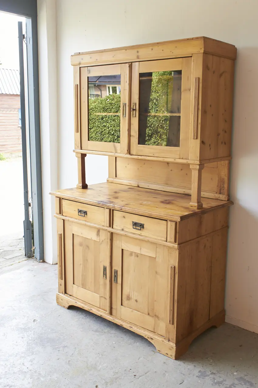 vintage buffetkast met glas, deurtjes en lades