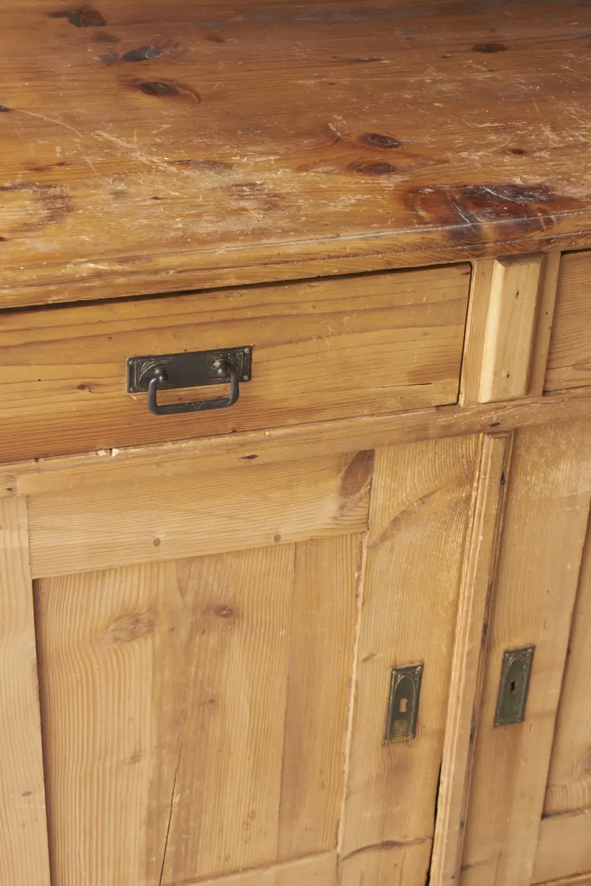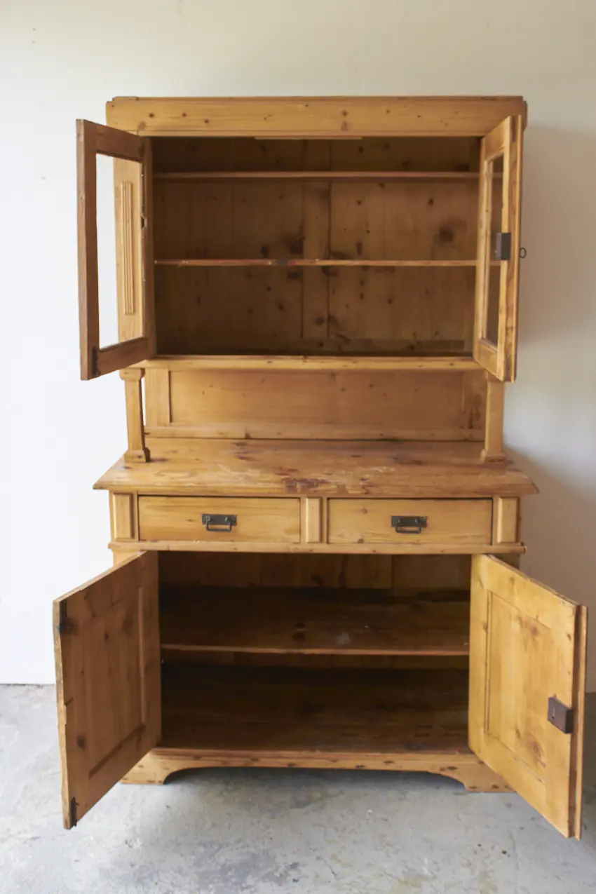 vintage buffetkast met glas lades en deurtjes