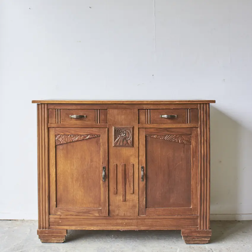 We hebben deze vintage commode grondig schoongemaakt en behandeld tegen houtworm. Het blad hebben we iets verlengt aan de achterkant waardoor het meubel nu mooi tegen de muur aan sluit. De originele plank hebben goed opgeschuurd en de deurtjes gaan ook weer gemakkelijk open en dicht.