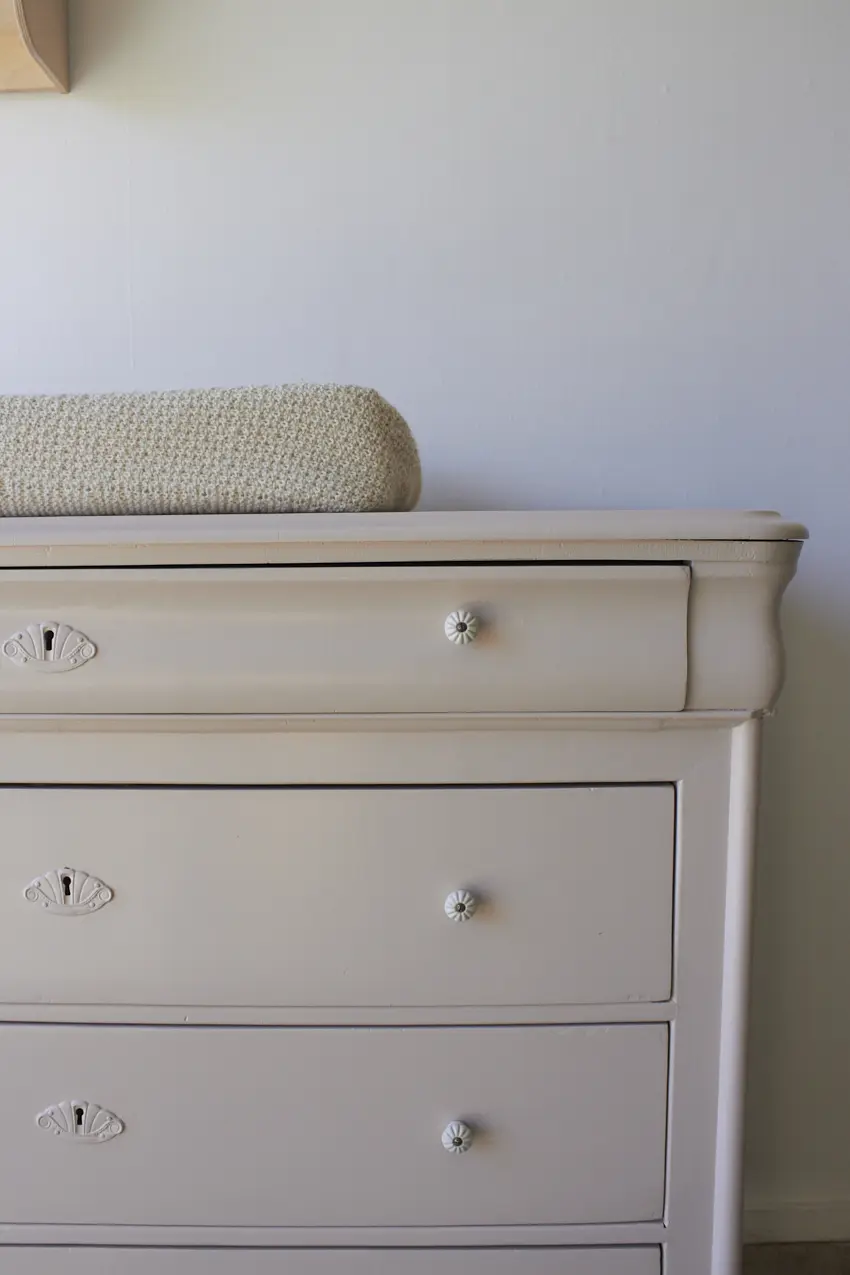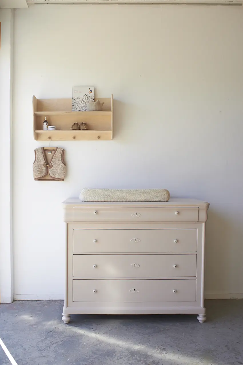 Deze prachtige commode hebben we op mogen knappen voor de winkel. We hebben deze vintage ladekast de kleur Bloesem gegeven uit het Firma Zoethout kleurenpalet. Hierdoor is hij perfect als commode op de babykamer of als dressoir in een slaapkamer of woonkamer. Door de meerdere lades is er voldoende opbergruimte en het blad is groot genoeg voor een aankleedkussen. Het heeft zelfs nog voldoende ruimte voor een mandje met verzorgingsproducten of hydrofiele doeken.