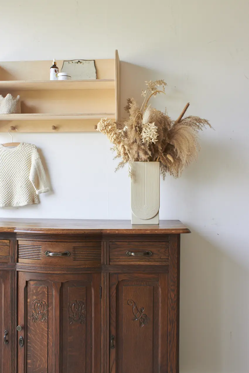 Het blad is diep en breed genoeg om hem als commode te gebruiken, maar je kunt hem ook ergens anders voor gebruiken. In de hal voor handschoenen en sjaals, of in de woonkamer als opbergkast vol met speelgoed en spelletjes. Eigenlijk past dit kastje met zijn fijne formaat overal wel.