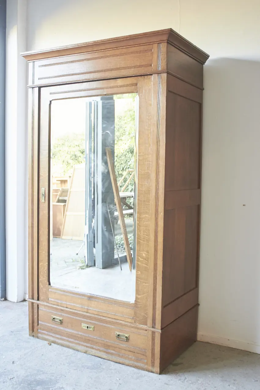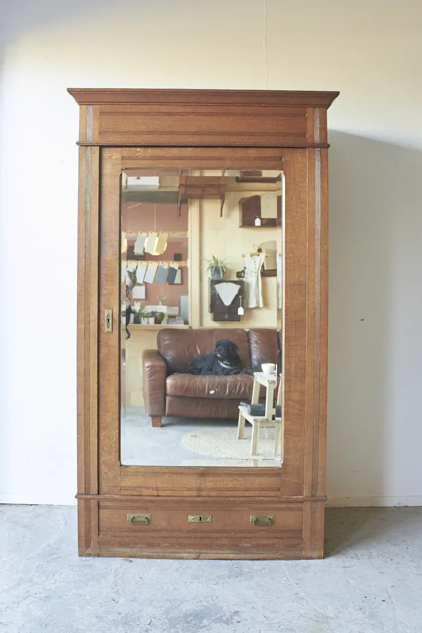 Wat een prachtige eendeurs kast! We kunnen de spiegel vervangen voor hout of glas. Ook kunnen we er een poot onder plaatsen. Perfect voor op de kinderkamer of voor in de hal. Deze eendeurskast heeft veel ruimte binnenin en is helemaal naar jouw wens samen te stellen.