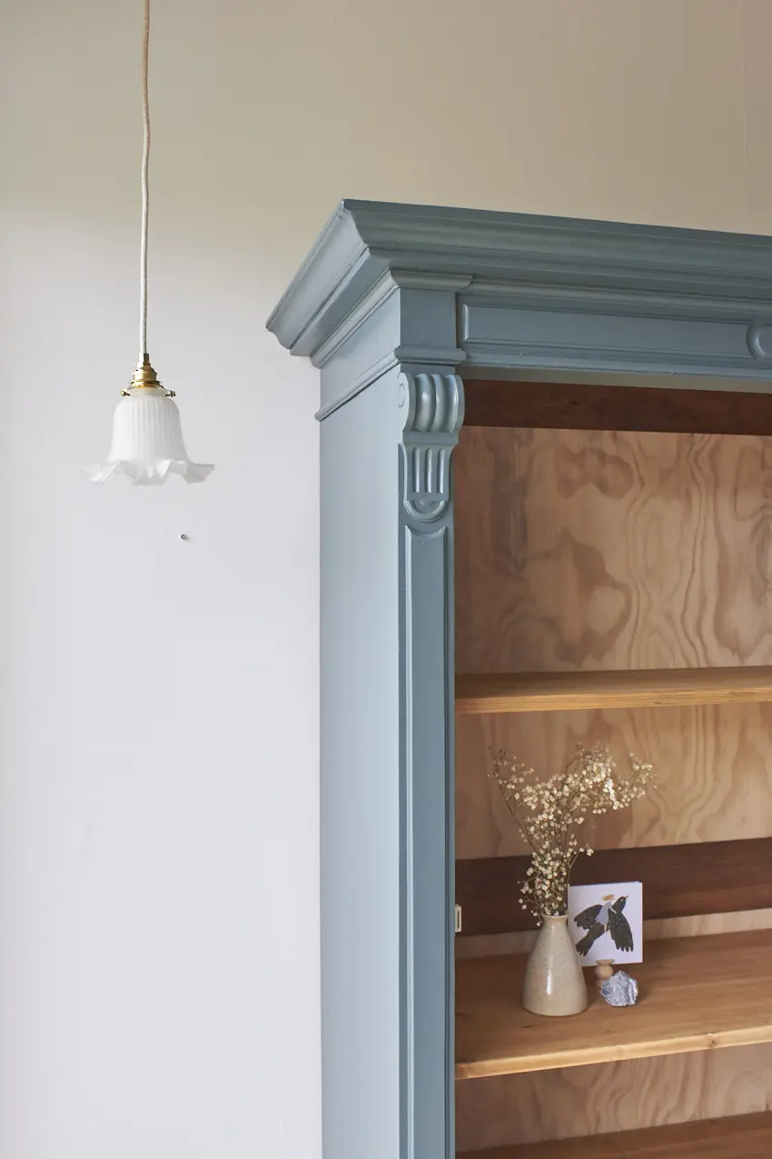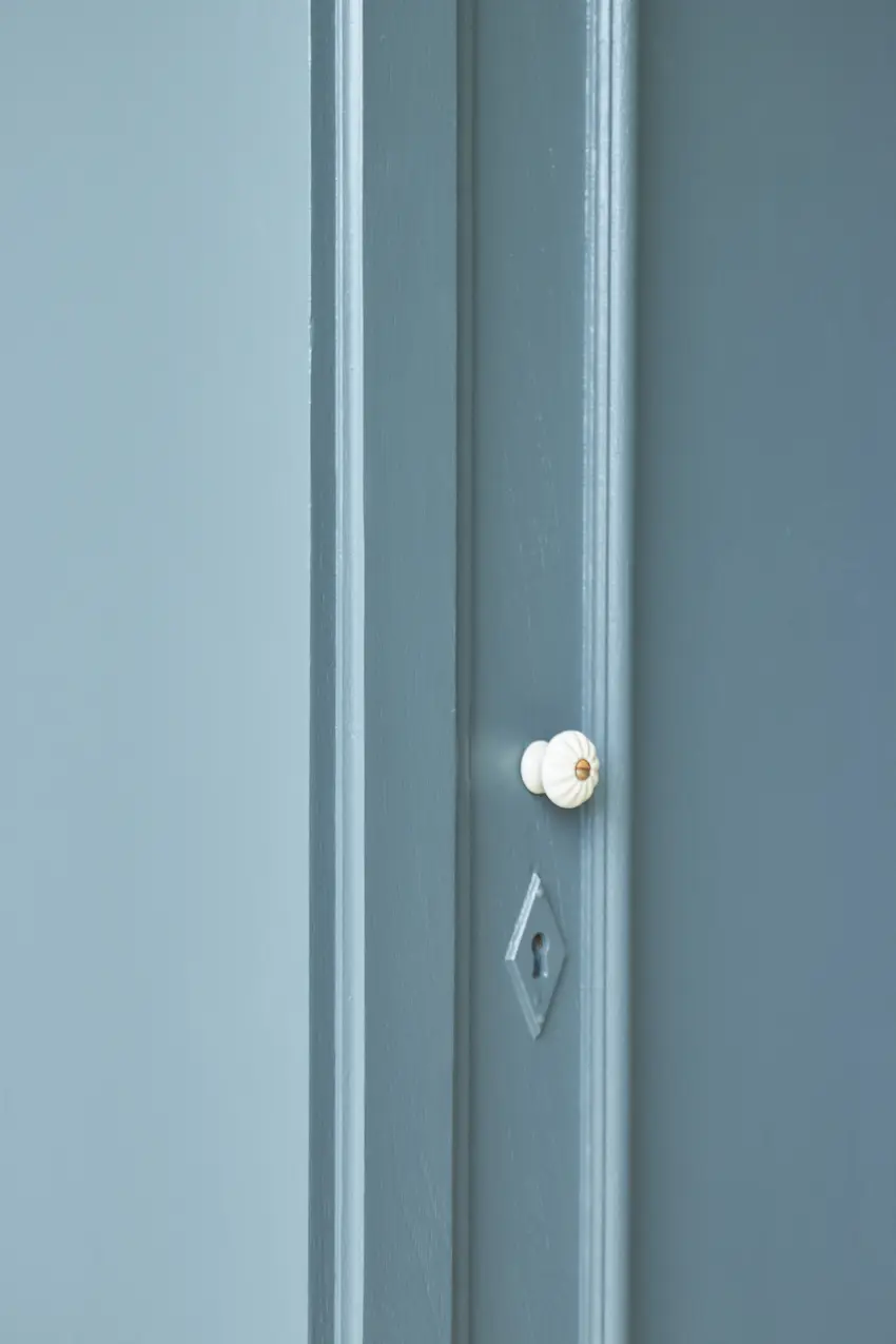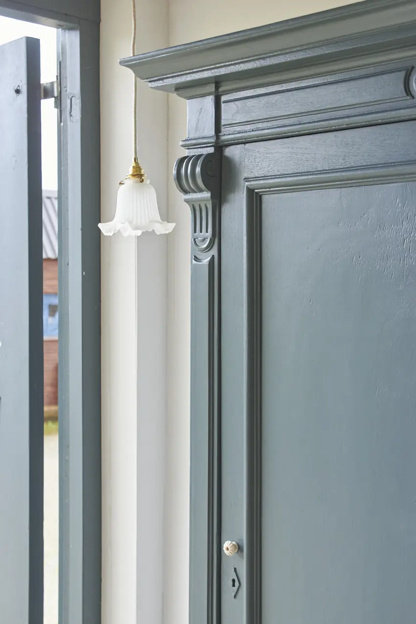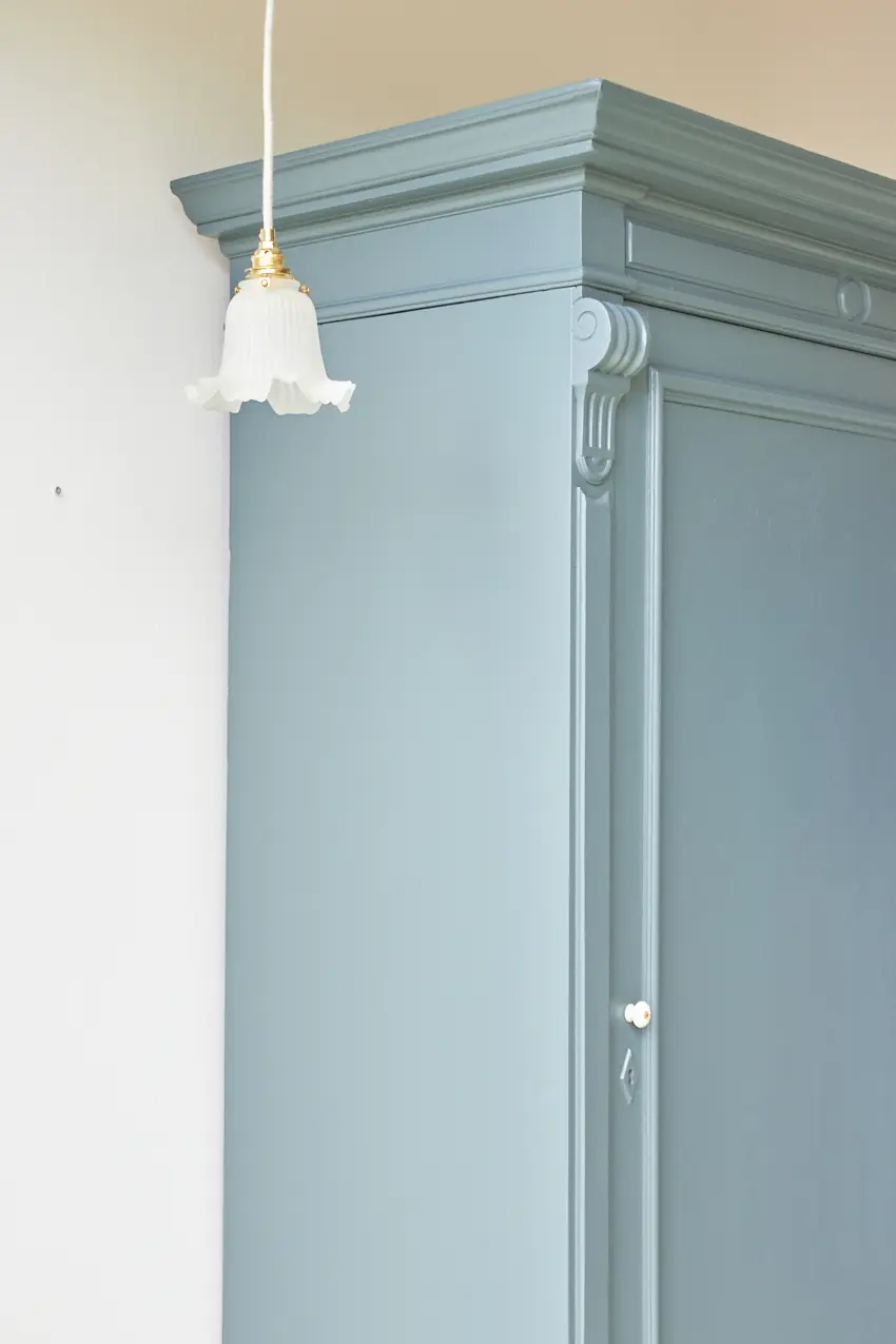 Na de grondverf laag hebben we hem geschilderd in onze kleur Klif. Een fijne kleur voor op de baby- of kinderkamer. Sommige mensen vinden het blauw, anderen meer groen. Wij vinden het meer naar blauw neigen, ja een hele mystieke warme blauw met een vleugje groen. Deze kleur geeft ieder meubel karakter. Hij is helemaal klaar voor een nieuwe plek!