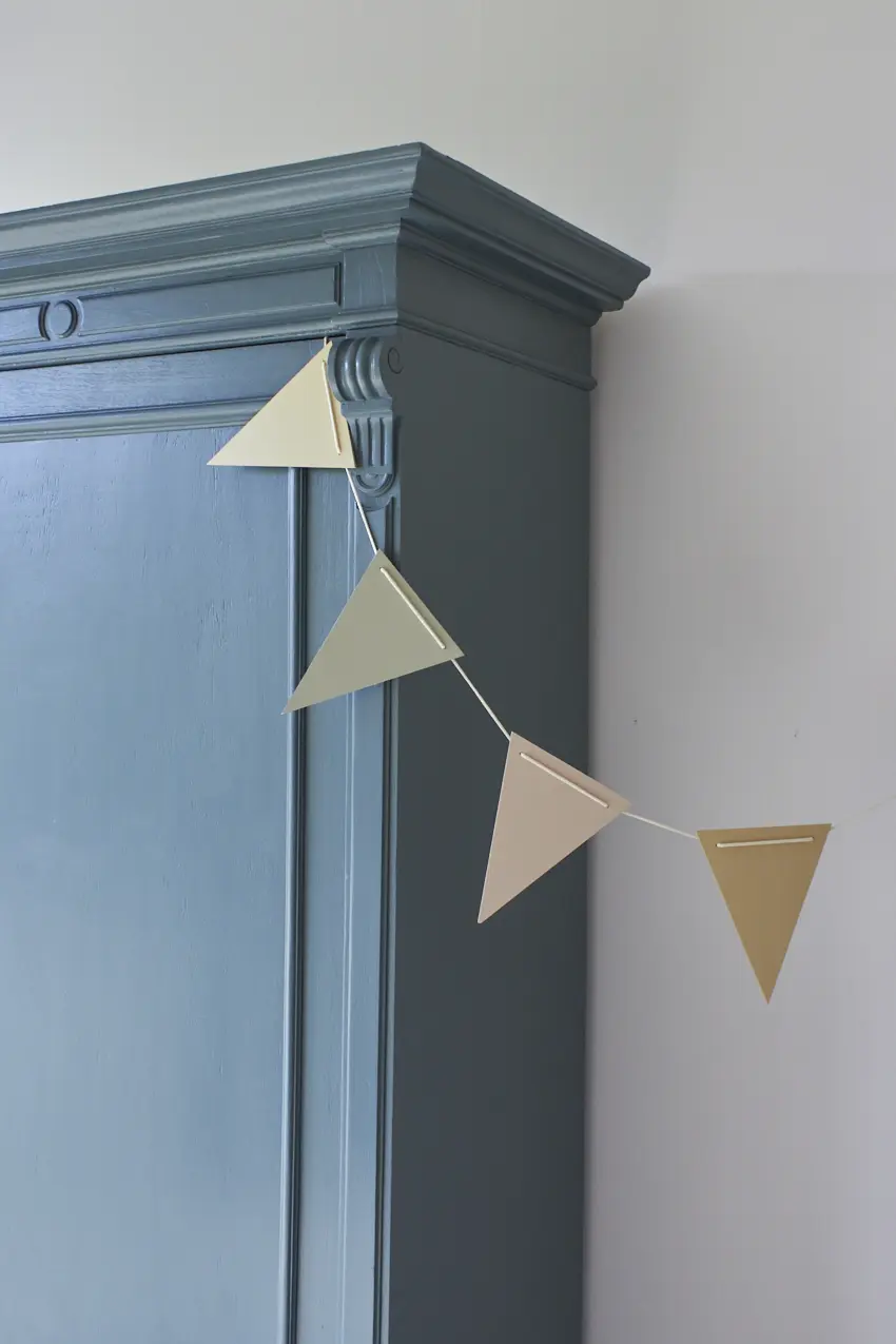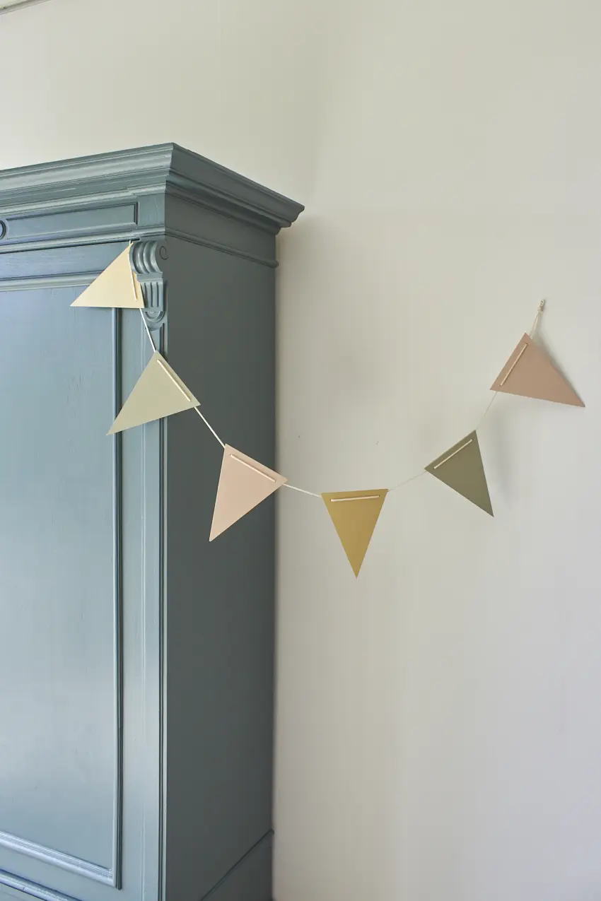 Onze vlaggetjes passen er ook perfect bij, deze zijn van resthout gemaakt en geschilderd in onze kleuren Bloesem, Voorjaar en Kamille.
