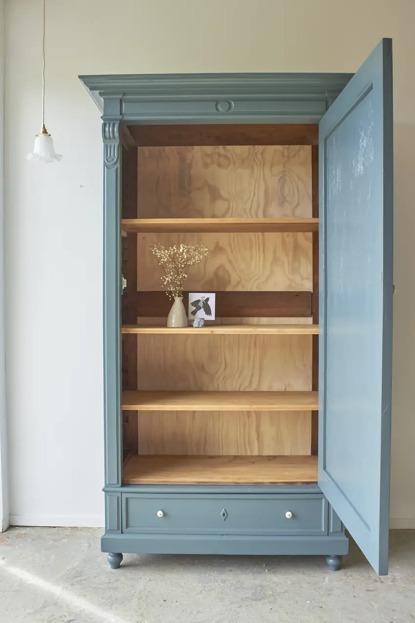 Wat een fijne eendeurs kast, we zijn we er zo blij mee. De kleur Klif staat echt prachtig. De grote deur in combinatie met de kroon is echt waanzinnig voor in huis. Overal kan deze kast mooi staan, in de kinderkamer voor alle kleding en speelgoed, in de woonkamer voor spelletjes of in de keuken voor al het servies en schalen. Deze eendeurskast heeft heel veel ruimte binnenin en onderin ook nog een grote lade.