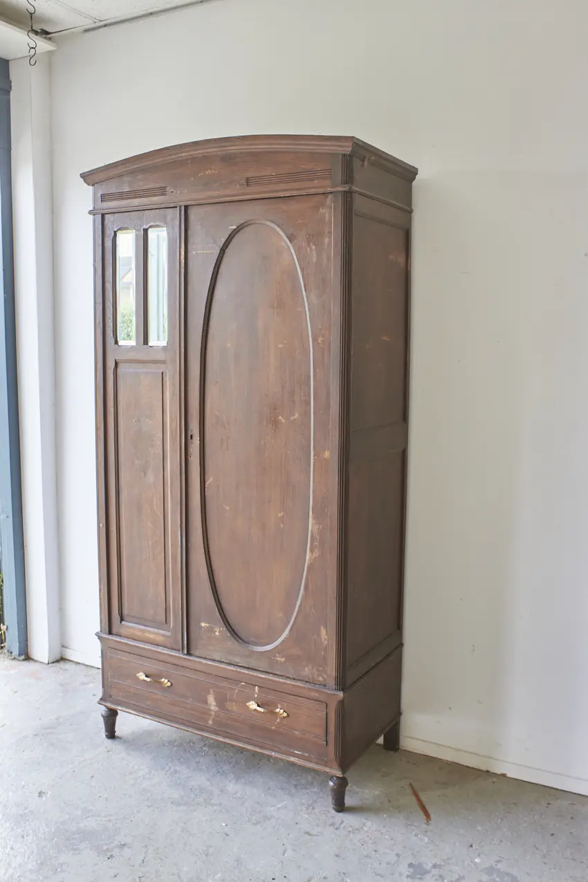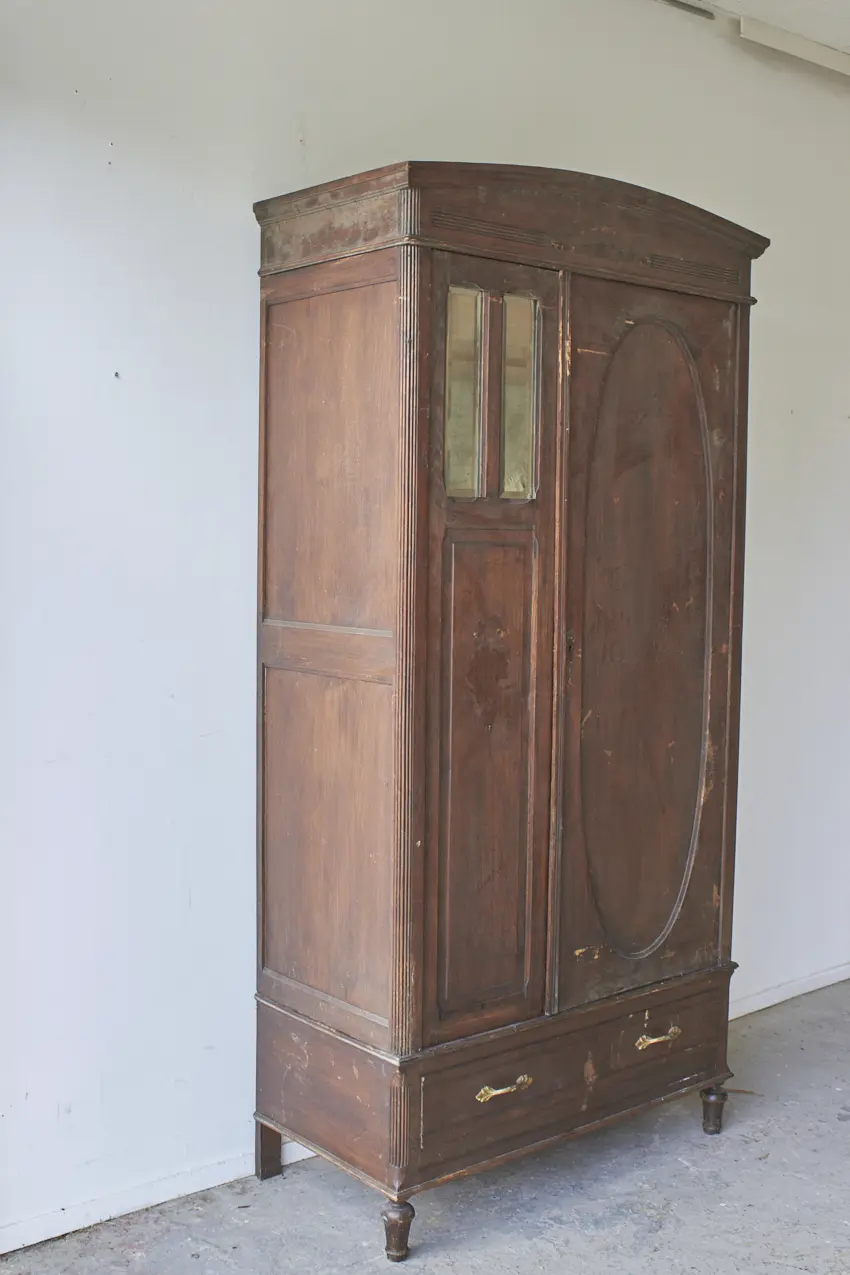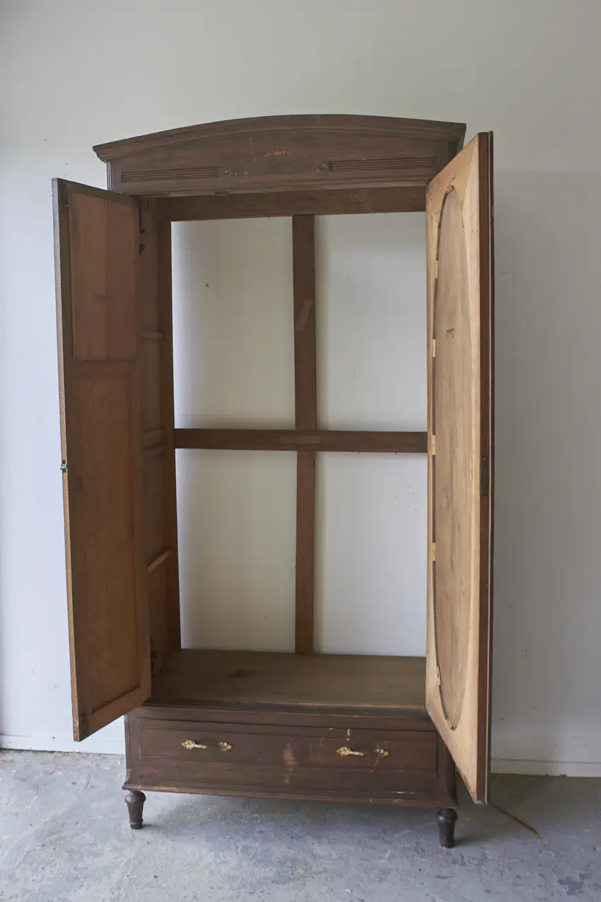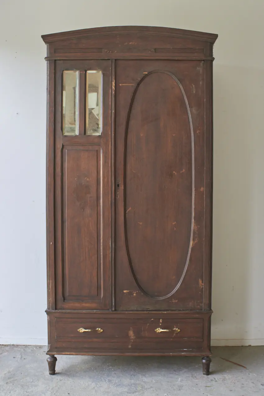 Wat een prachtige demontabele sierlijke kast! Perfect voor op de kinderkamer. Deze kast heeft sierlijke details, zoals de paneeldeuren, de lieve spiegeltjes en de poten. Achter de twee paneeldeuren is er ruimte voor een kastindeling die we graag voor jou op maat maken. De lade kan ook open. Hij is demontabel en kan daardoor makkelijk vervoerd worden. Deze kast is helemaal naar jouw wens samen te stellen.
