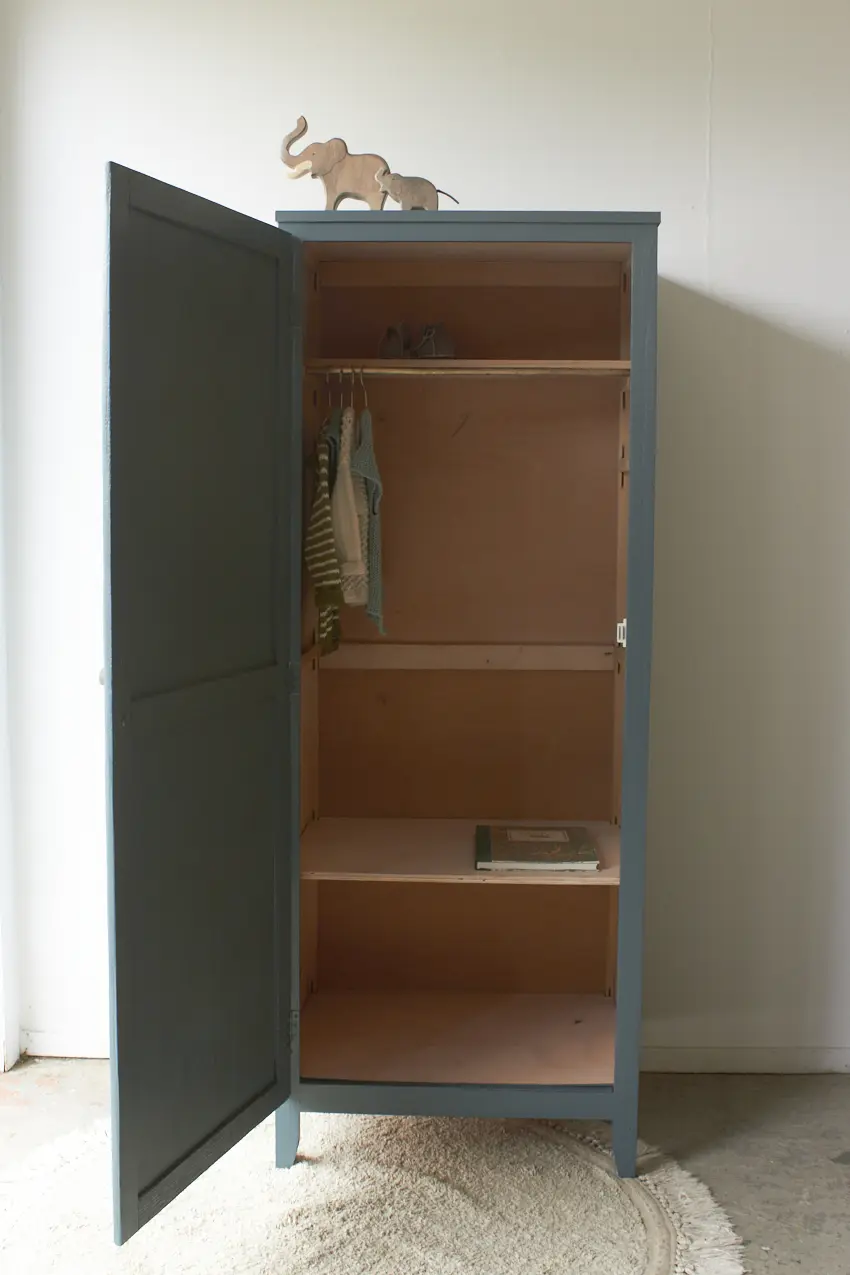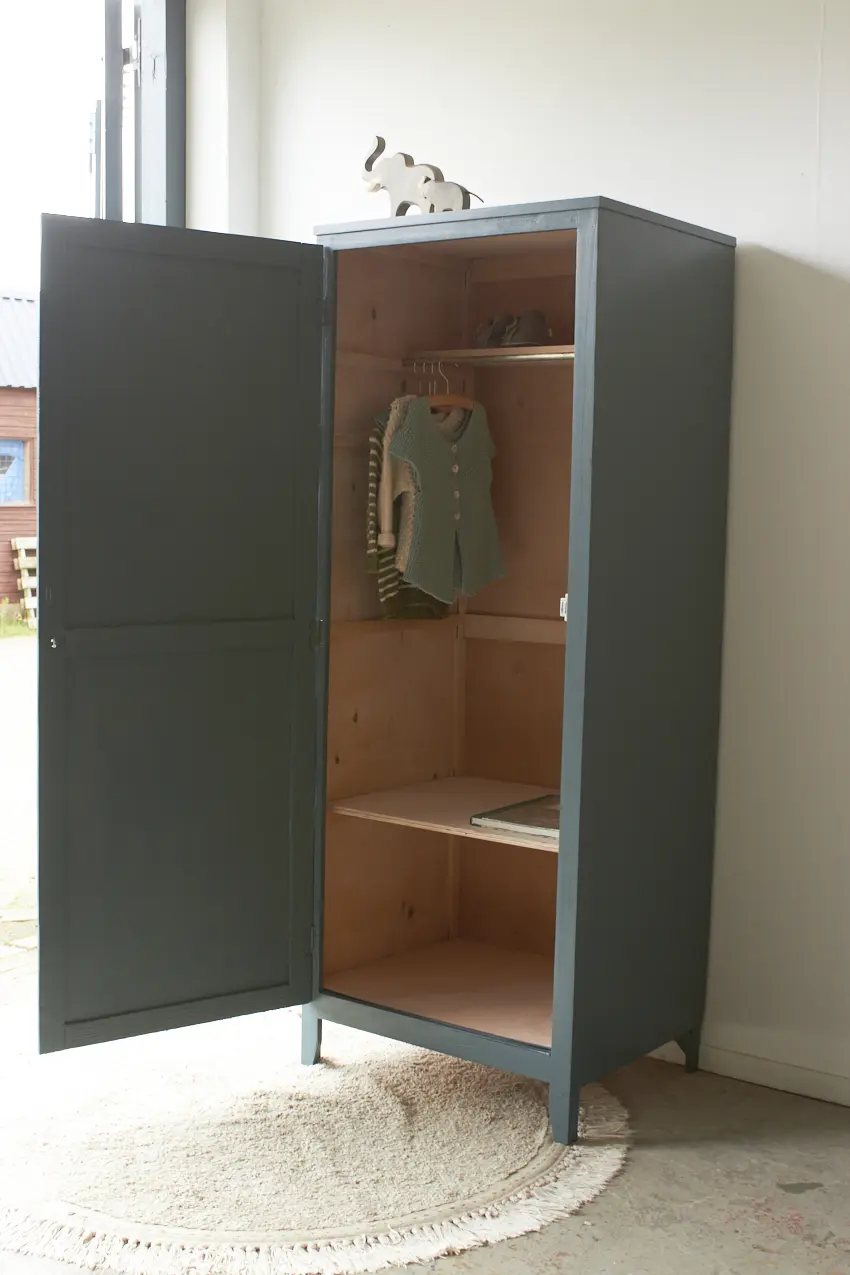 Wat een fijne eendeurs kast in onze kleur Klif. Eendeurs kasten zien we niet heel vaak, maar wat zijn we er blij mee. De strakke stijl in combinatie met het fijne formaat is ideaal voor in huis. Deze eendeurskast heeft veel ruimte binnenin.