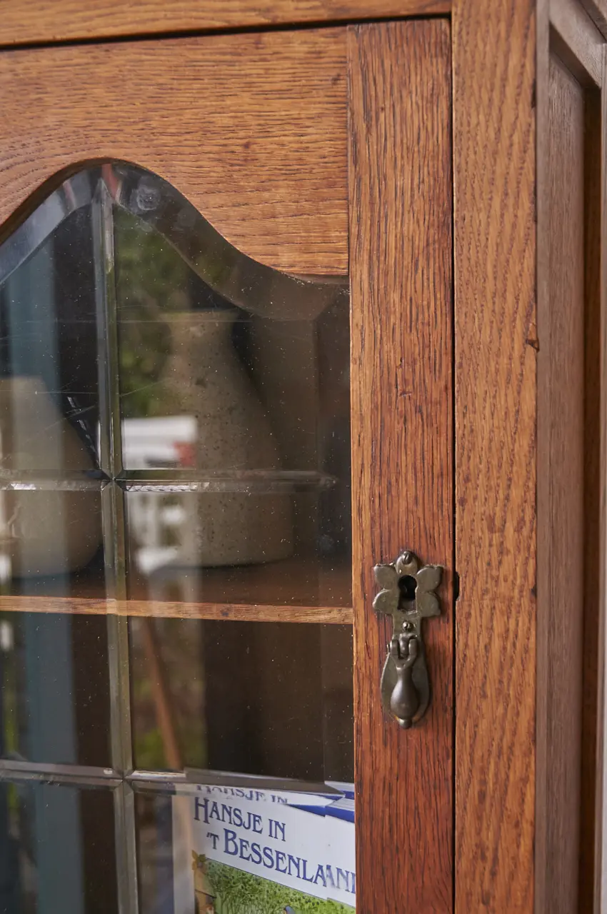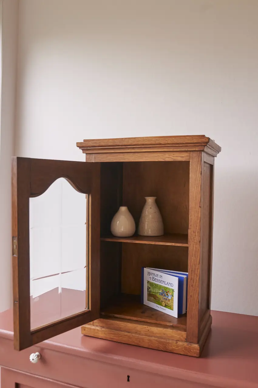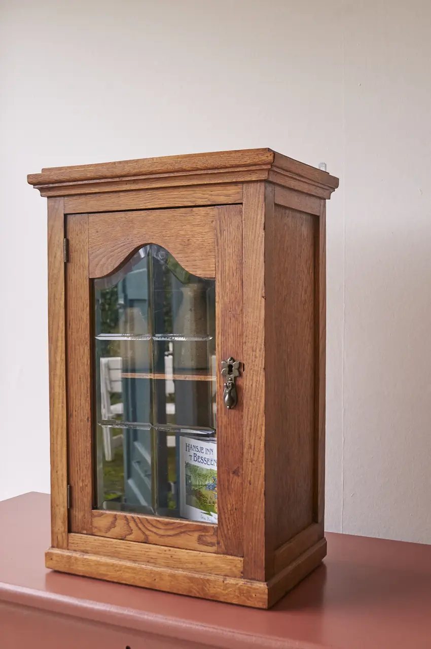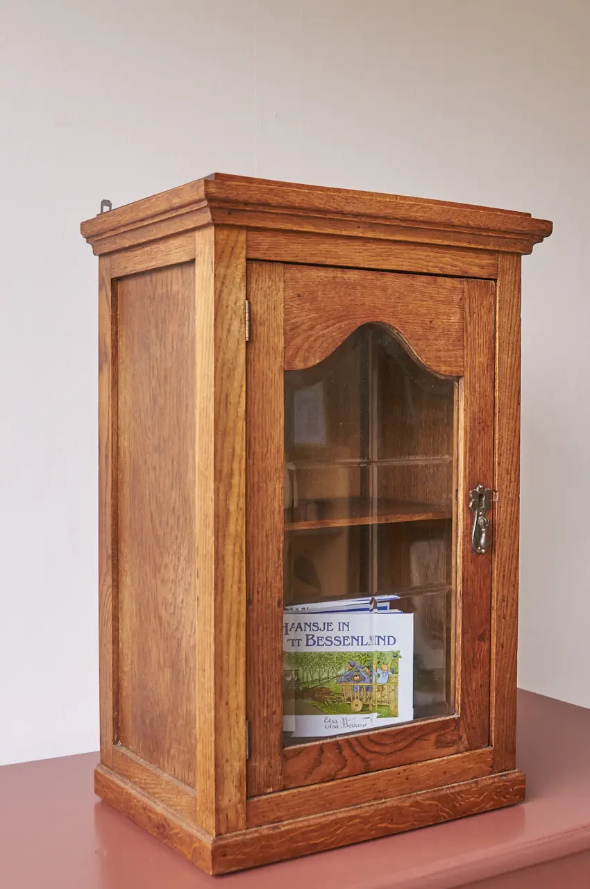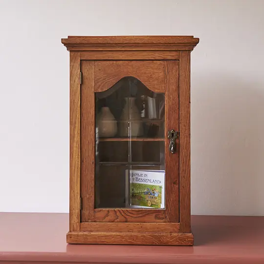 Een leuk vintage wandkastje met een geslepen ruitje in het deurtje. Heel leuk voor op de kinderkamer, voor ‘geheime spulletjes’ bijvoorbeeld! We hebben het kastje goed schoongemaakt, nagelopen en behandeld tegen houtworm. Helemaal klaar voor gebruik!