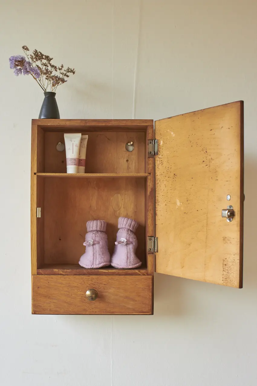 Wij hebben weer een aantal vintage hangkastjes gevonden in Frankrijk. Hier worden wij altijd heel blij van. De hangkastjes passen perfect in de hal, maar ook op de babykamer of badkamer zal hij heel handig zijn en mooi staan! Of voor alle gevonden schatten in de kinderkamer. Elk kastje is uniek en tijdloos. Het zal de ruimte een warme sfeer geven. Wij hebben de kastjes goed schoongemaakt en behandeld tegen houtworm. Deze professionele anti-houtwormspray heeft een apart luchtje. Soms is deze geur nog licht te ruiken in de kast. Binnen een aantal weken verdwijnt de geur vanzelf. De hangkastjes hebben ook allemaal een laagje meubel olie gekregen en zijn nu helemaal klaar voor een nieuwe plek.