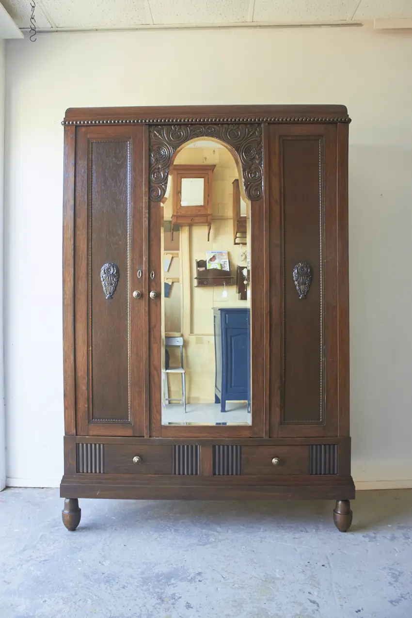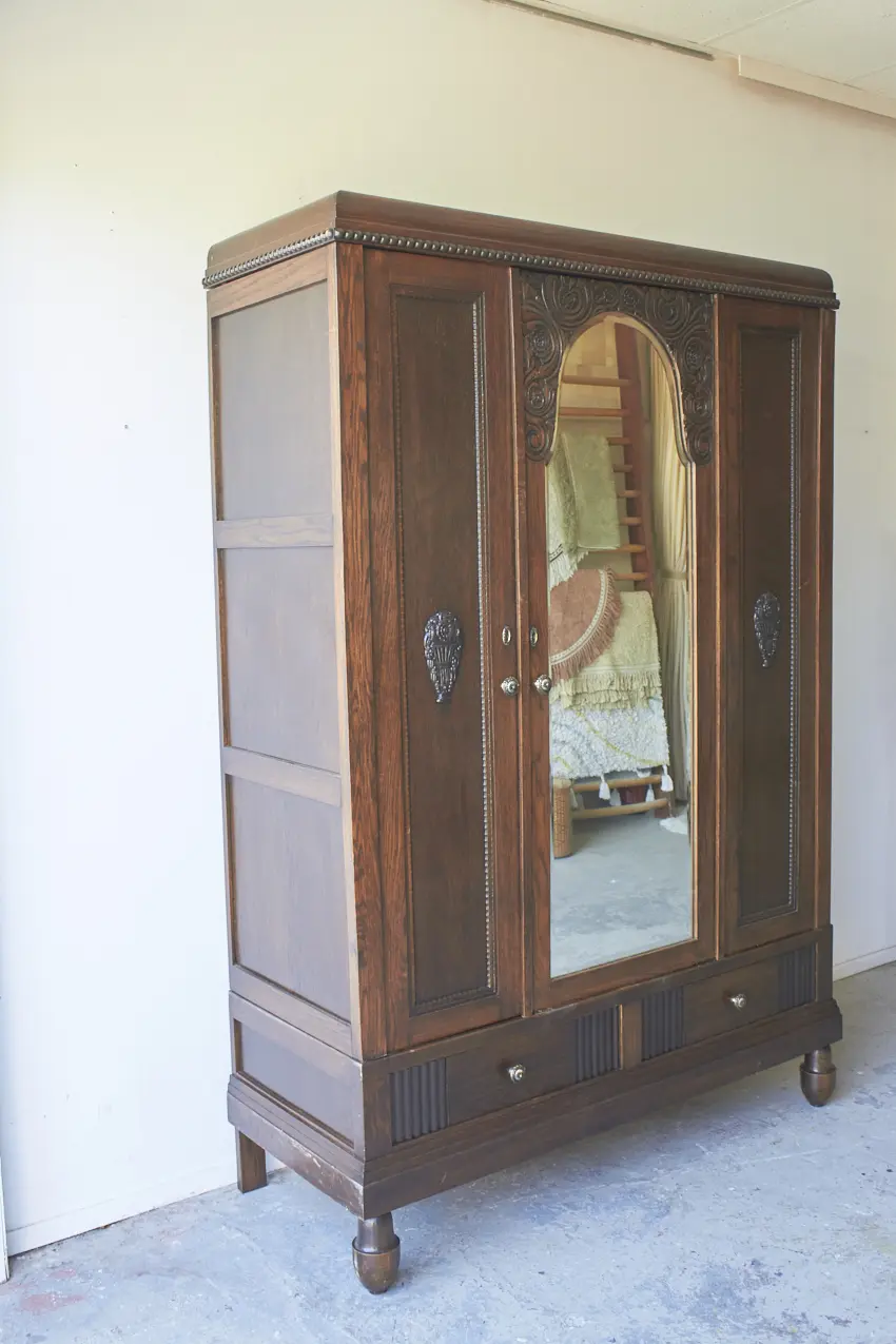 vintage houten demontabele spiegelkast