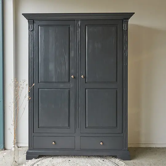 Een perfecte kast voor in de kinderkamer of voor in de woonkamer voor alle spelletjes en knutselspullen. We hebben de kast grondig schoongemaakt, behandeld tegen houtworm en helemaal nagelopen. De indeling is orgineel, het mooie hout aan de binnenkant konden we gelukkig behouden. We kozen ervoor hem in deze prachtige kleur Kraai te schilderen. Kraai is onze meest donkere kleur, een hele stoere nét-niet zwart. Een kleur die je misschien wat minder snel denkt te gebruiken op de kinderkamer, maar geloof ons: Kraai is heel stijlvol en past eigenlijk overal. Beide deuren sluiten door middel van een magneetje. En zo is deze leuke kast weer helemaal klaar voor een nieuwe plek.