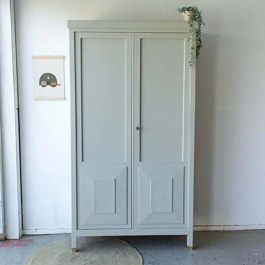 Een mooie, oude kast uit Frankrijk. Deze vintage kast had wel een aantal reparaties en aanpassingen nodig. Oorspronkelijk was het namelijk een vitrinekast. Maar het glas was gebroken. Daarrom hebben we de ruitjes vervangen door hout. En nu is het een ideale kledingkast of speelgoedkast! We hebben alles goed nagelopen, verstevigd en gerepareerd en nu kan hij weer jaren mee. De kast is grondig schoongemaakt en daarna is hij in deze mooie zachte taupe geschilderd. Een kleur die zich heel makkelijk laat combineren met andere warme tinten. Op de rechter deur is tot slot een mooi bronzen knopje gezet. De deuren sluiten door middel van een schuifje en een magneetje. Wat ons betreft een geweldige kast voor op de baby- of kinderkamer. Maar ook in de woonkamer zal hij prachtig staan. Klaar voor gebruik.