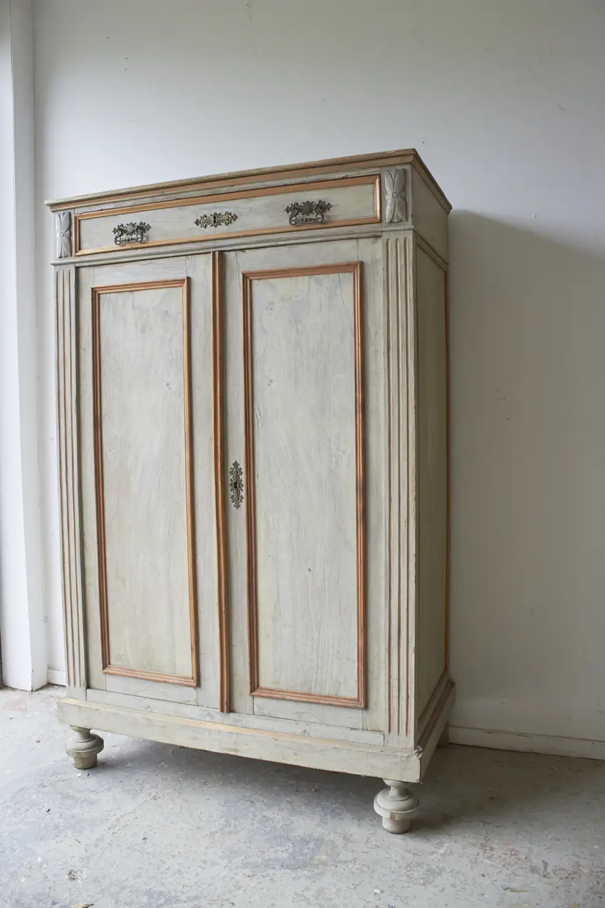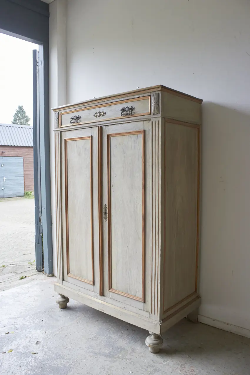 Wat een mooie, authentieke meidenkast! Echt de perfecte kast voor op de kinderkamer. Wat worden we blij van deze strakke, authentieke uitstraling. Achter de paneeldeuren en in de brede lade is er veel opbergruimte. Dit meubel is opgeknapt en beschikbaar in onze winkel.