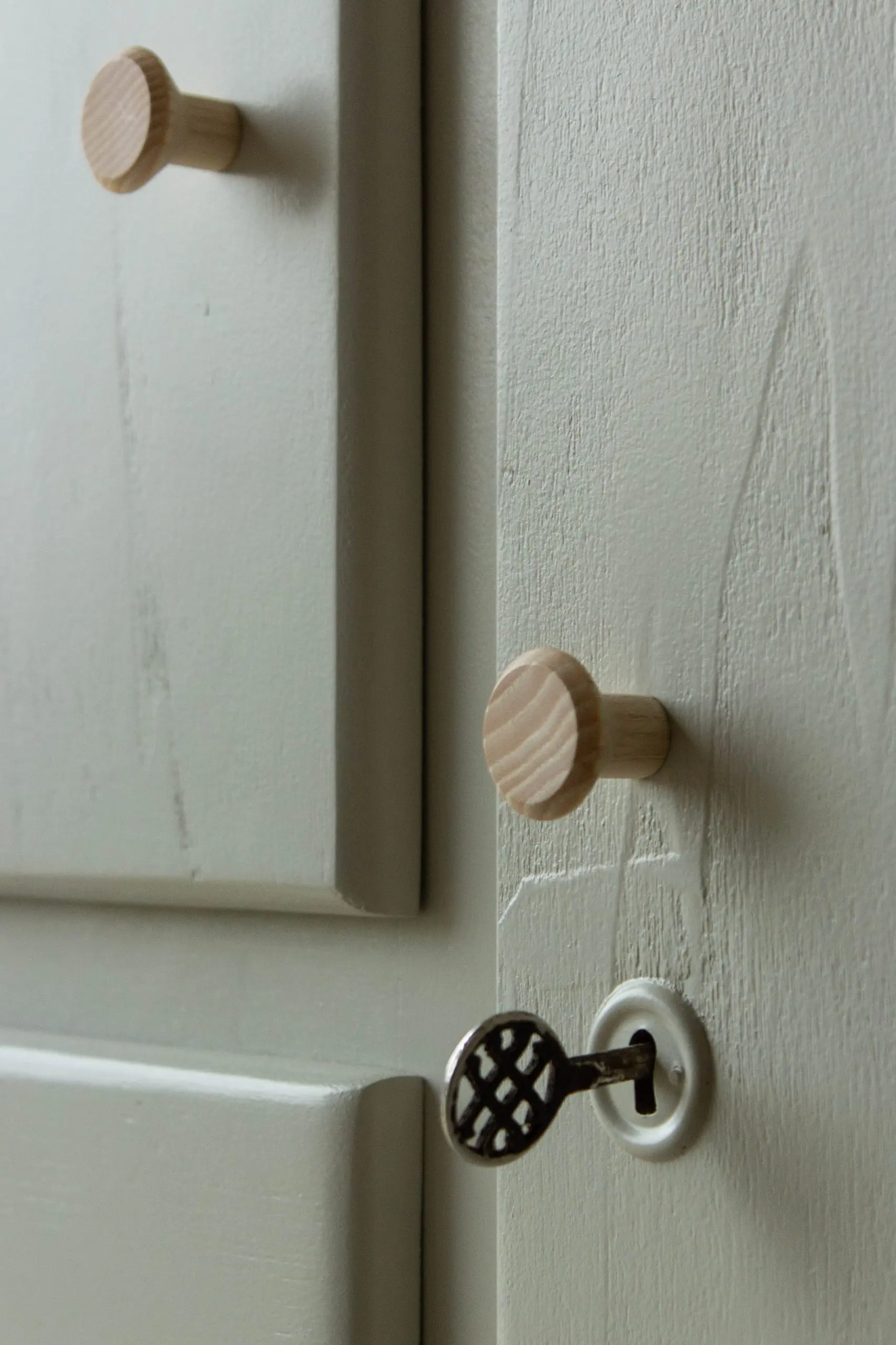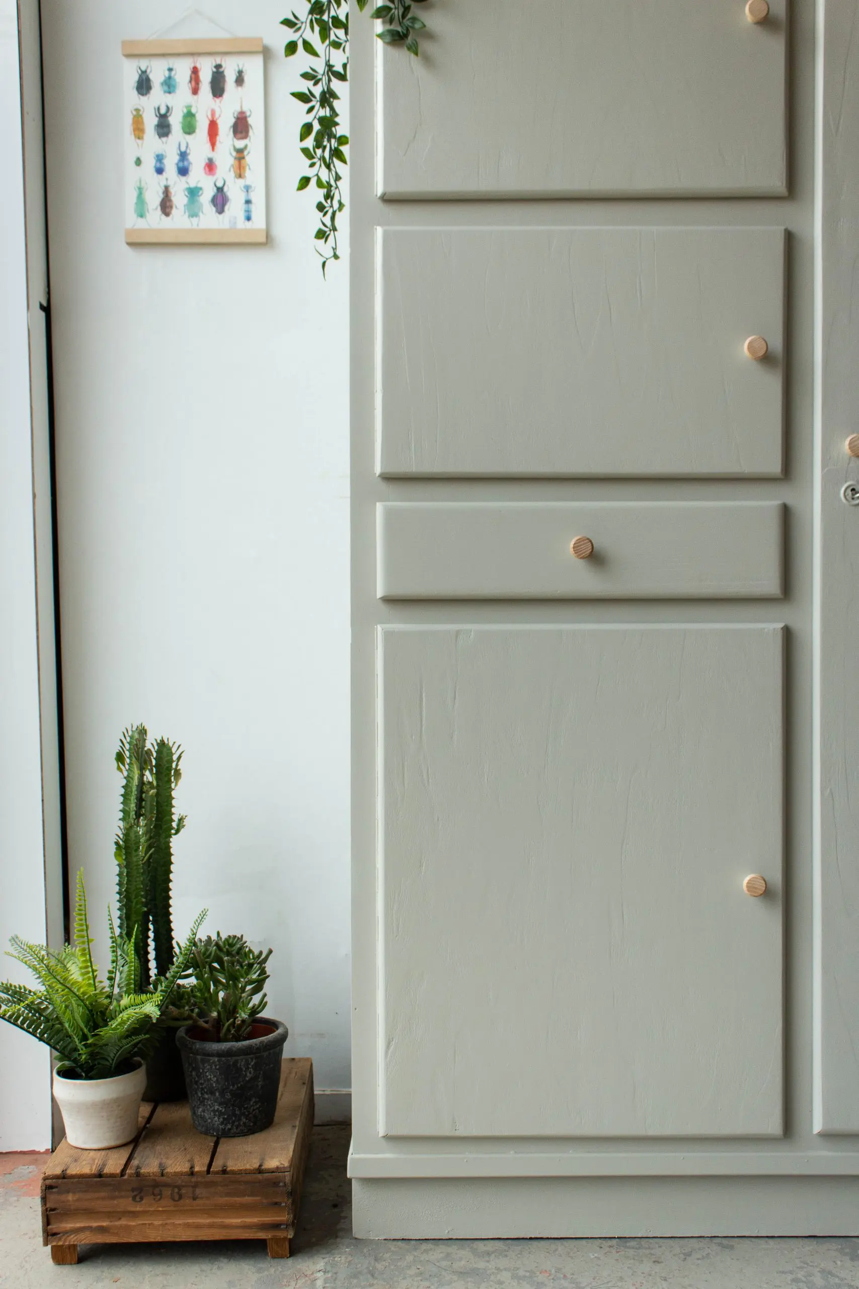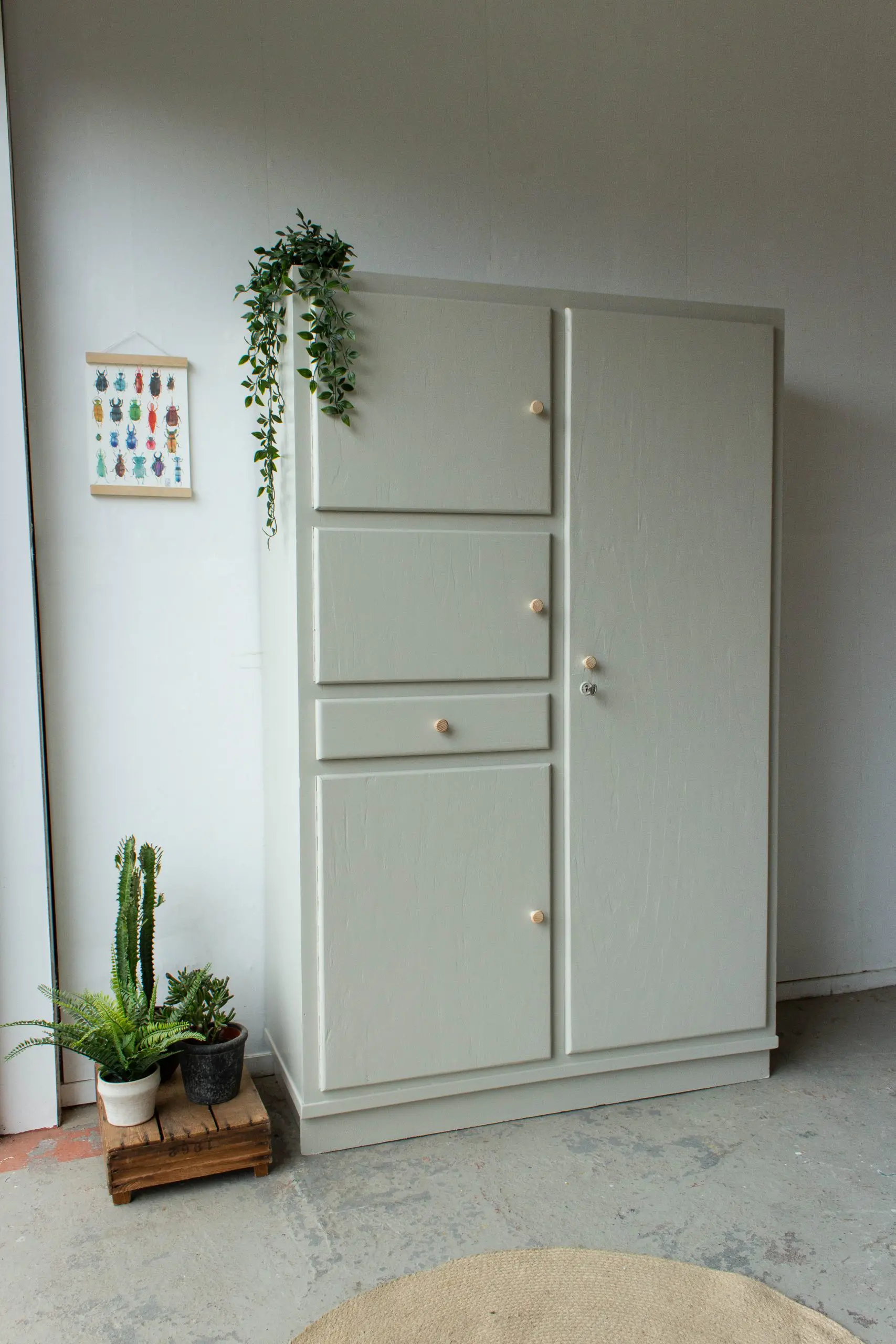 Vintage keukenkast in zachte taupe kleur