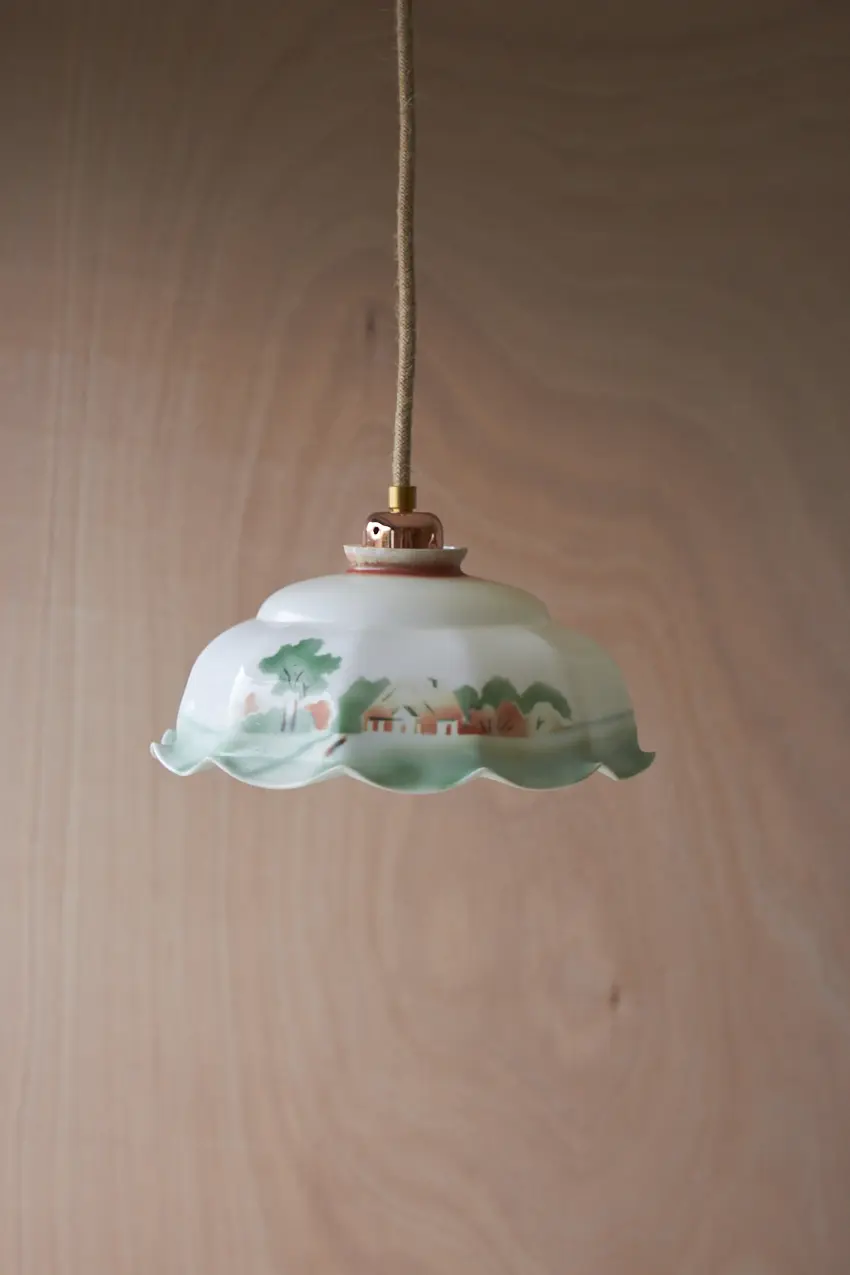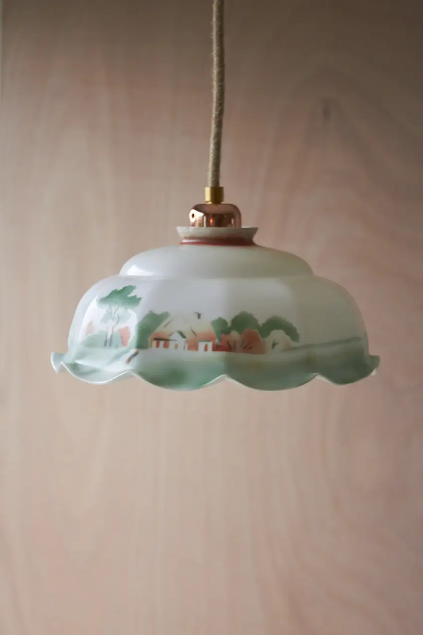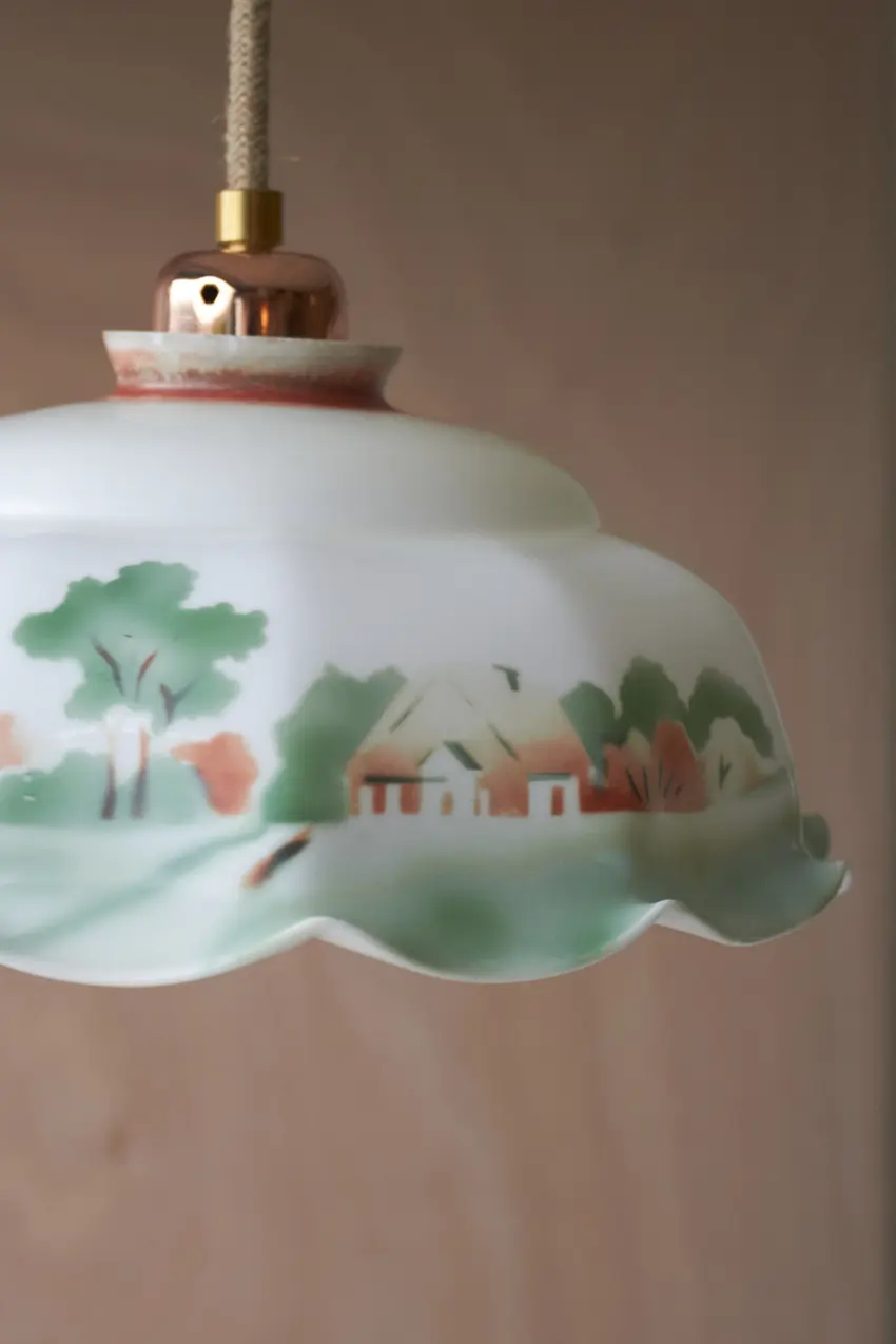 Wat een lief vintage lampje met zomers tafereel. De klassieke vorm van het glas met haar golvende randen in combinatie met de dromerige afbeelding op het glas, maken dit lampje echt uniek.