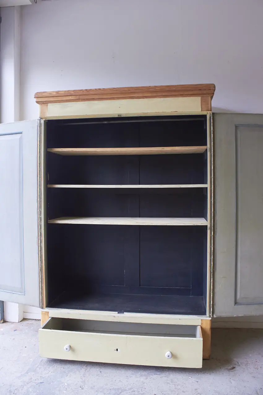 Een fijne stevige kast waarbij de deuren helemaal breed open kunnen. Perfect voor op de kinderkamer. Achter de twee paneeldeuren is er ruimte voor een kastindeling die we graag voor jou op maat maken. Deze kast is helemaal naar jouw wens samen te stellen. We kunnen er bijvoorbeeld ook nog een poot onder maken.
