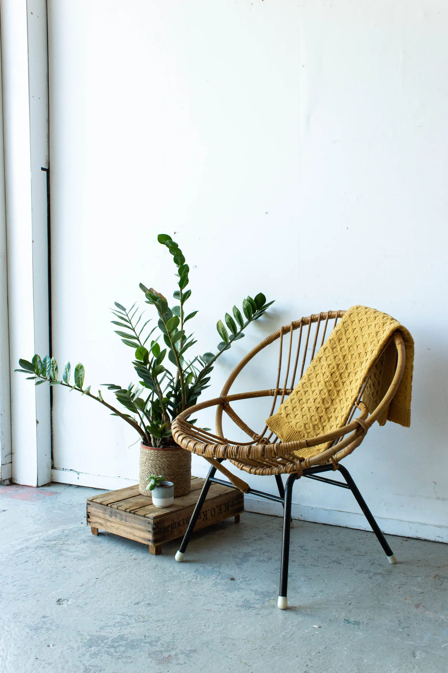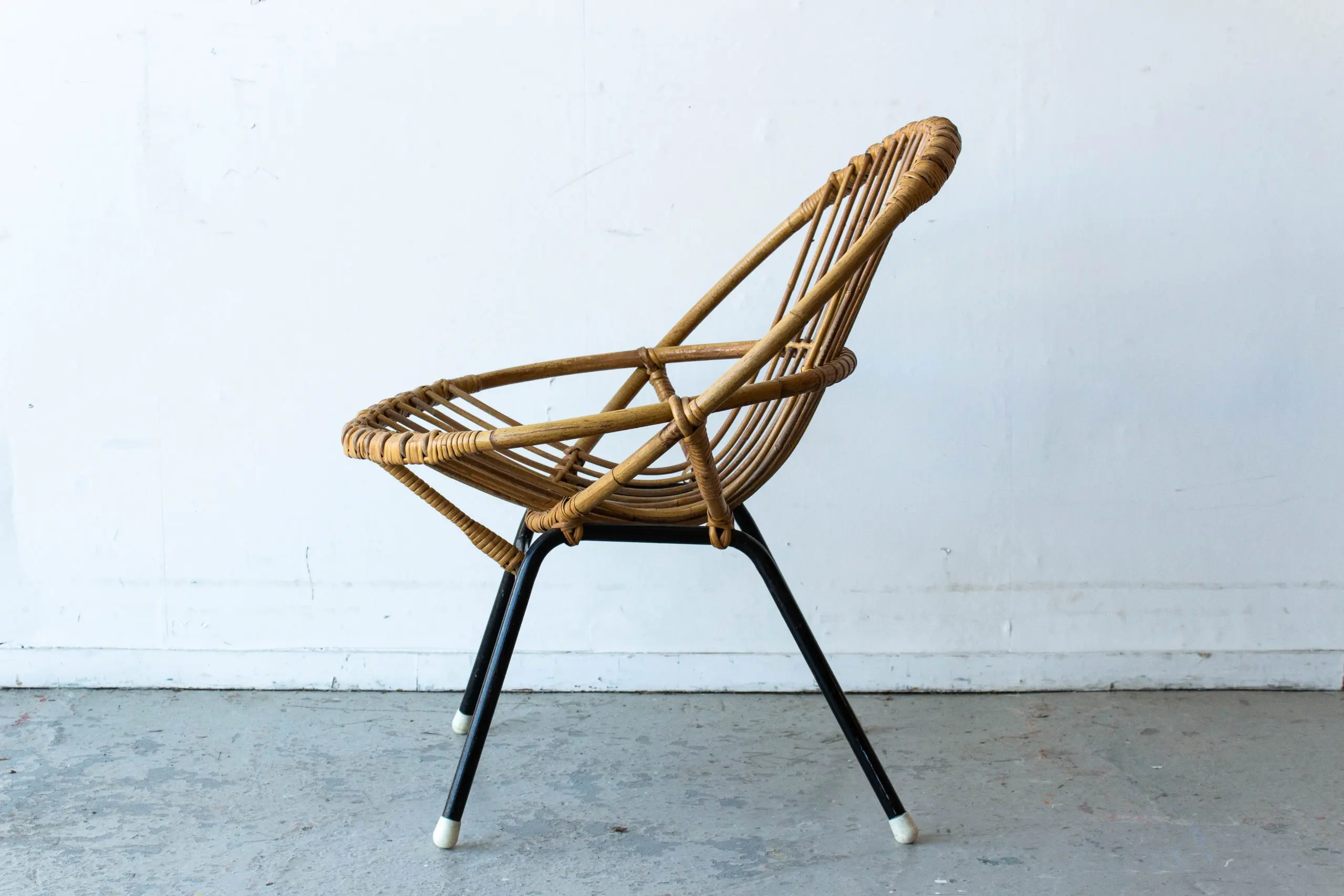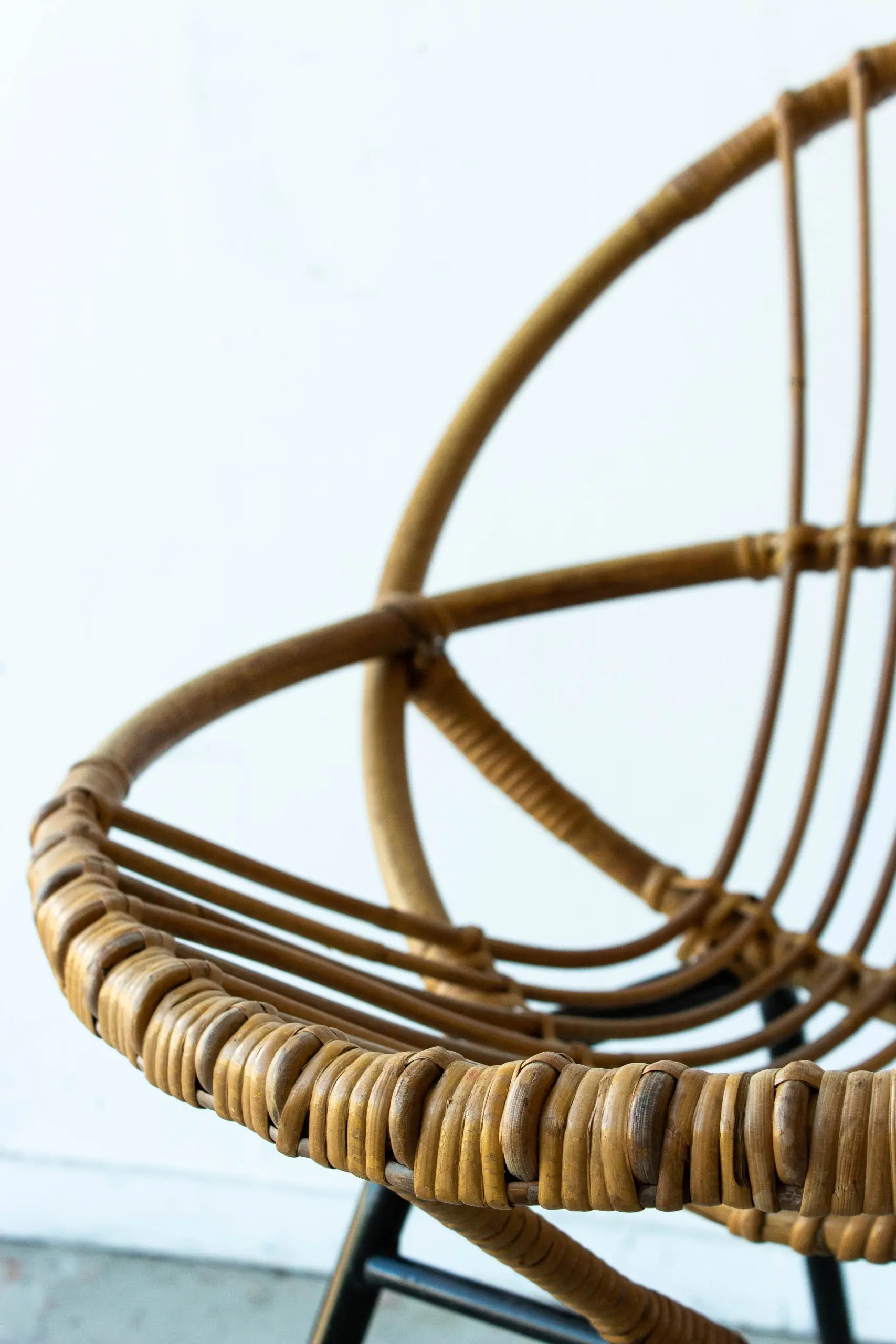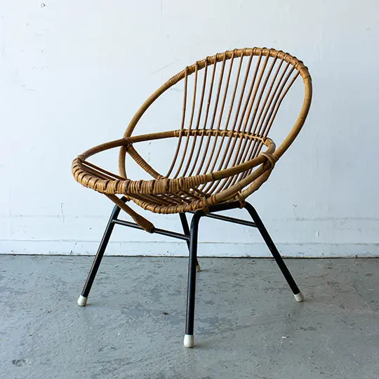 Een mooi, lief, vintage rotan stoeltje. De stoel is nog in een goede staat en zit erg lekker. Prachtig formaat voor op een kleine babykamer, met een lekker zacht schapenvachtje erop bijvoorbeeld.