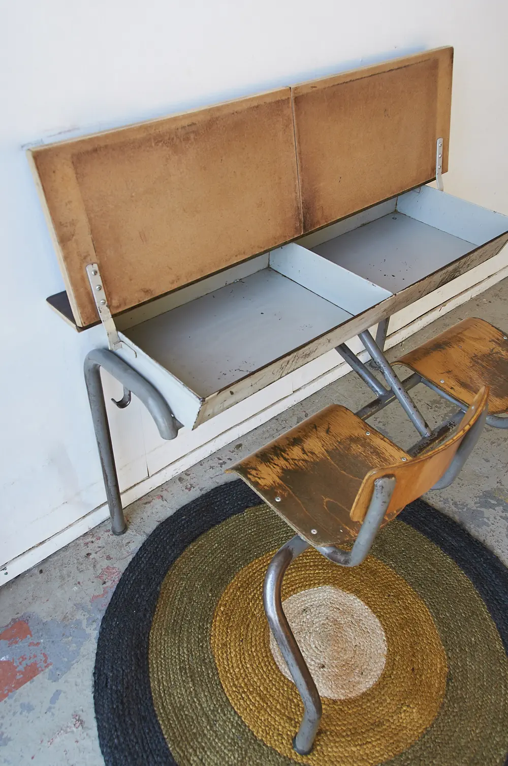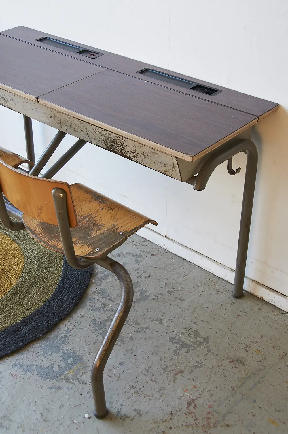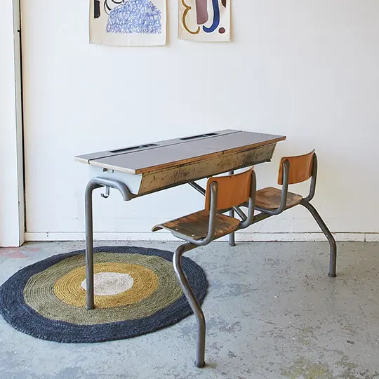 NB: Omdat we drie van deze schoolbanken op voorraad hebben, kunnen de gebruikssporen wat verschillen.