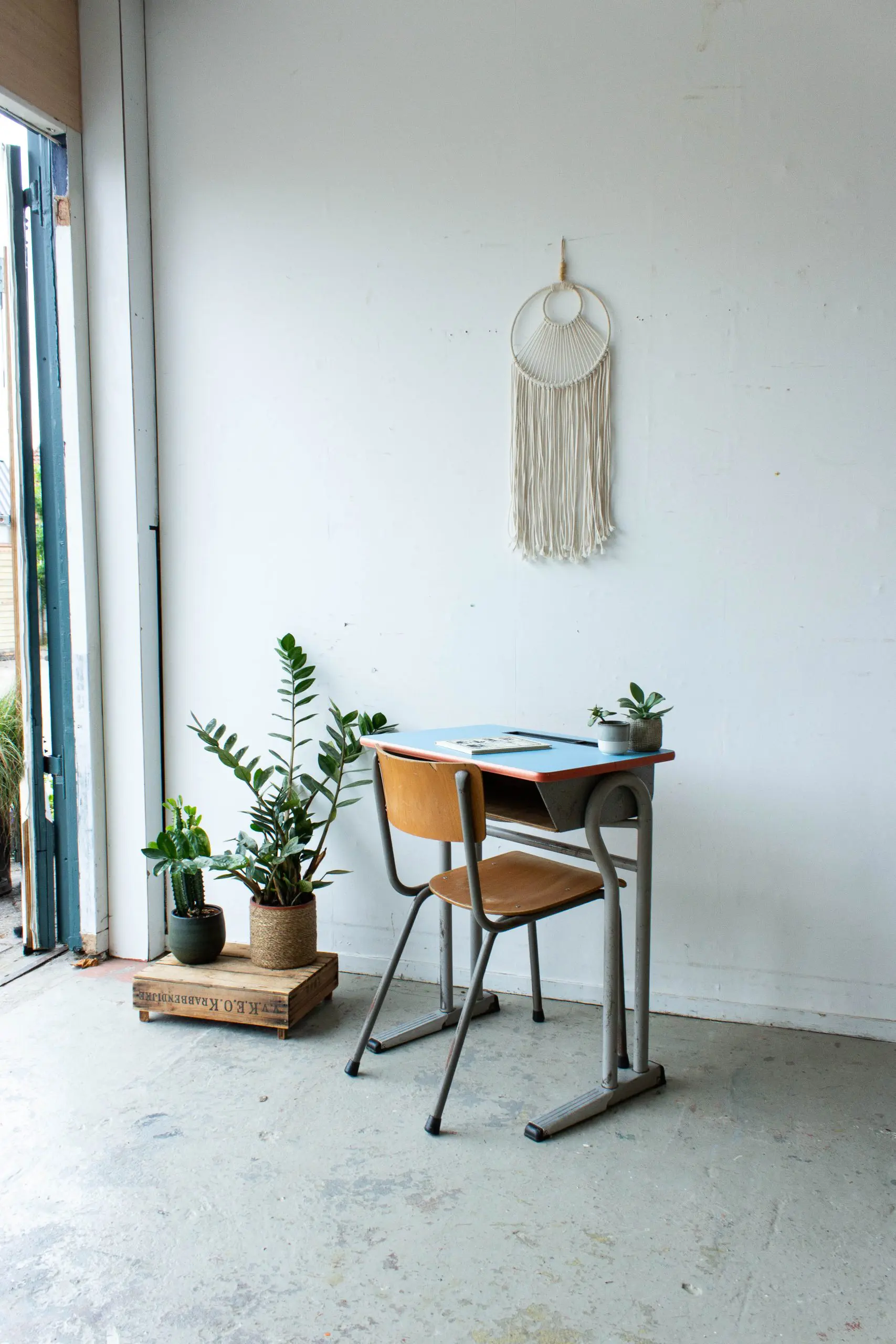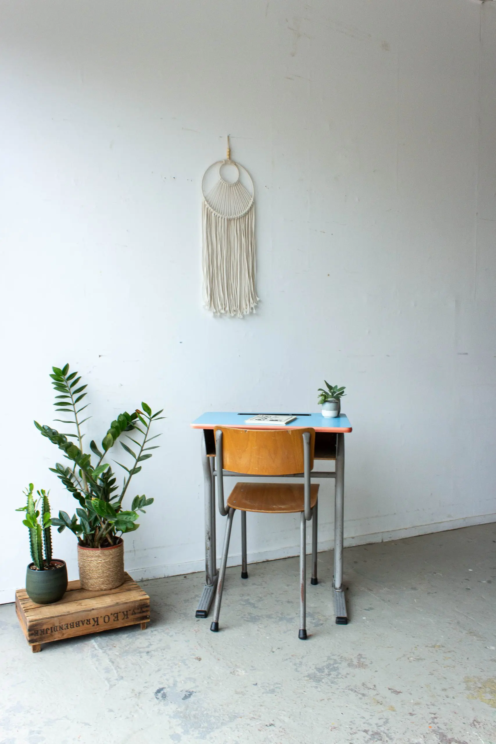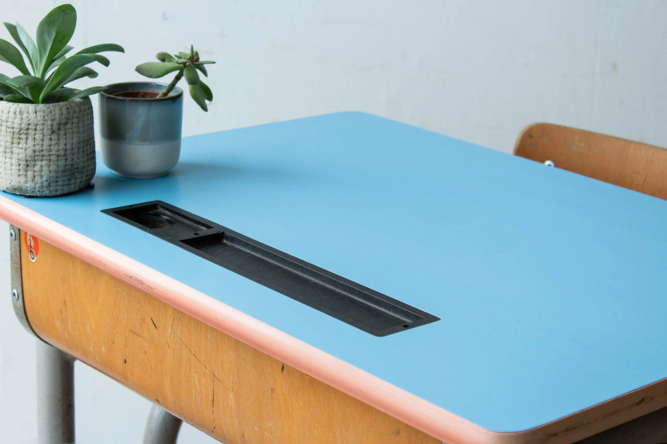 Wat een lief vintage schooltafeltje is dit! We hebben het tafeltje, samen met nog veel tafels en stoelen, uit een voormalig klooster / lagere school in Tongeren mogen halen. Wat waren we blij met deze aanwinst! We hebben het schooltafeltje goed schoongemaakt en helemaal nagelopen. En zo is dit Belgische schooltafeltje met blauw blad weer helemaal klaar voor gebruik! Leuk voor kindjes tussen de vier en acht jaar.