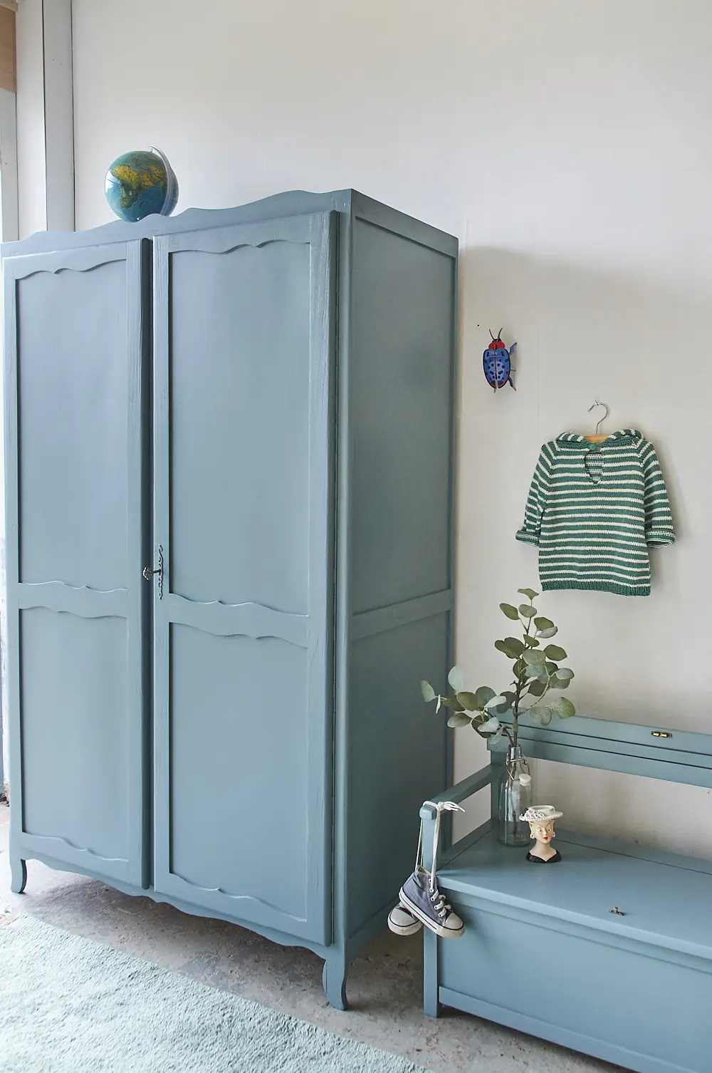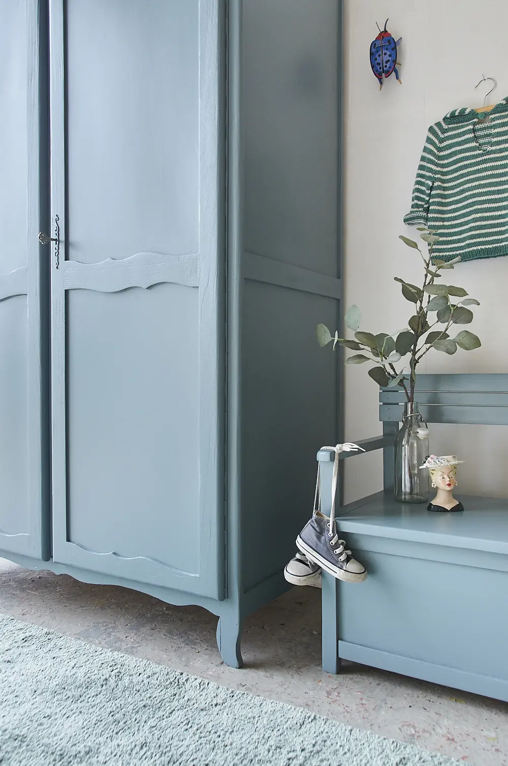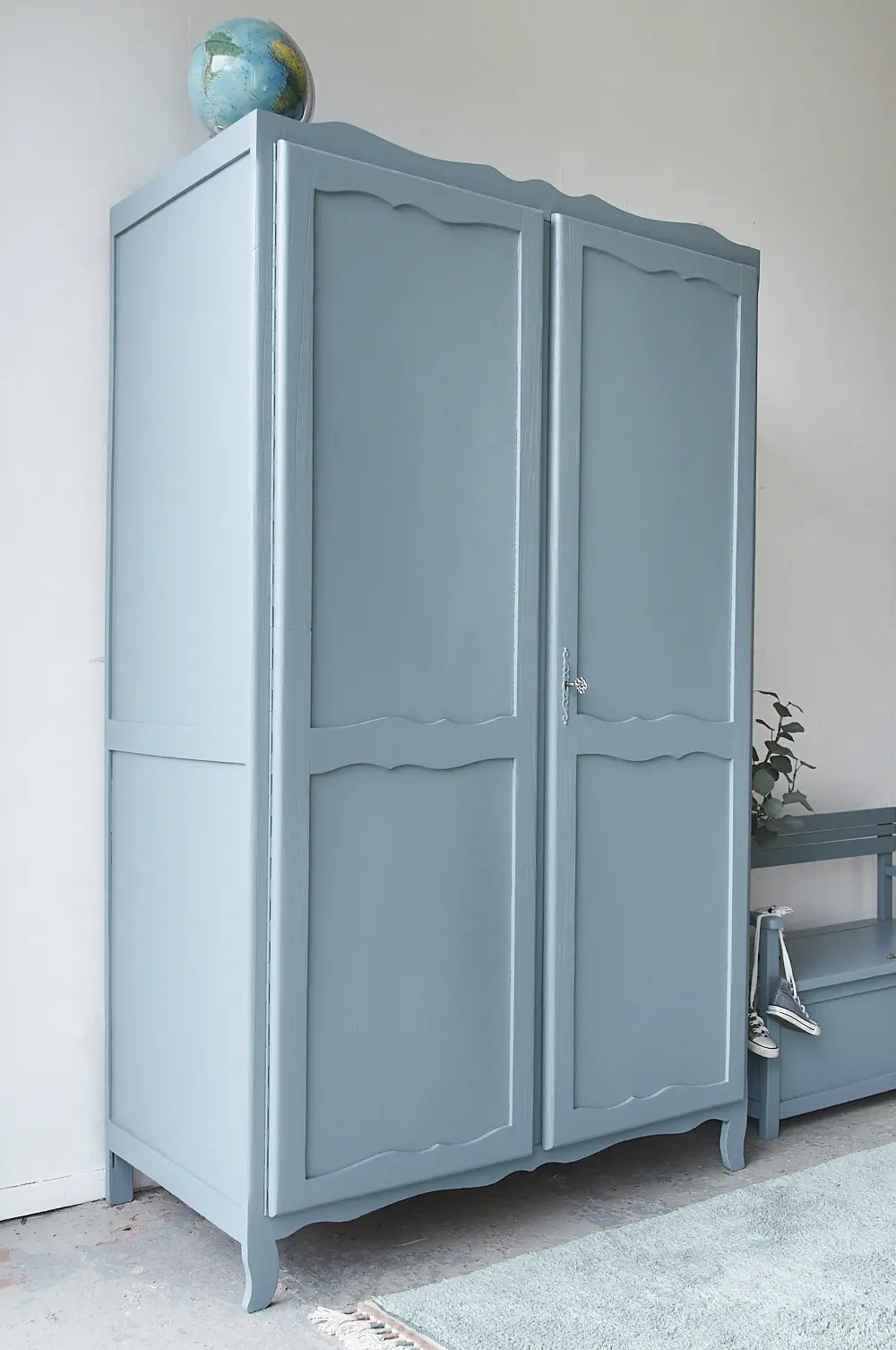 Vintage sierlijke blauw grijze kast