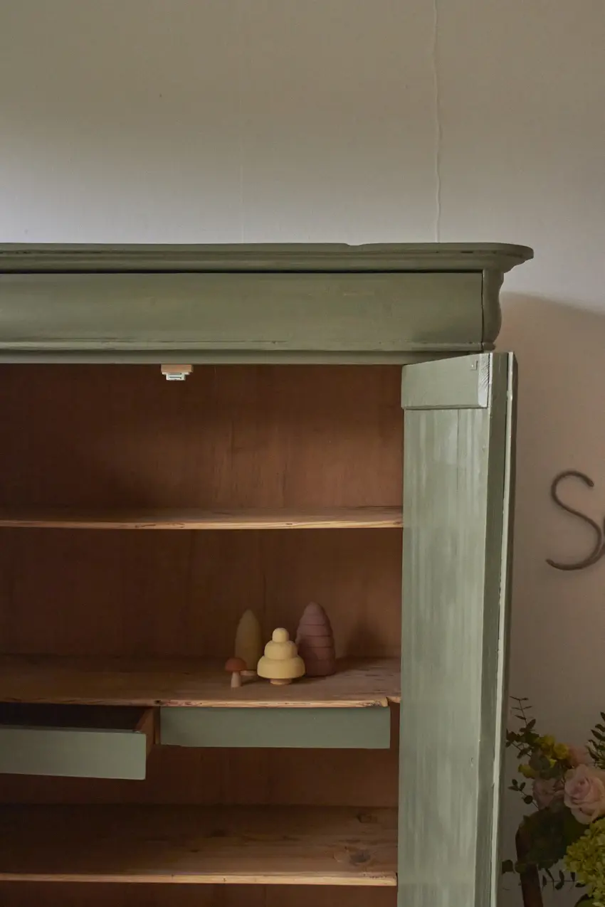 vintage speelgoedkast in rozemarijn