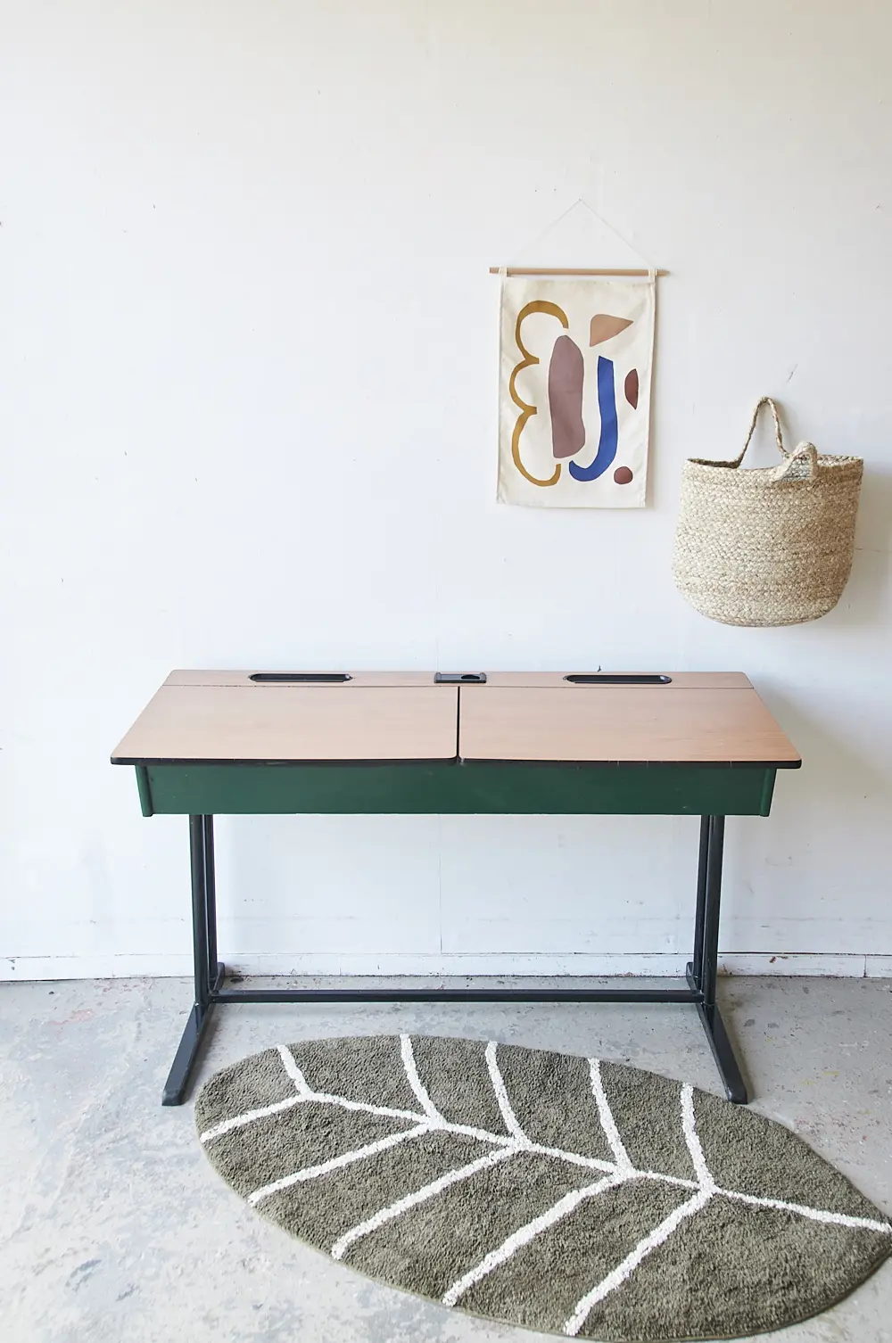 Vintage tweepersoons schooltafel